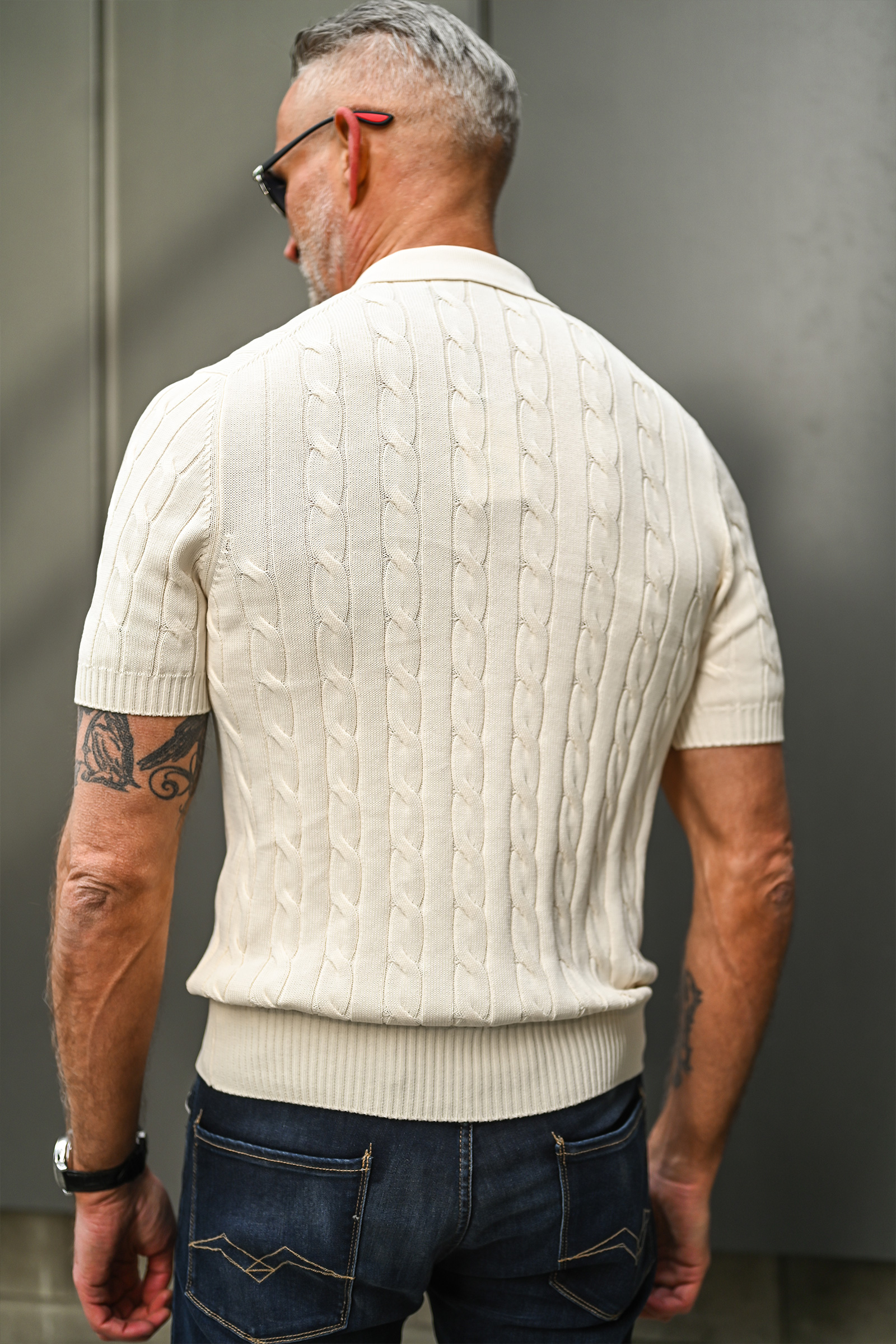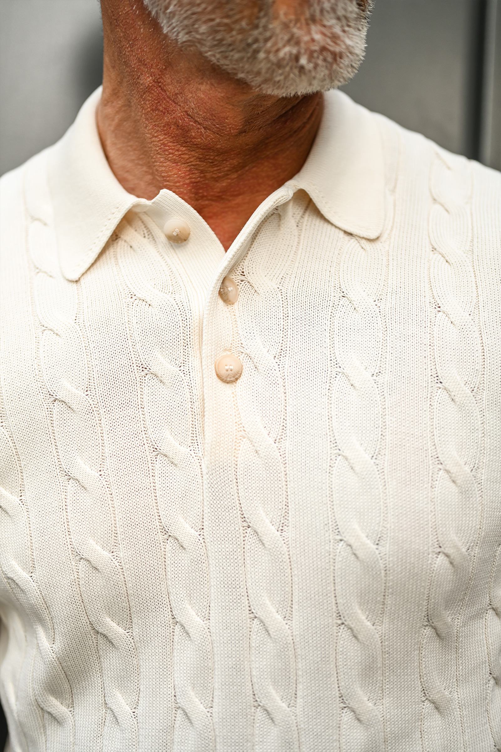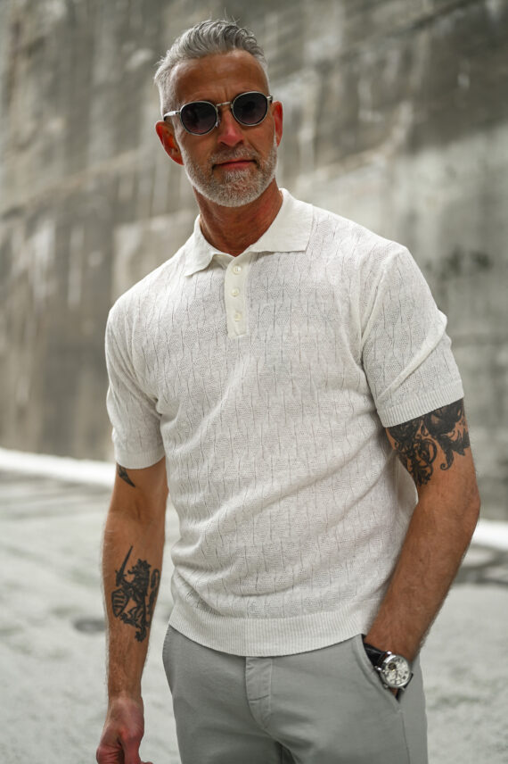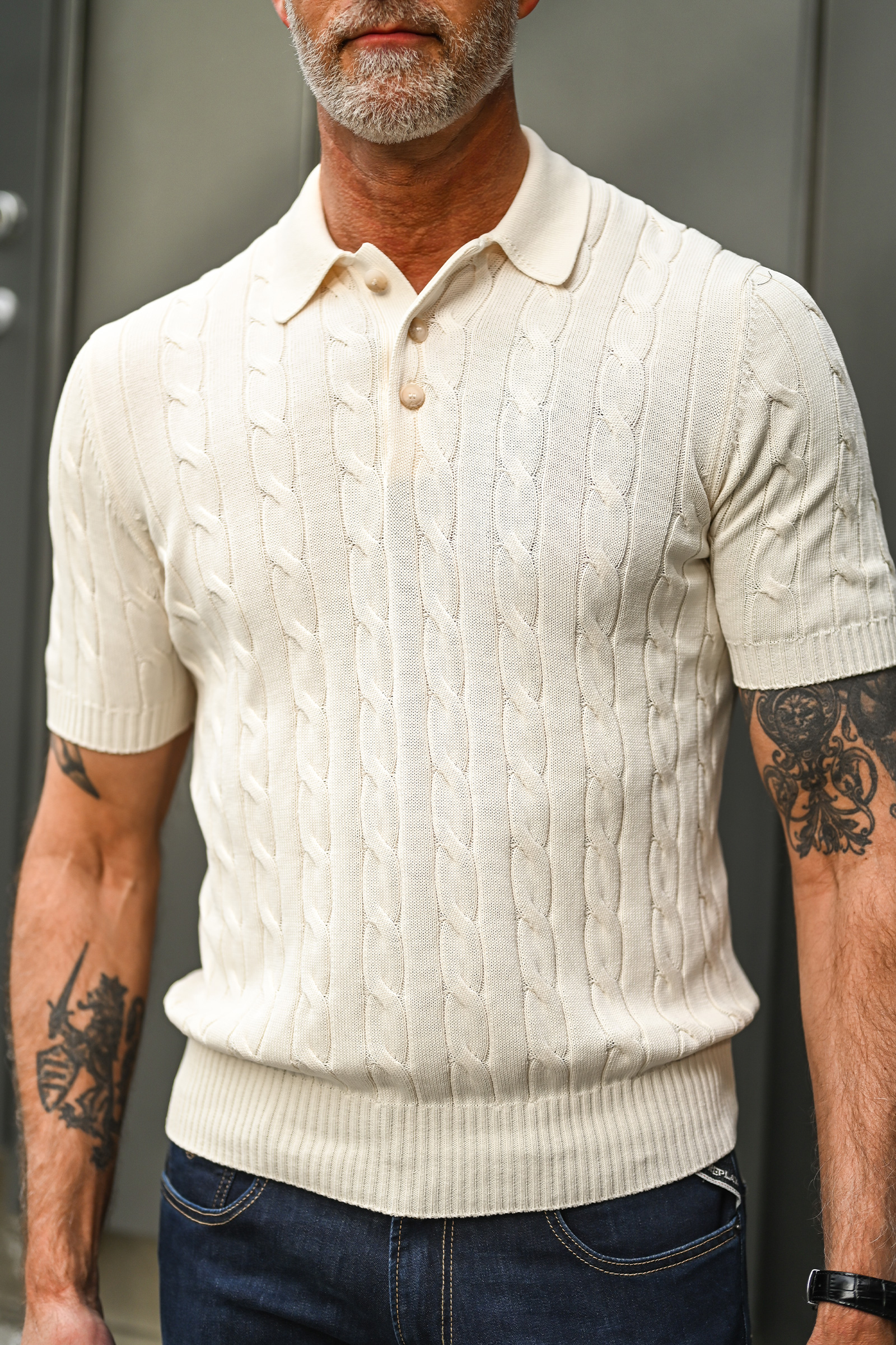 Delikat pique fra Gran Sasso med kabelstrikk. Genseren kommer med krage, rett passform og korte ermer. Den er strikket i 100% bomull som gjør den til en behagelig pique og er perfekt til sesongen vi snart går inn i. Superfin sammen med et par jeans og sneakers for et hverdagslig antrekk, eller med chinos for en mer pyntet look.