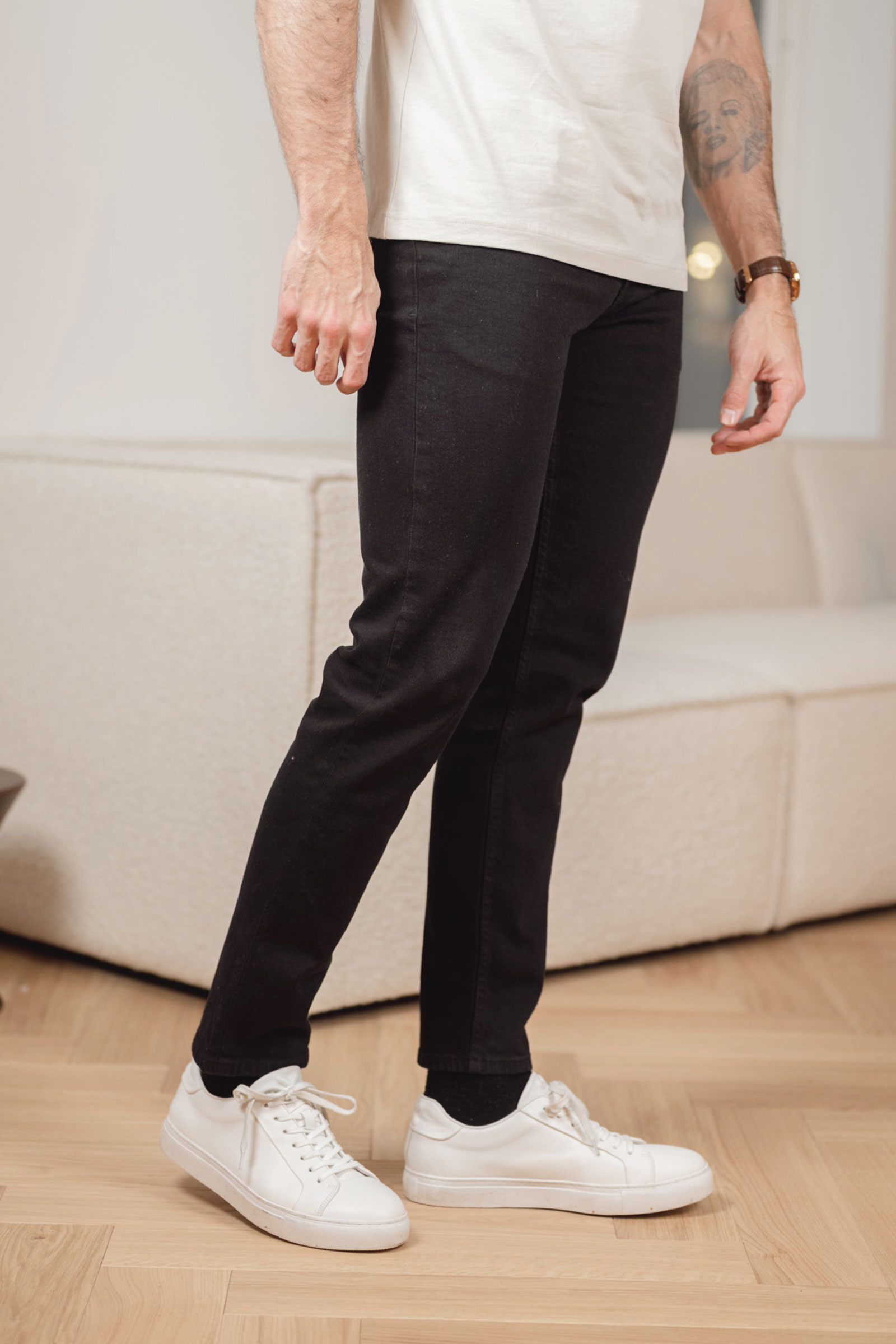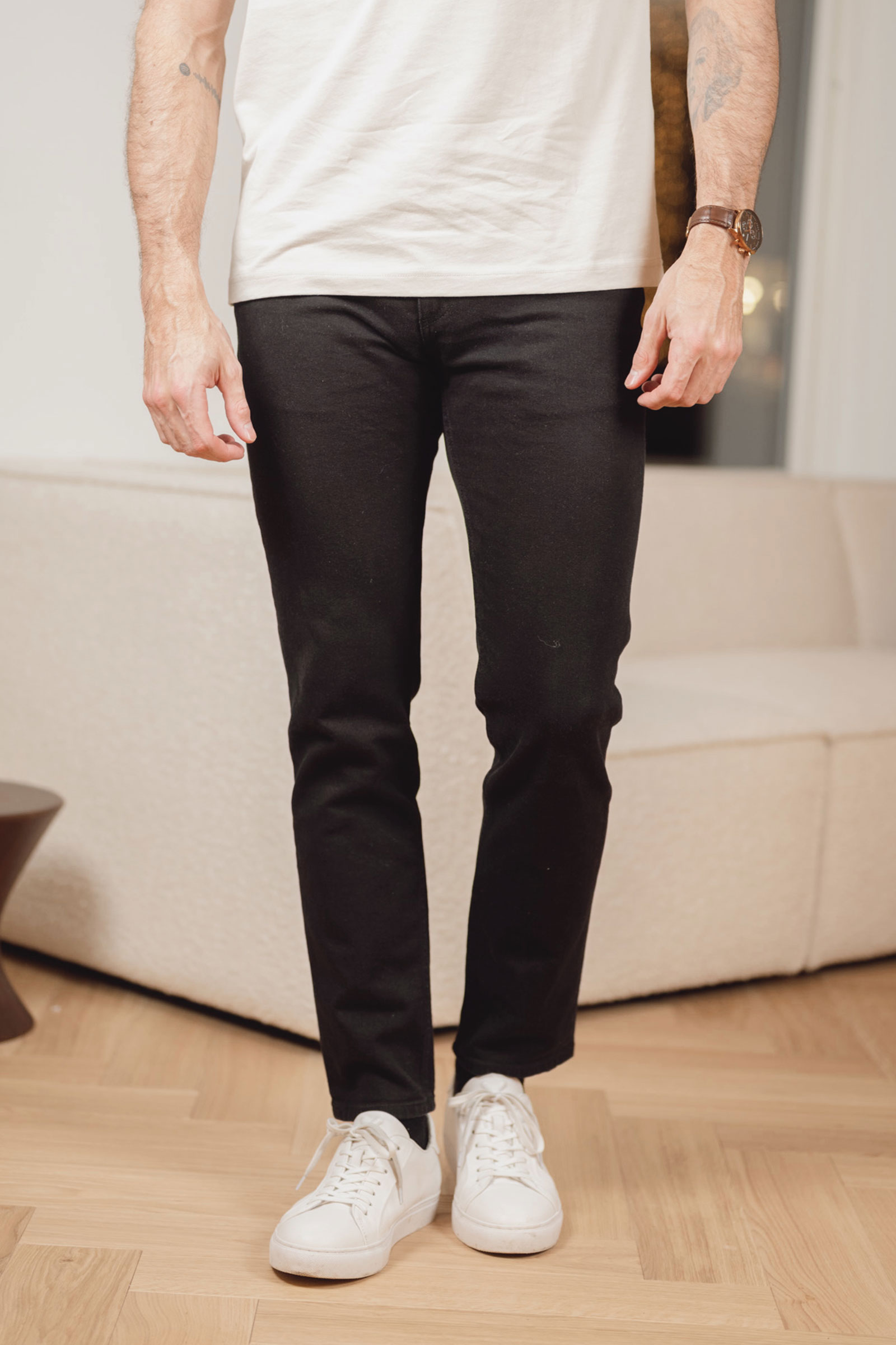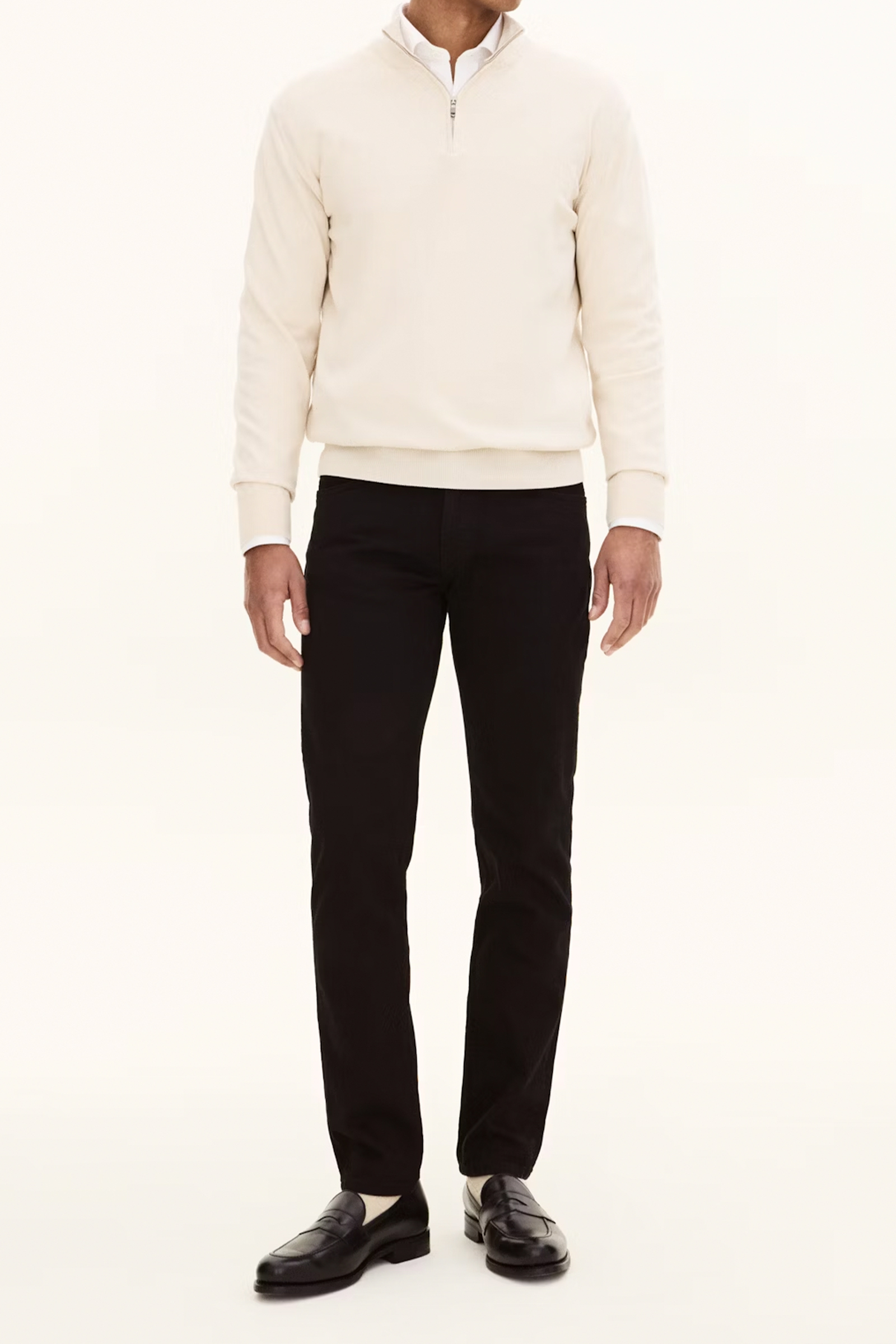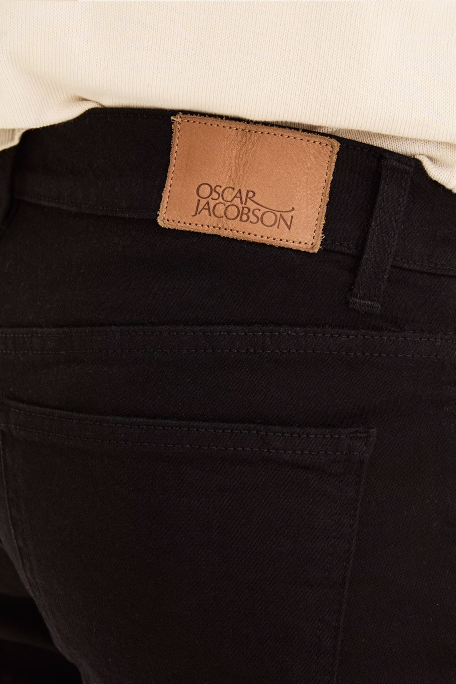 Klassiske sorte jeans fra Oscar Jacobson. Albert er en smal jeans med rette ben, livet har lav til normal høyde og er en perfekt følgesvenn i basegarderoben. Dette er en minimalistisk og klassisk jeans som fungerer til alle antrekk, både til hverdags og mer pyntede anledninger. Kombiner jeansen med en half-zip for en hverdagslig look, eller tilfør en skjorte for en mer sofistikert look.