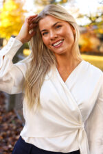 Nyhet fra Amuse! Anais er en stilren wrap silkebluse i en klassisk sort farge. Silkeblusen har mansjetter med knapper som er trukket i silke. Blusen har v-hals utringning som er passe dyp. Den perfekte blusen til årets julebord eller enhver festlig anledning – en sikker vinner i garderoben og er enkel å style. Kombiner silkeblusen med et passende skjørt og et par hæler for en perfekte looken.