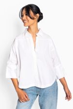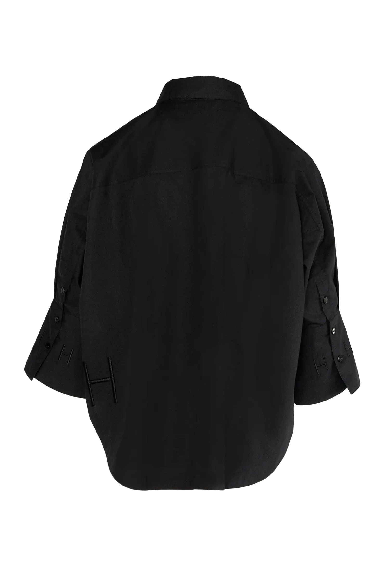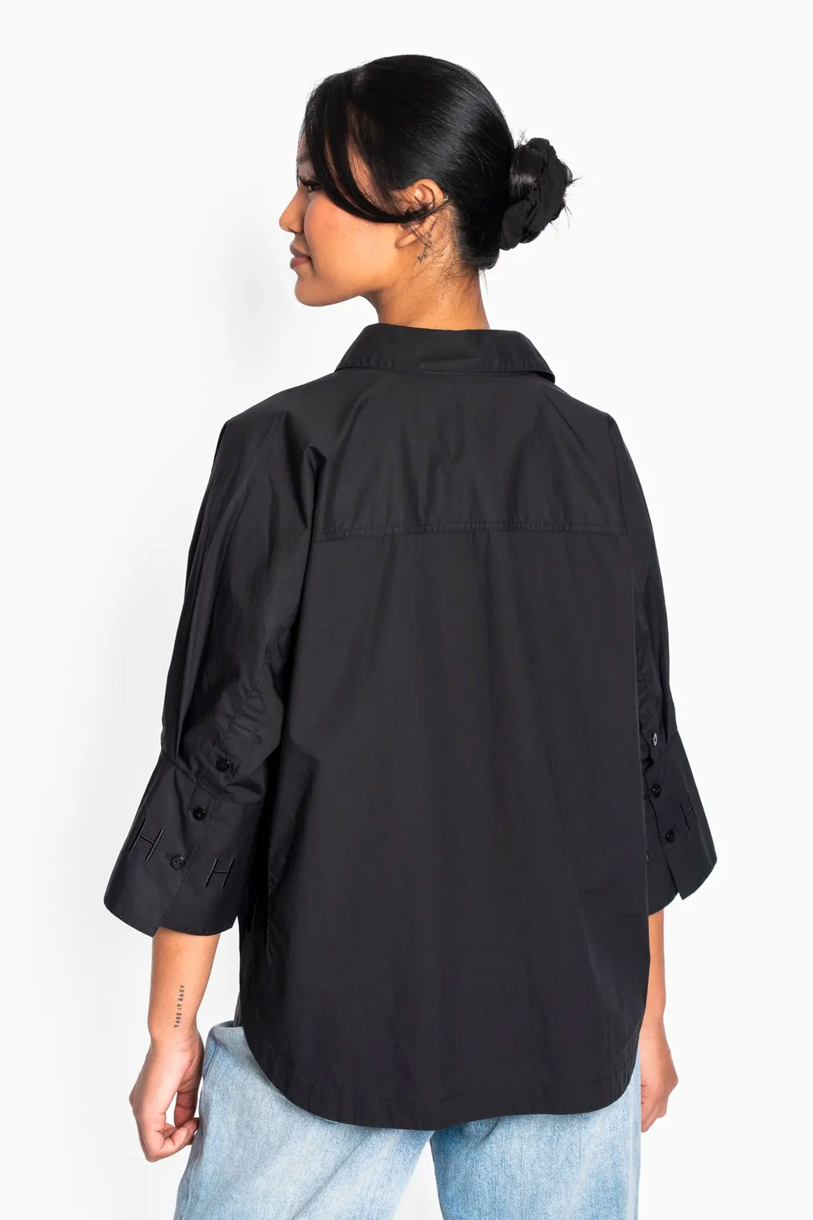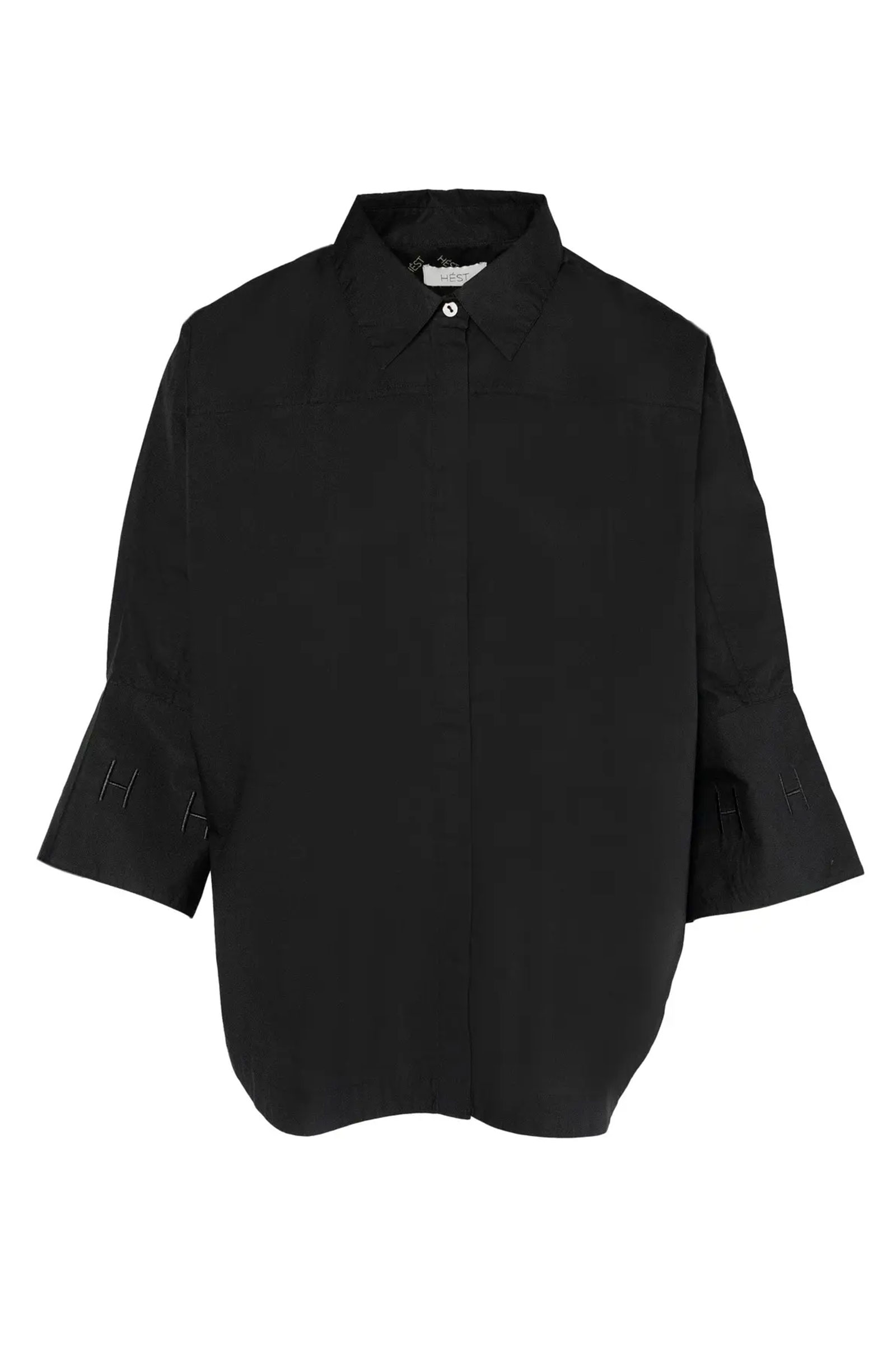 Arya Shirt fra HÉST i sort kombinerer en moderne, avslappet passform med et sofistikert uttrykk. Skjorten har droppede skuldre, vide 3/4-ermer og subtile logodetaljer som gir et eksklusivt preg, mens det lengre bakstykket gir en fin fasong. Den sorte fargen gjør den allsidig og enkel å style til enhver anledning. Utført i 100% bomull for en behagelig følelse hele dagen.