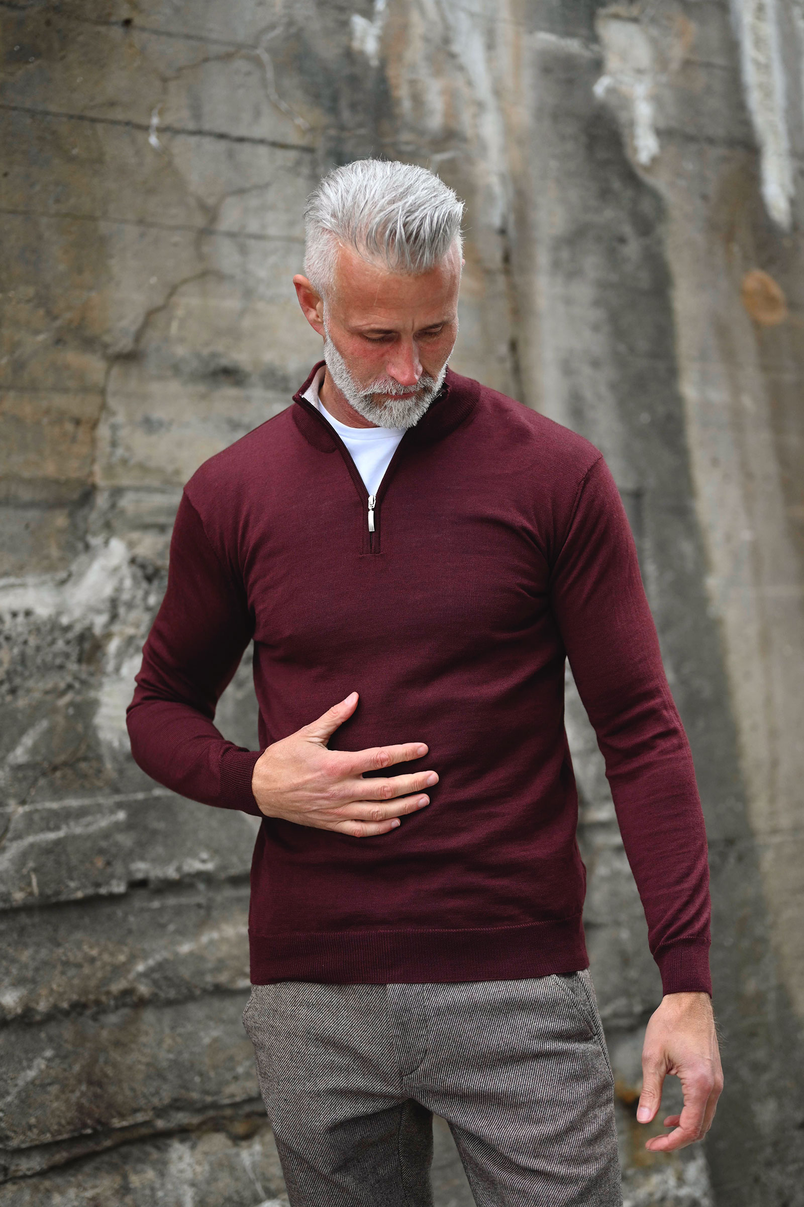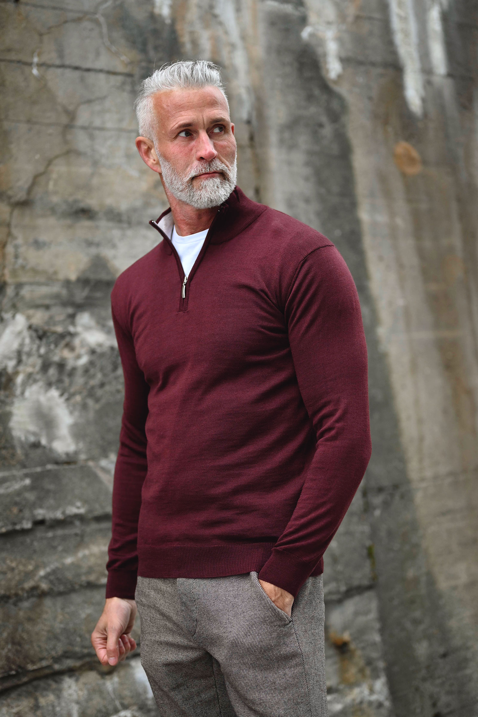 Nyhet fra Lacrosse! Bernie Merino half-zip i burgunder – høstens farge og et selvsagt tilskudd til garderoben. Genseren er laget i et mykt og behagelig stoff som kombinerer komfort med stil. Innsiden av kragen har en elegant grå kontrastfarge som gir plagget et moderne og eksklusivt preg. Den minimalistiske designen gjør den like fin alene som i en lag-på-lag-styling. Perfekt til høstsesongen der varme og stil går hånd i hånd. Kombiner den med dressbukser og en lett dunvest for en sofistikert og gjennomført høstlook.
