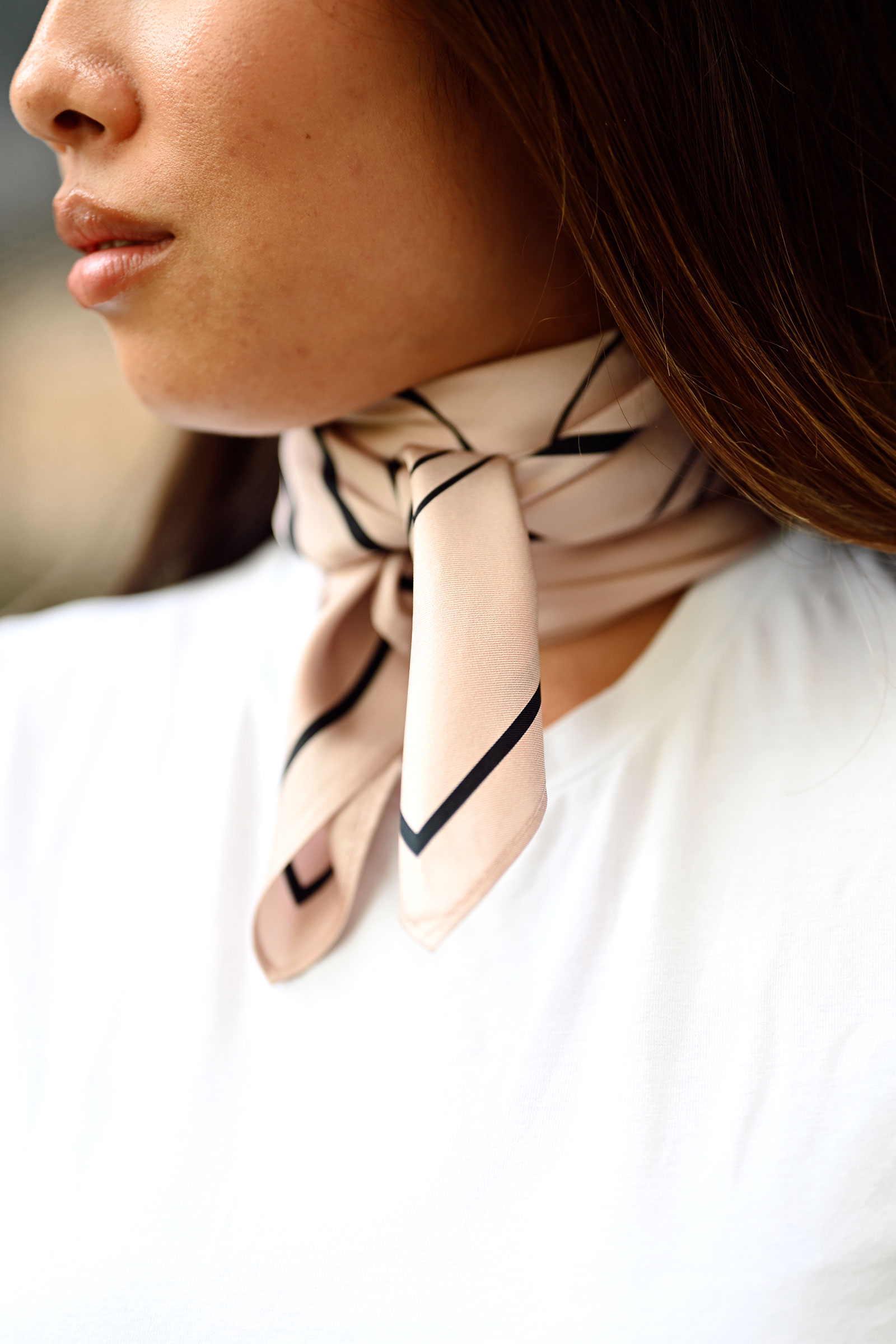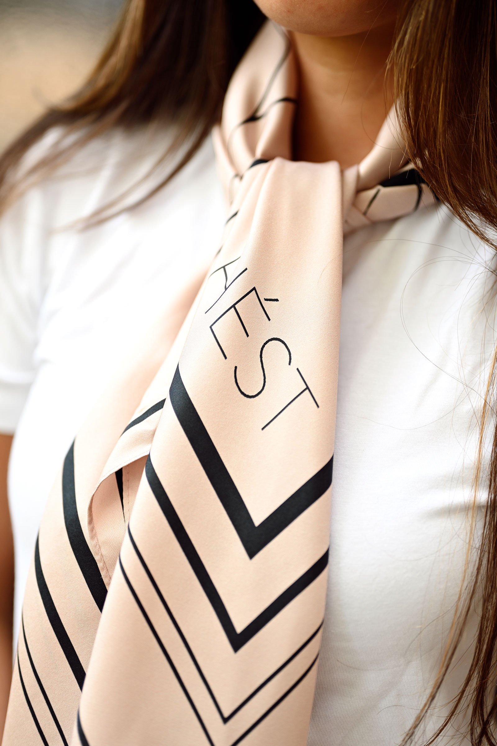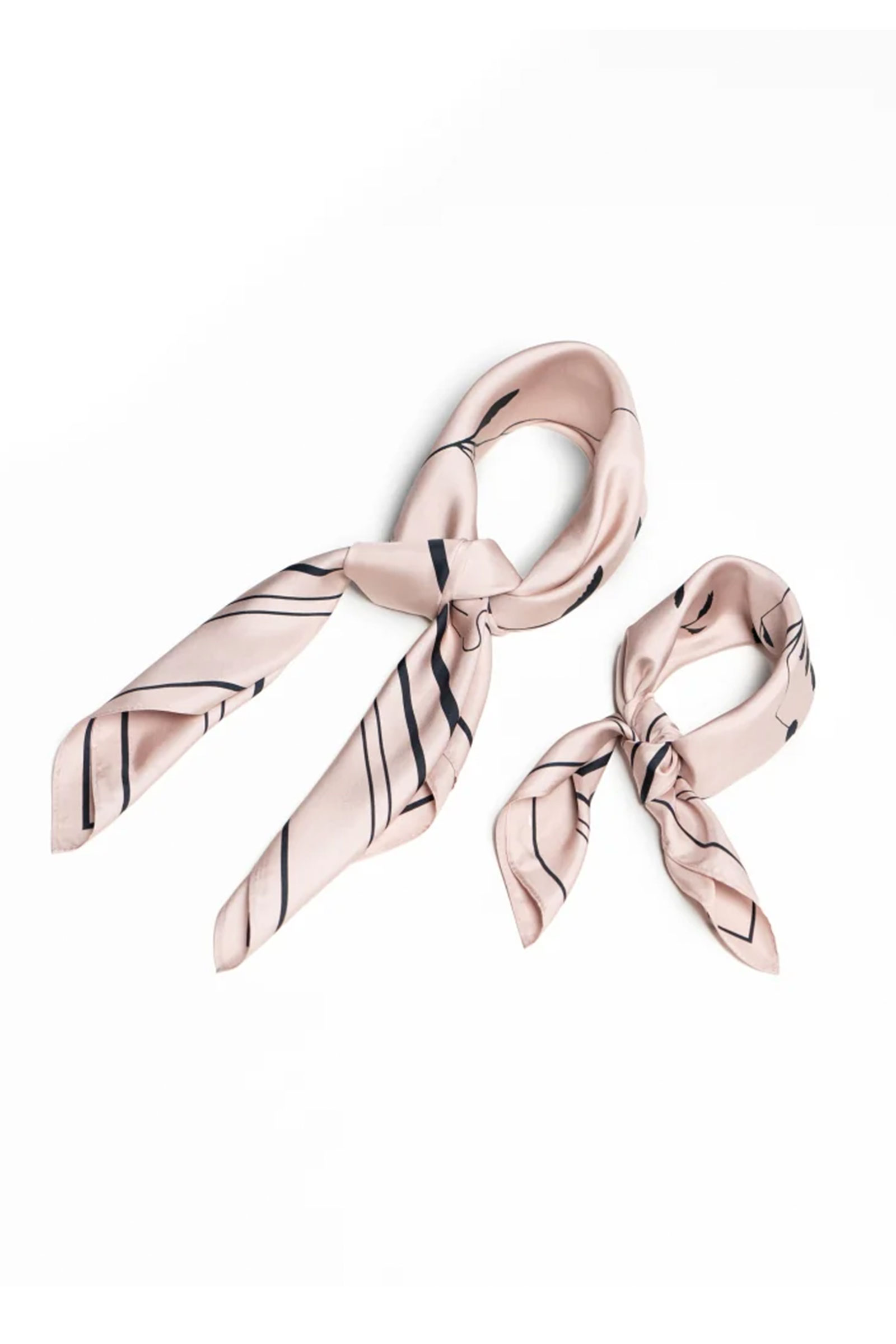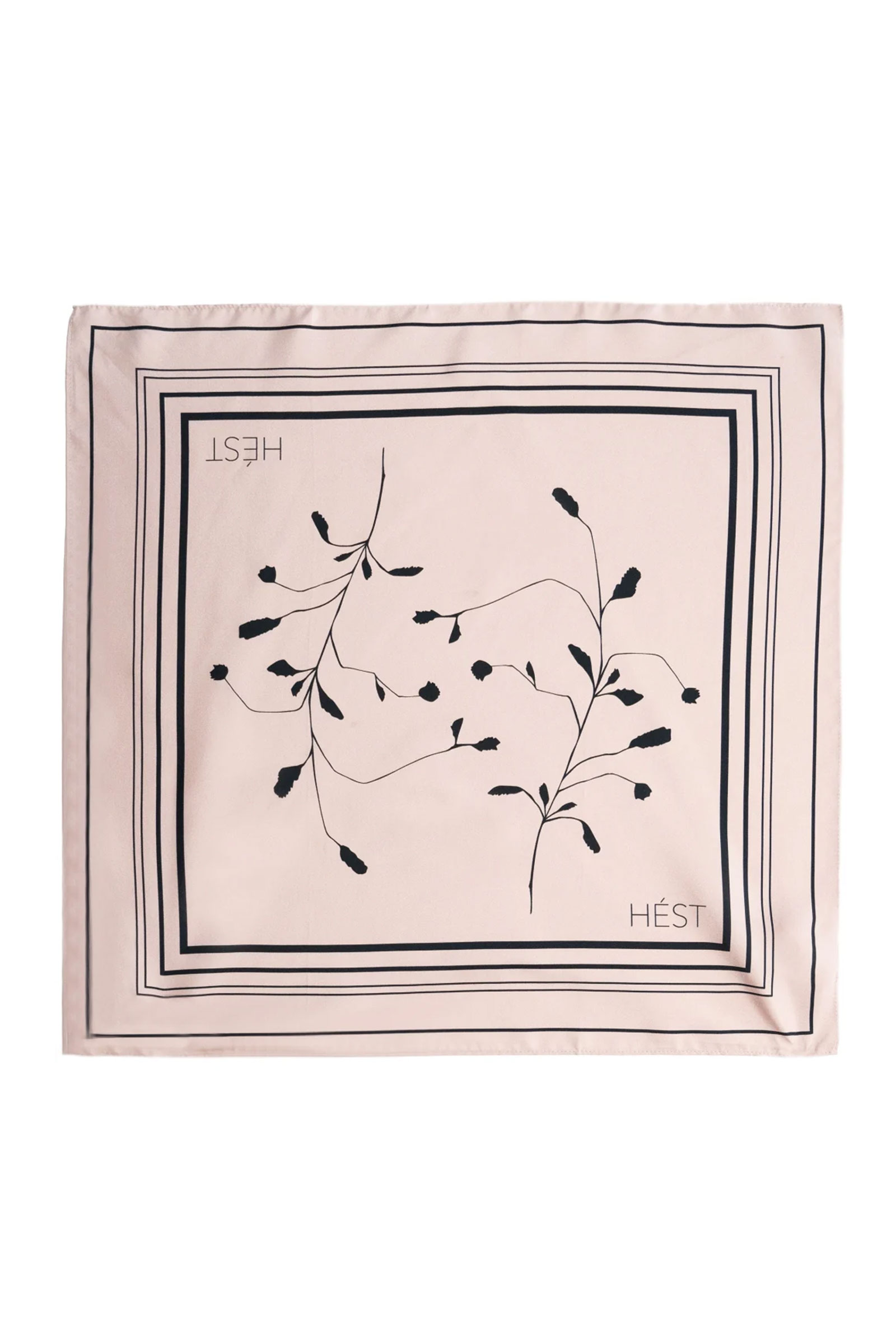 Rosa silkeskjerf fra Hést med et tidløst print og logo. Black Twig Scarf Large er et elegant silkeskjerf laget av ren silke som kan styles på ulike måter – rundt halsen, som pynt på vesken eller i håret. Med sin myke og glatte tekstur, tilbyr skjerfet både komfort og stil. Gi antrekket ditt en ekstra touch av luksus med dette eksklusive skjerfet fra Hést!