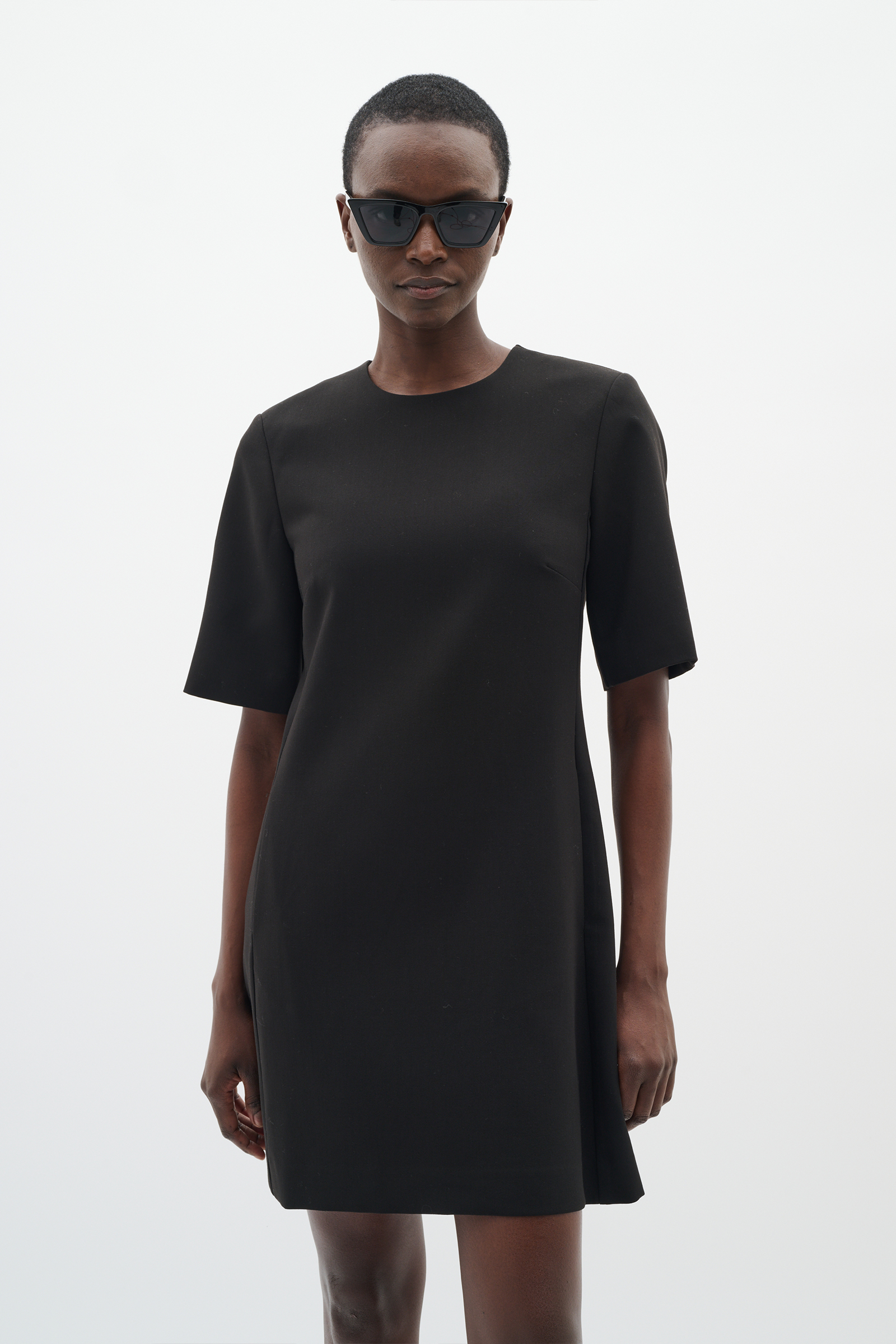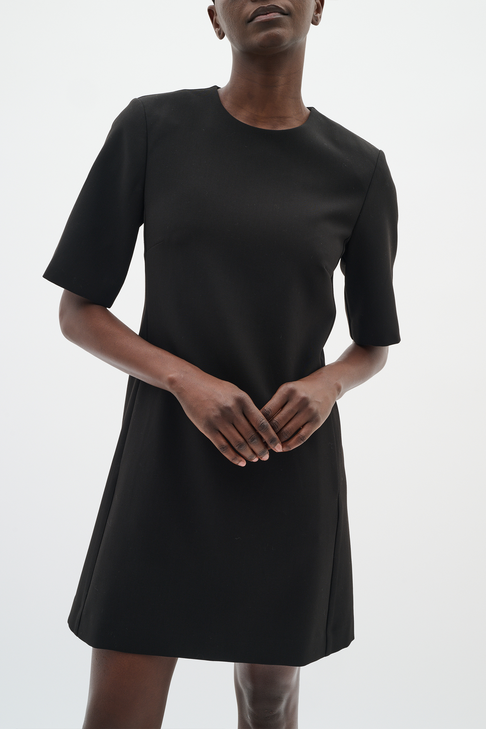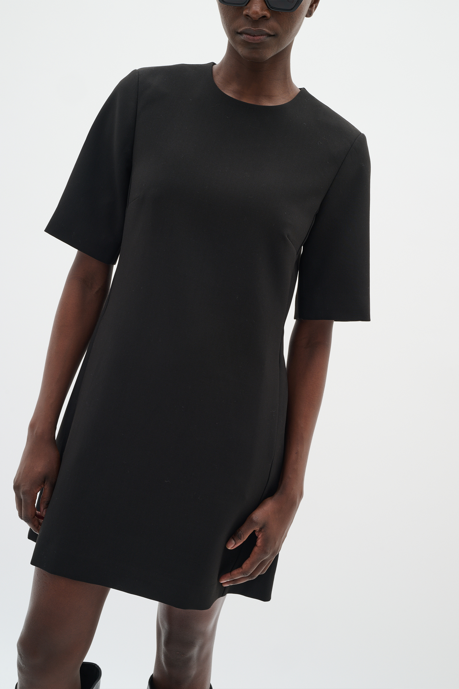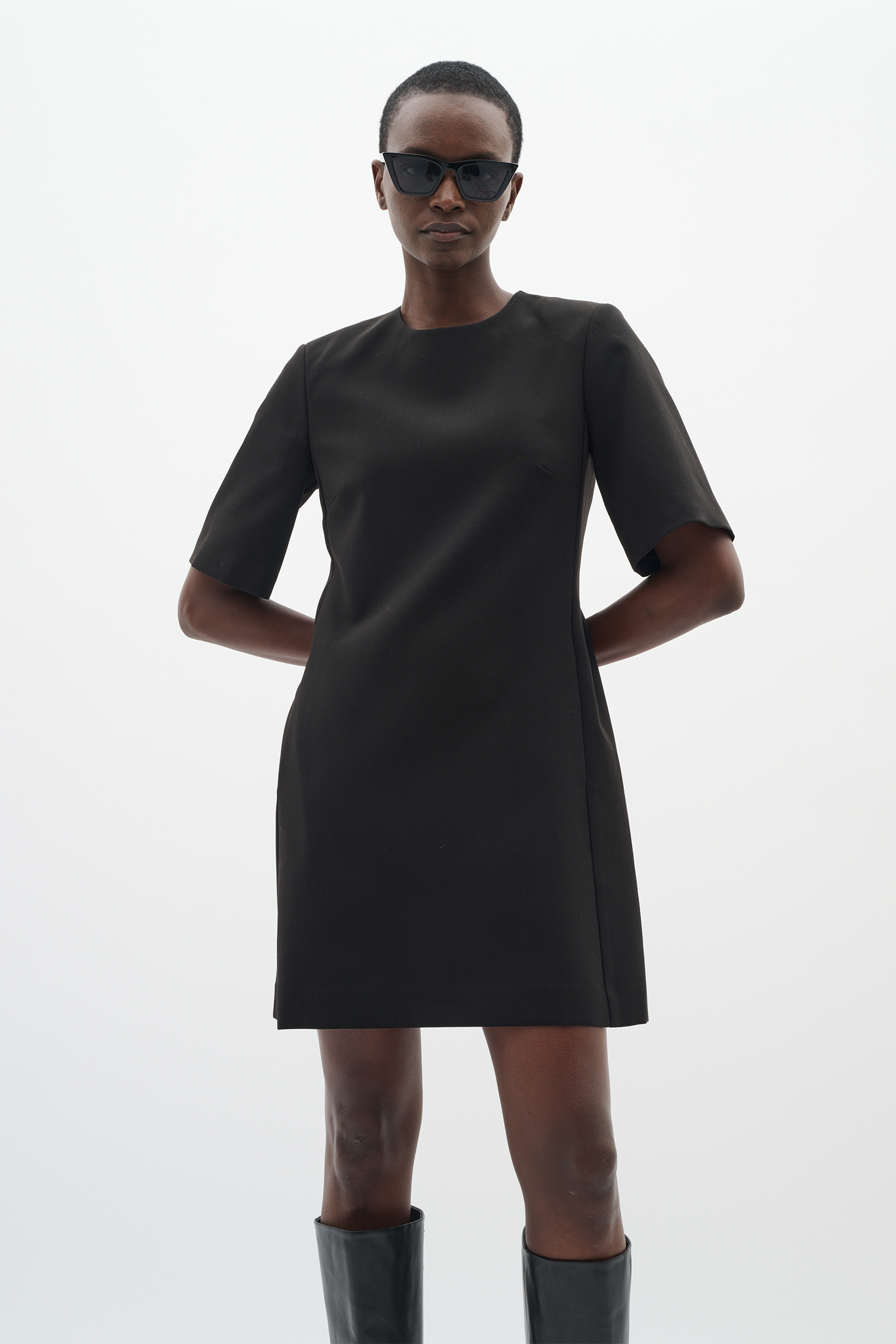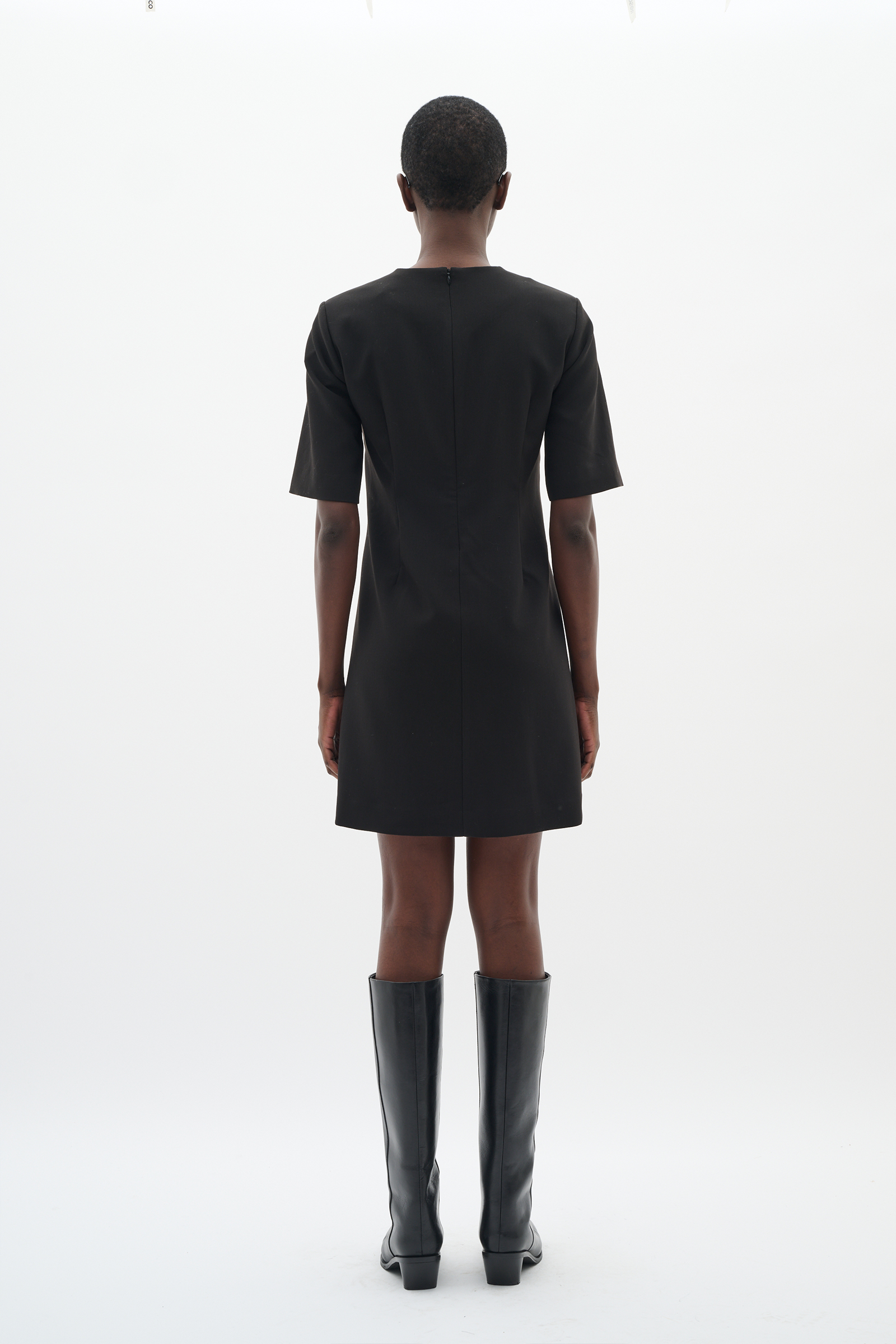 Sort, klassisk kjole fra InWear i et tidløst design. Bryelle kommer med en lengde over kneet, korte ermer og en rund hals. Lukkes enkelt med skjult glidelås i ryggen. Dette er den perfekte lille sorte som passer til alt. Like fin til et par sneakers som til hæler – et absolutt must til basegarderoben.