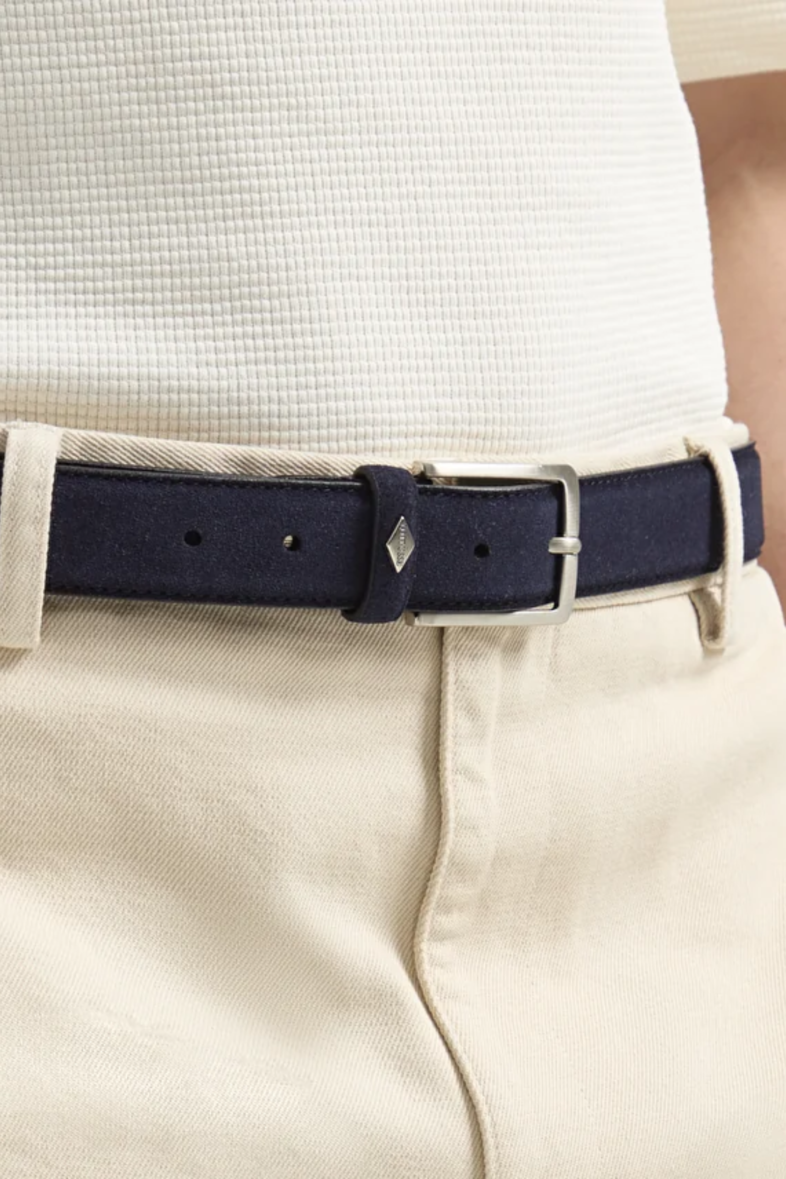 Buckle Belt Suede Leather, Navy Blue