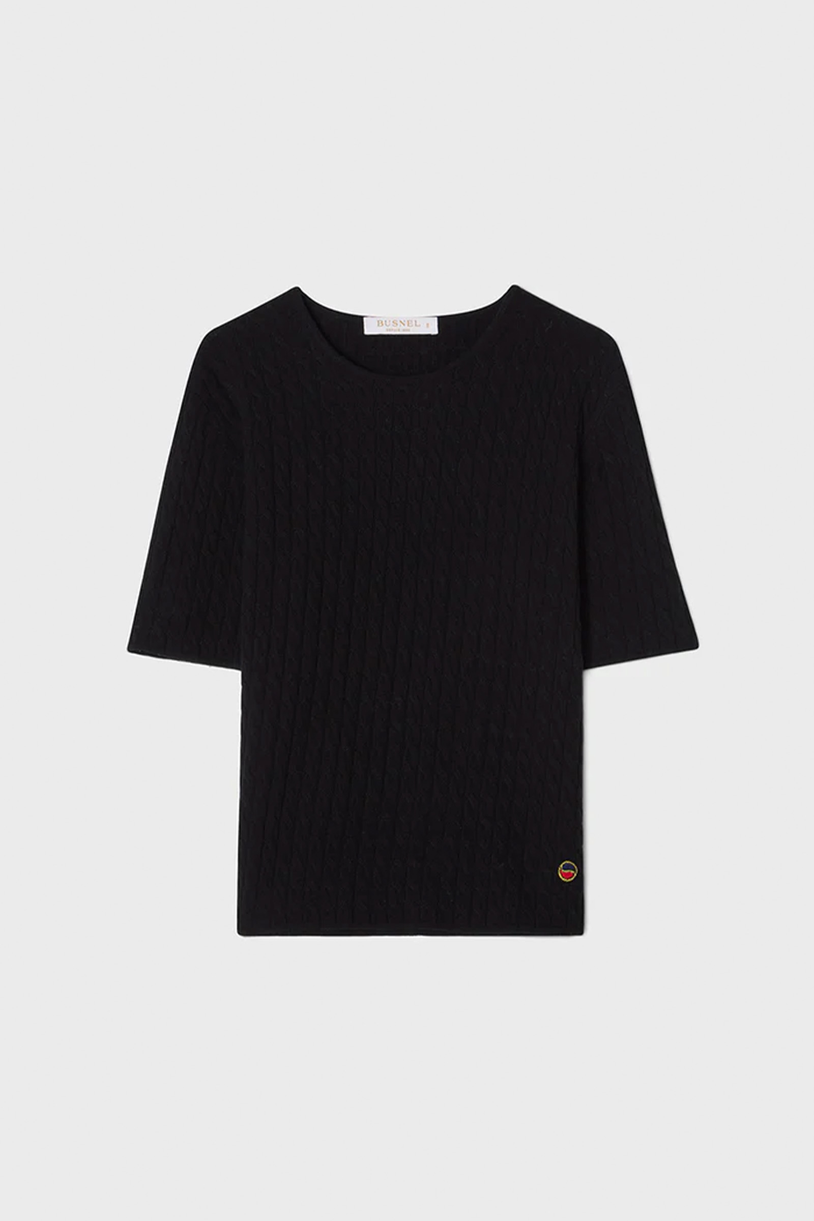 Leona Top fra Busnel er en elegant kabelstrikket genser laget av en eksklusiv blanding av merinoull og kashmir. Den har en avslappet passform med korte ermer og rund hals, som gjør den både tidløs og allsidig. Den vakre kabelstrukturen gir en feminin touch, og toppen passer perfekt til alt i garderoben din.