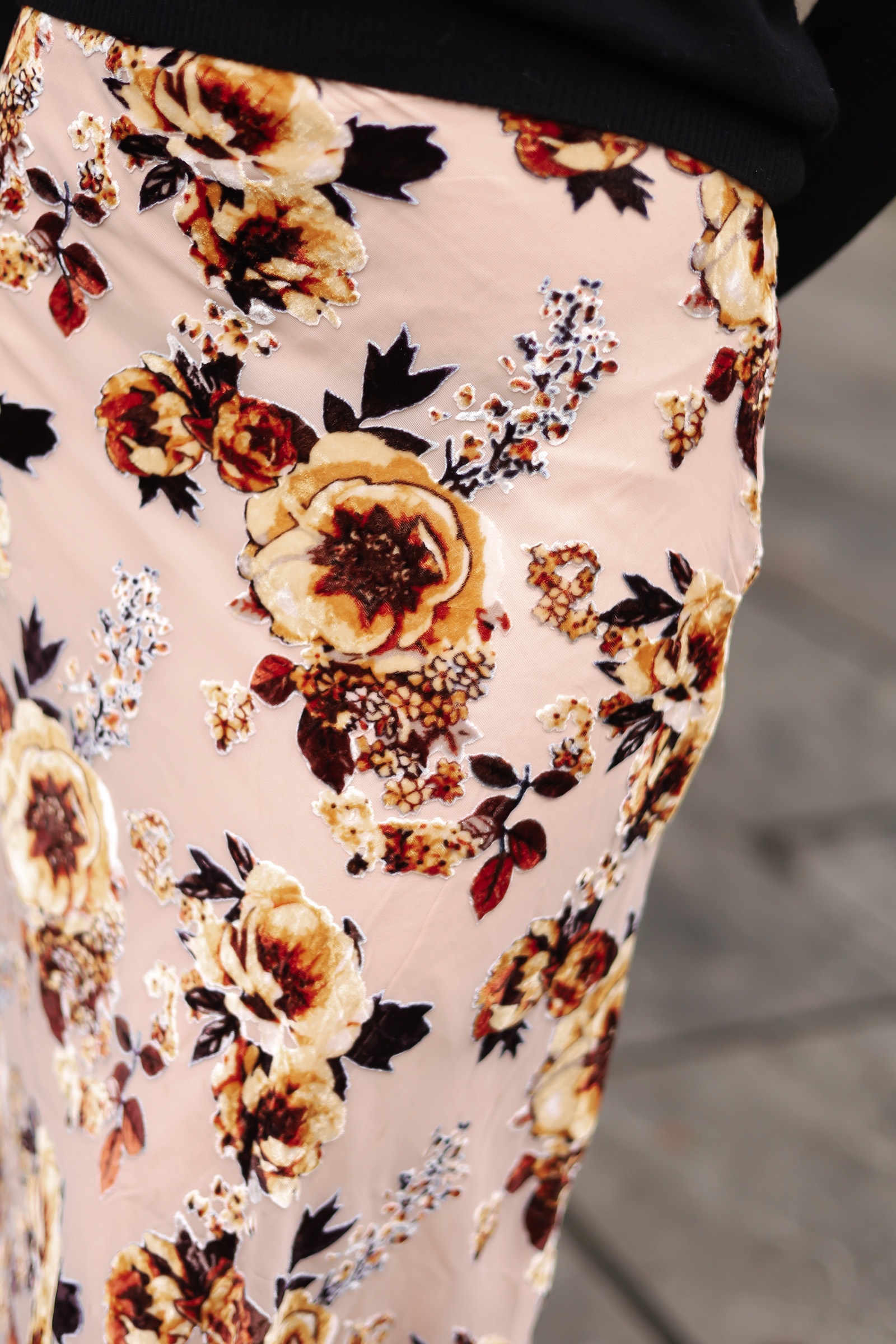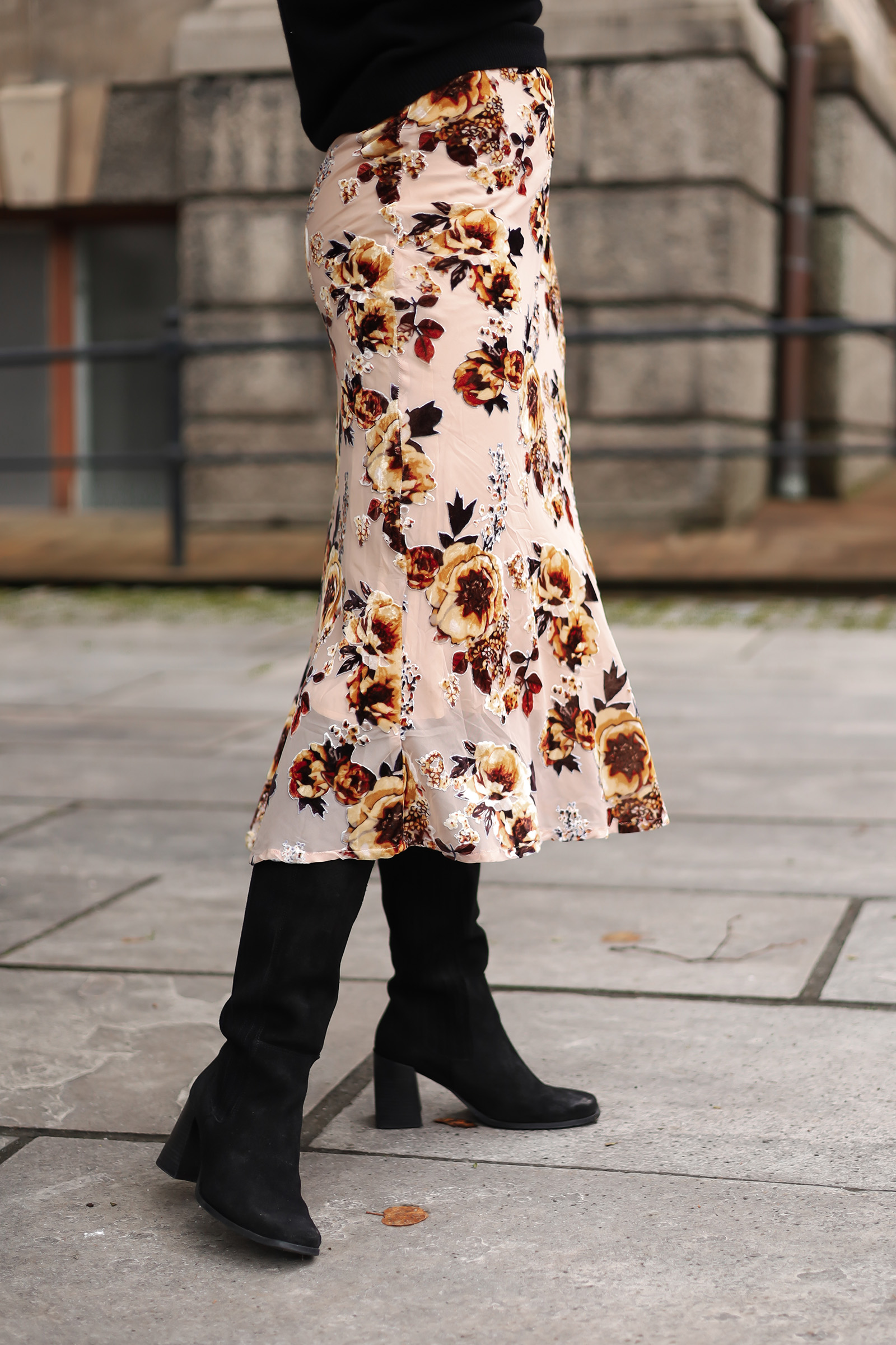 Et nydelig velourskjørt fra Urban Pioneers i et flott blomstermønster med rosa krem og brune toner! Cheryl Skirt kommer i en smal passform, midi-lengde og glidelåslukking i siden. Fint å kombinere til høstens strikk og boots, men fungerer også fint til hæler og en pen topp.