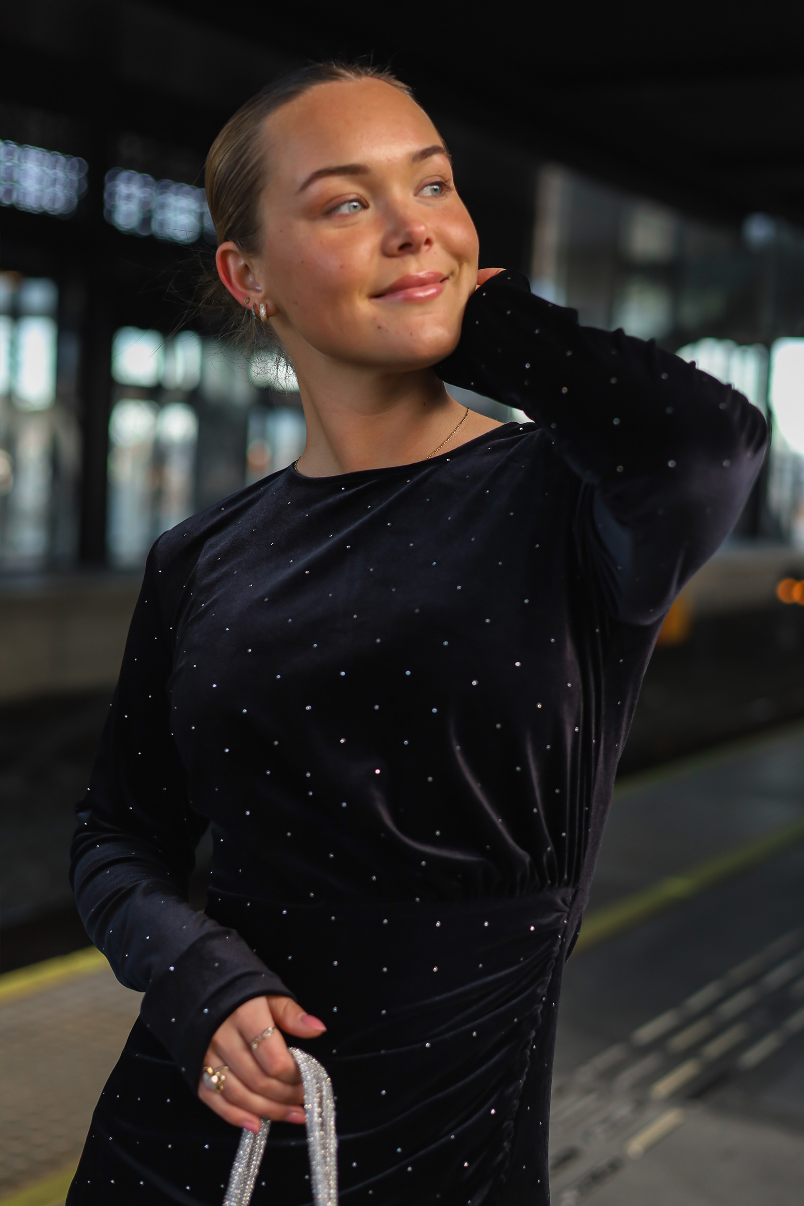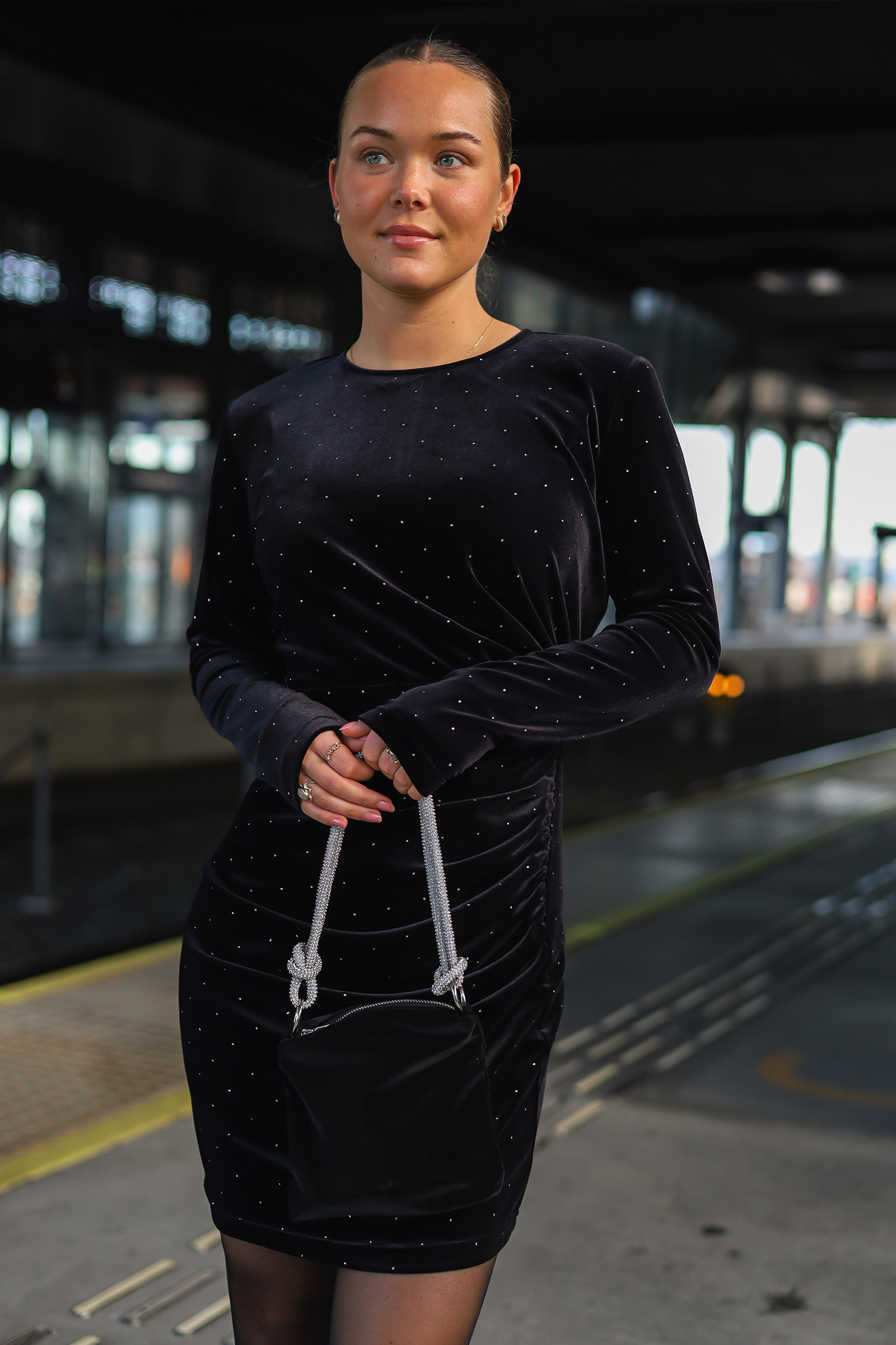 Clio er en festkjole fra Love Lolita i et mykt og komfortabelt stoff. Kjolen er i stretchy fløyel med strass og har en flatterende passform. En vakker kjole som gir en elegant look.