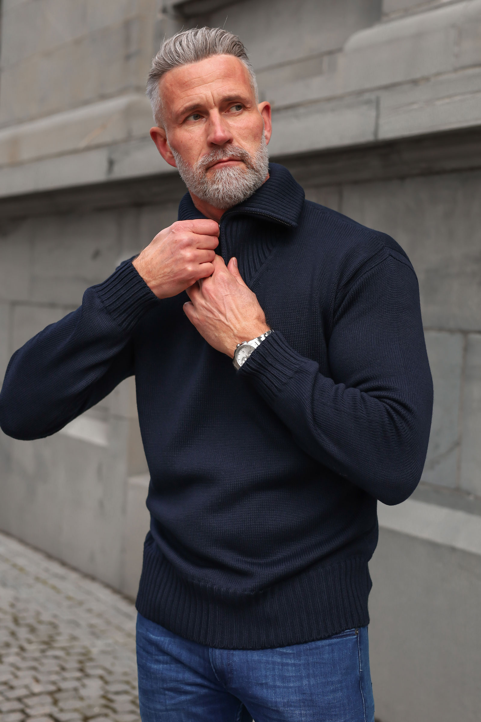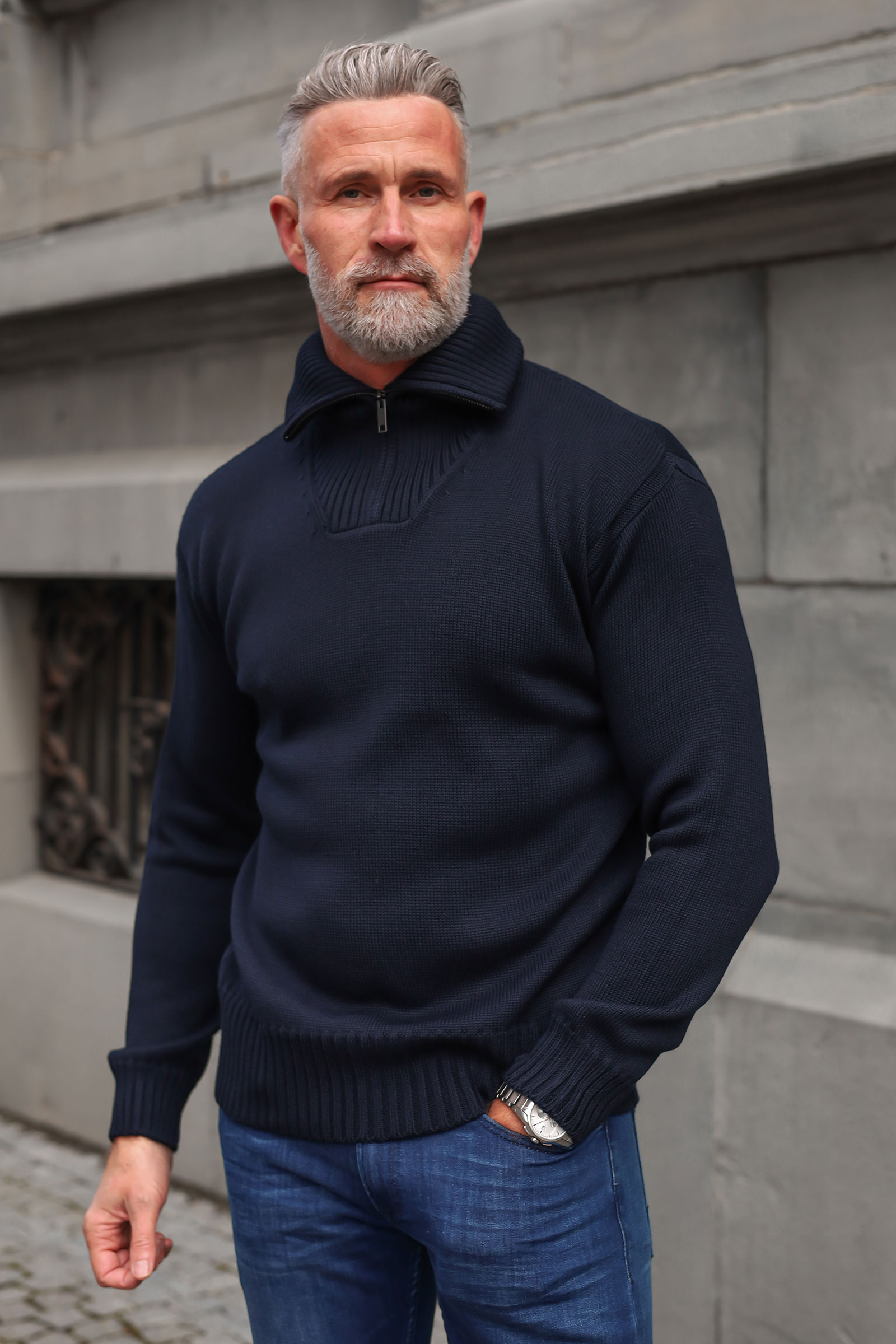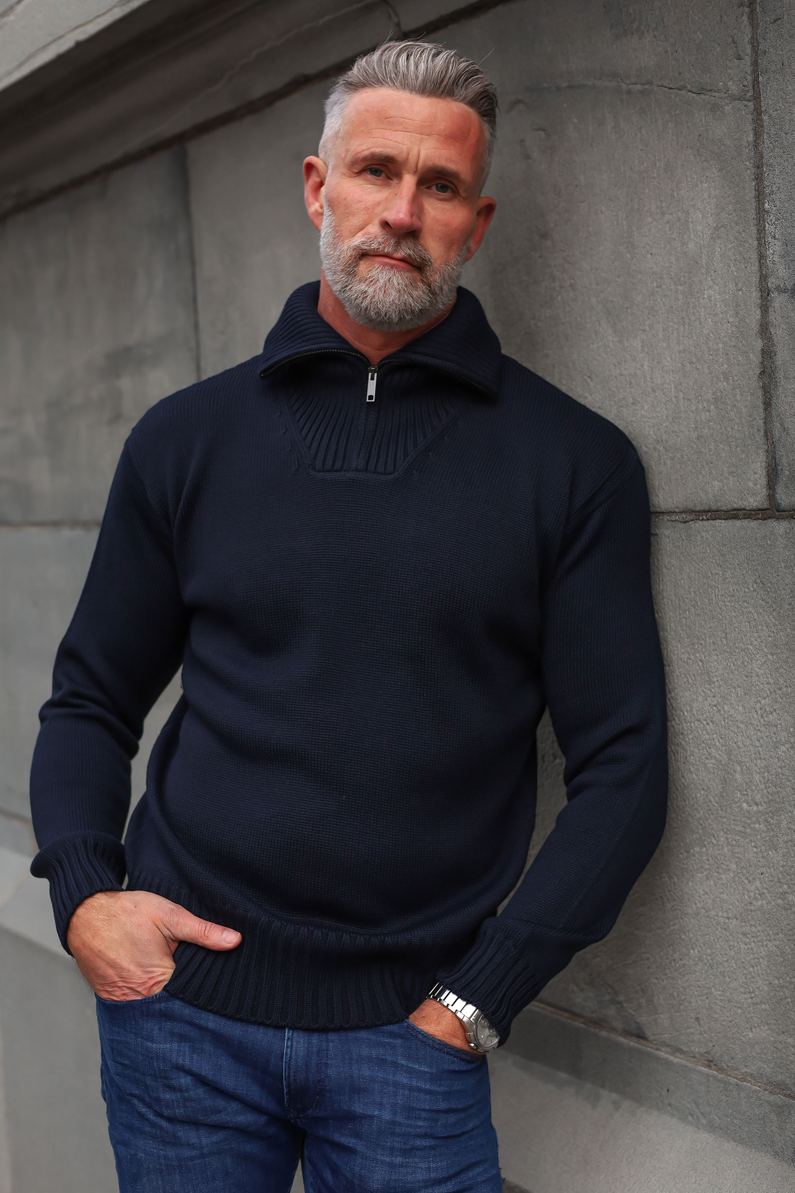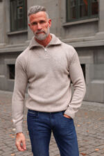 Tidløs zip-genser fra vårt nye merke, italienske Daniele Fiesolo. Dette er en myk base i tykkere ribbestrikk, rett passform og delikate detaljer. Genseren kommer med en høyere krage som enkelt kan brettes ned om ønskelig ved hjelp av glidelåsen. Kommer i en deilig ullblanding som varmer godt mot høst og vinter.