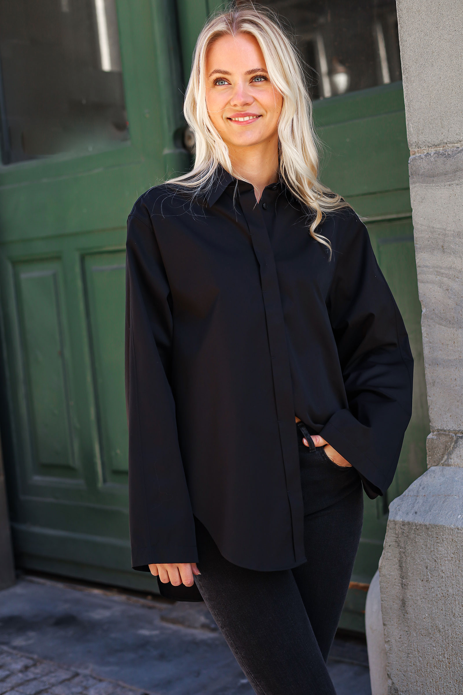 Endelig er den tilbake! Sort, klassisk skjorte fra Tiger of Sweden i crispy-bomull med en oversized passform. Cornia kommer med noe videre ermer, knappestolpe med sorte knapper og en klassisk krage. Denne skjorten er like fin å kombinere til jeans og et par boots som til en dressbukse og kåpe. En baseskjorte er et must i alle klesskap og denne er en skjorte du har i flere år til flere ulike bruk.