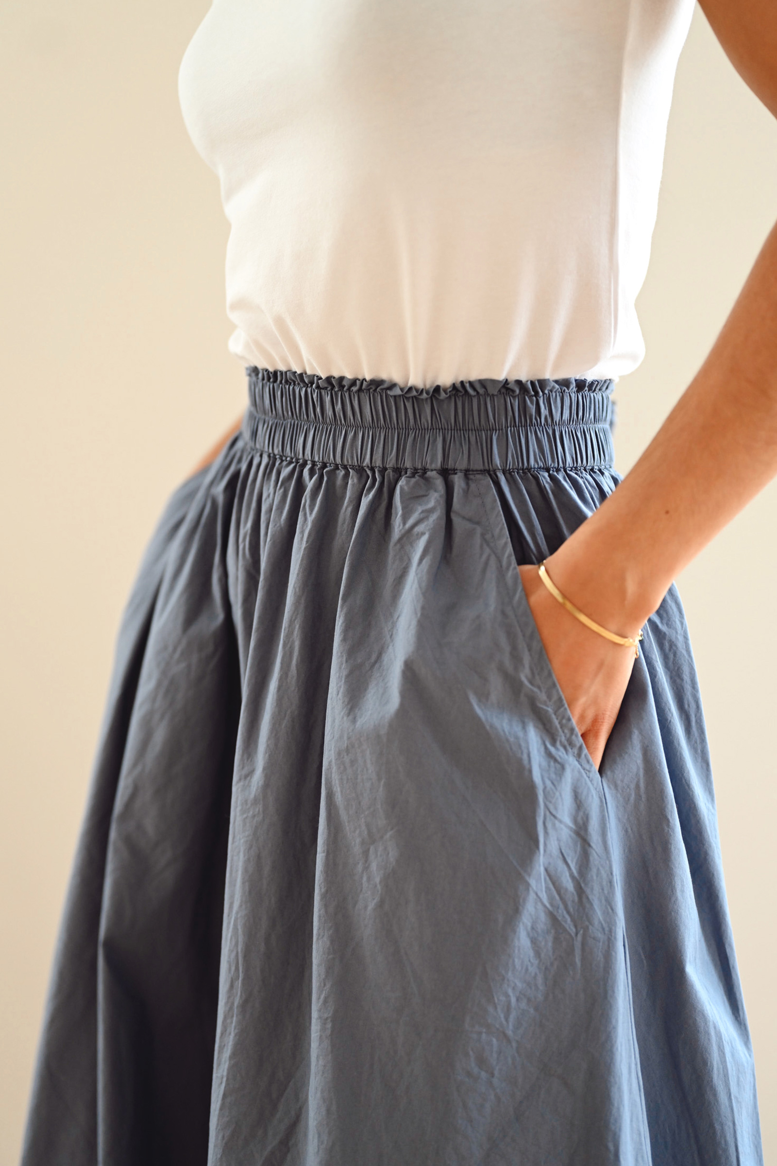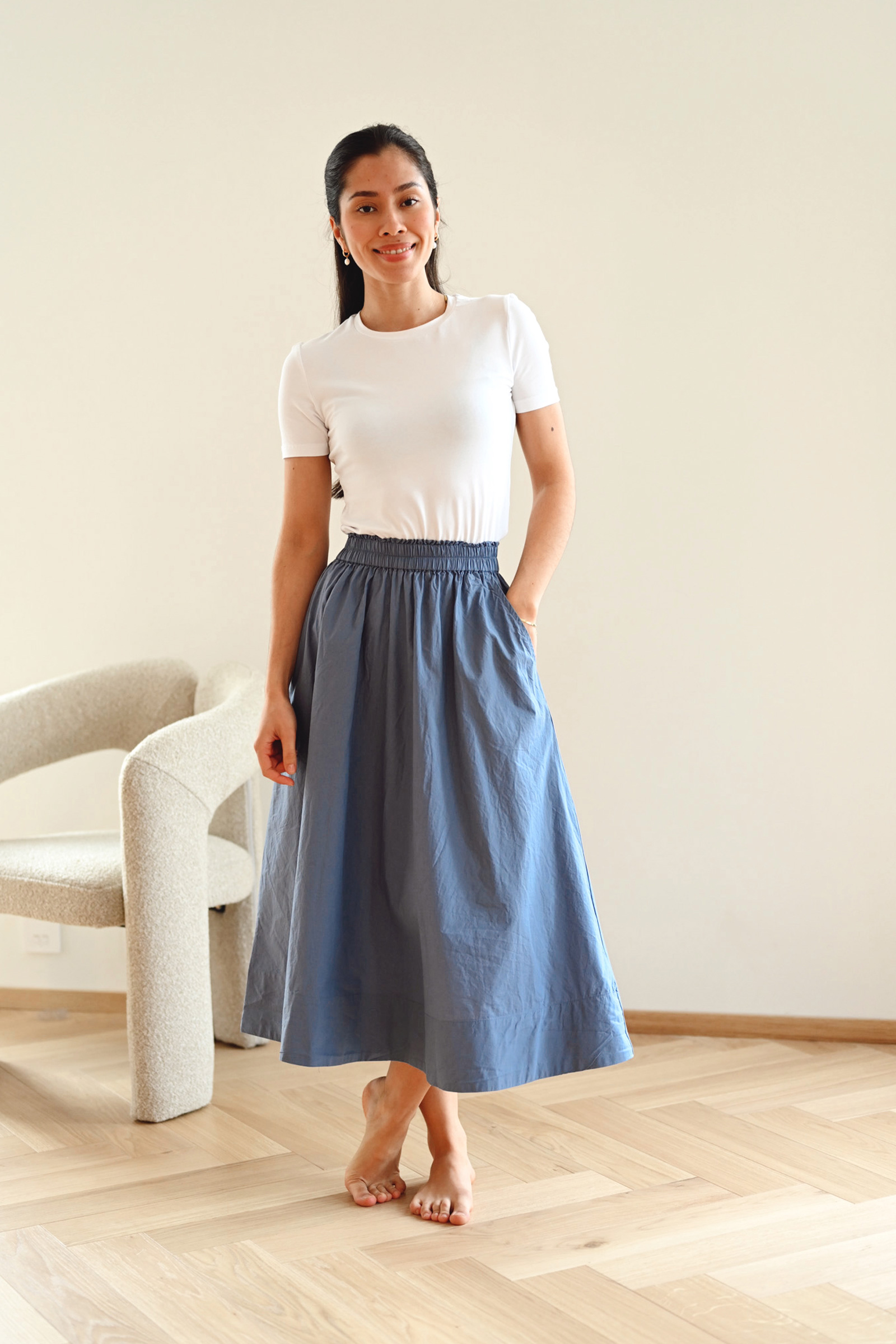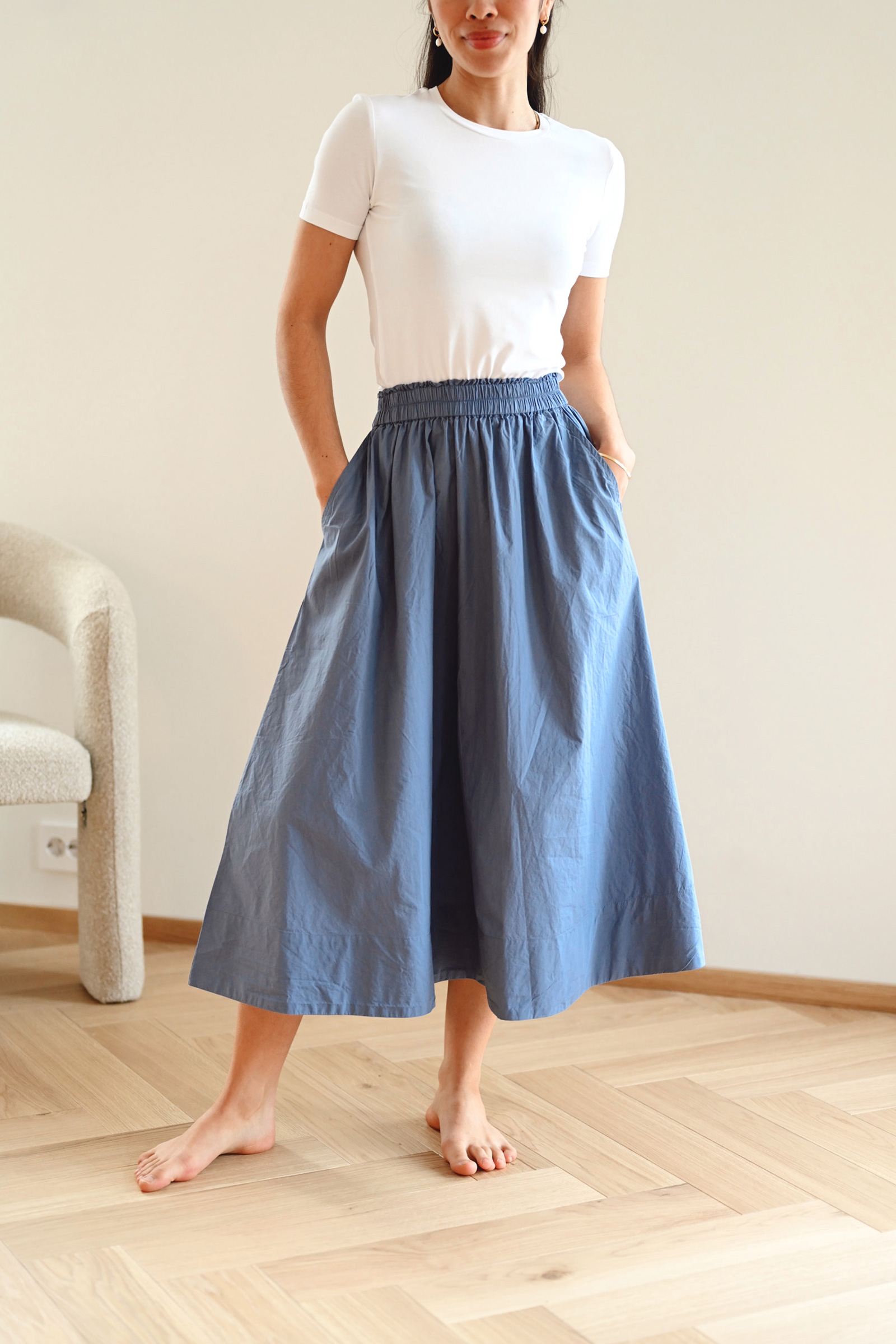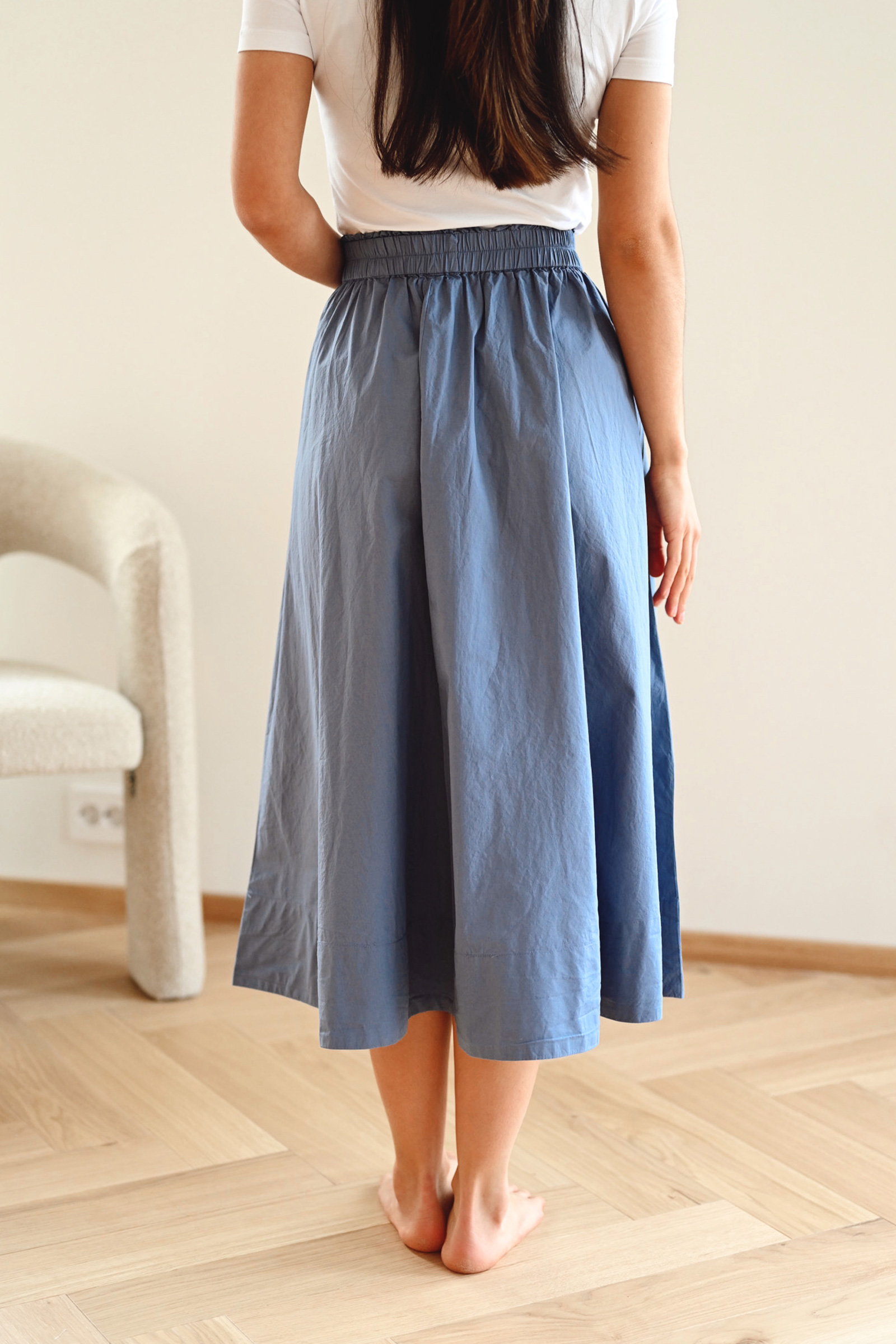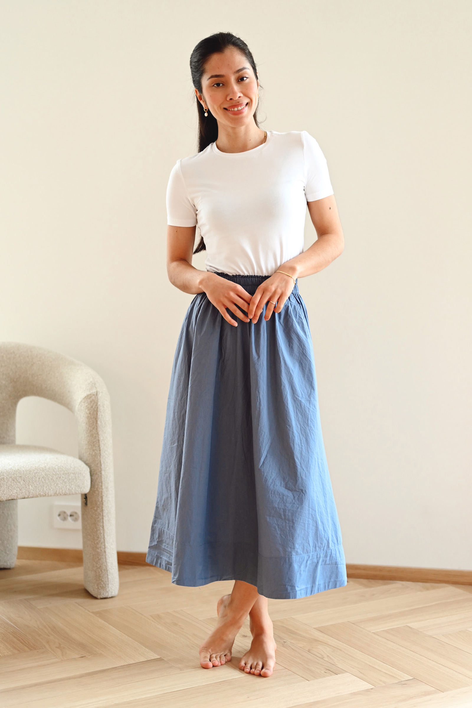 Tidløst bomullsskjørt fra InWear i en deilkat blåfarge. Daffodil kommer i en midilengde, har stikklommer i siden, elastisk midjebånd og en a-formet passform. Med sitt crispy bomullsmateriale er dette et skjørt som er perfekt til vår- og sommer.