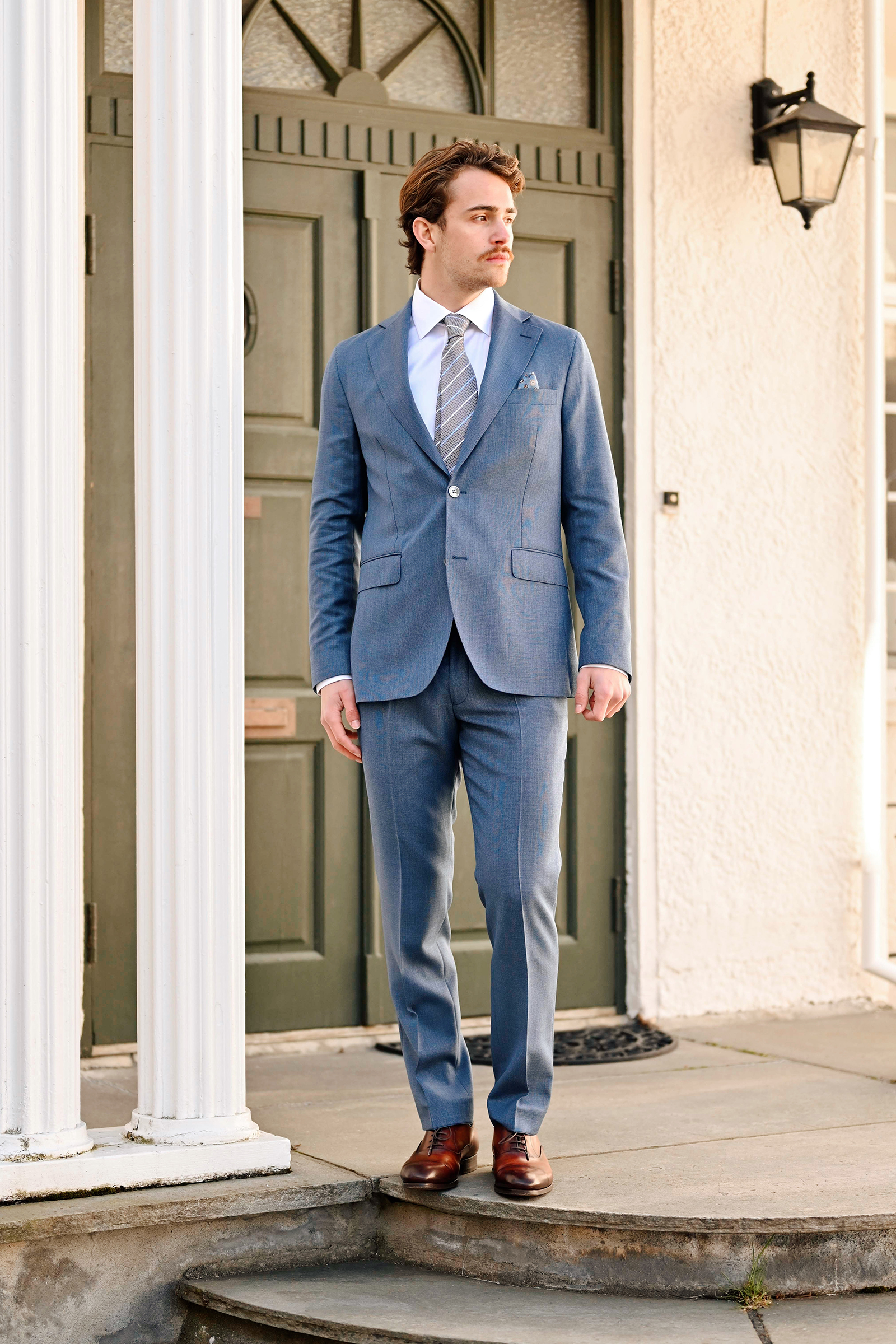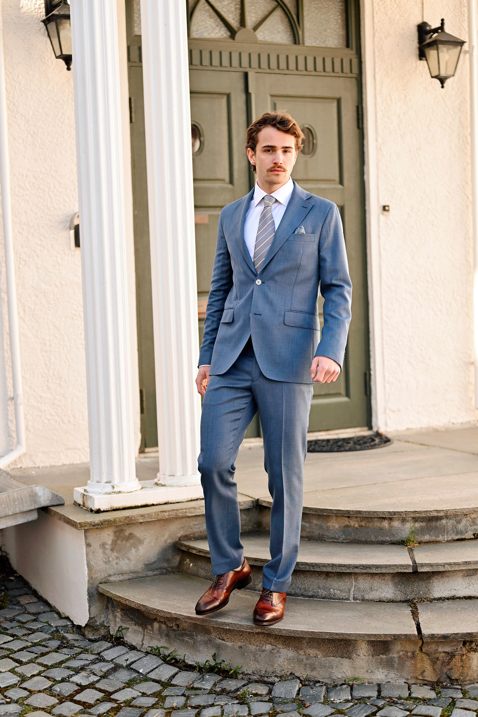 Dressbukse fra Oscar Jacobson i lys blå. Dandy kommer i en slim passform med vevd tekstur i 100% ull. Buksen har sidelommer, welt-lommer bak samt beltehemper. Med sin delikate kvalitet og farge er dette en bukse som er klassisk og fungerer året rundt. Kombiner med tilhørende blazer for en fullført look.