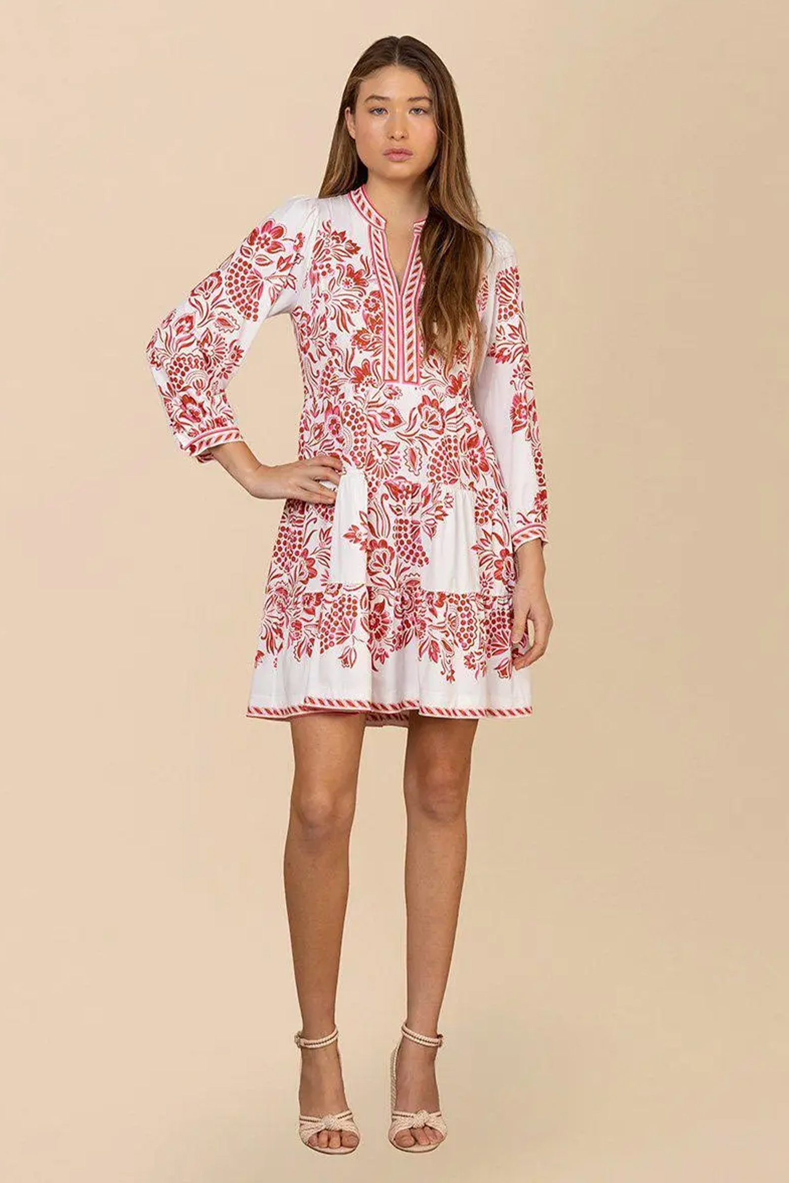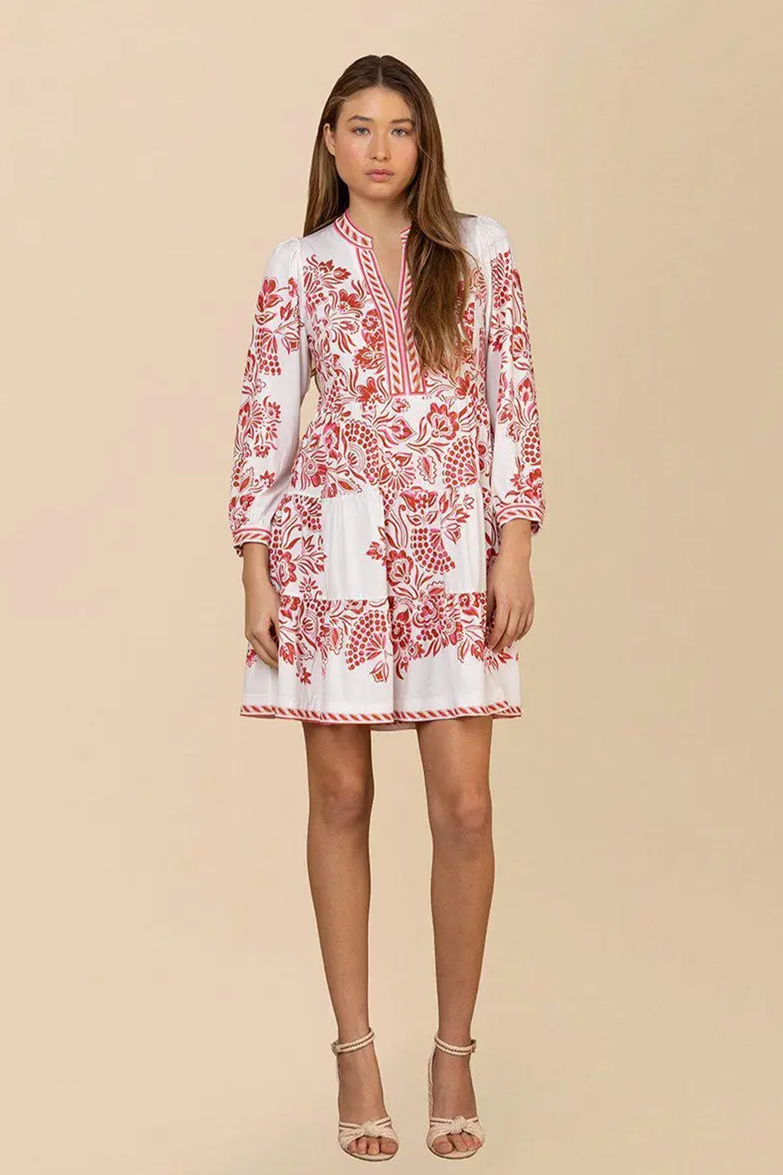 Sommerlig og lett kjole fra Hale Bob i hvitt med et rødt print – perfekt til varme dager vi går i møte. Demelza kommer i en lengde til rett over kneet med a-formet skjørt, v-hals, trekvartsermer med vidde samt praktiske lommer. Med sin deilige kvalitet og sommerlige design er dette en superfin kjole til feriedager hvor du ønsker en elegant og komfortabel kjole.