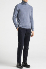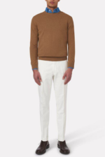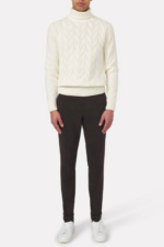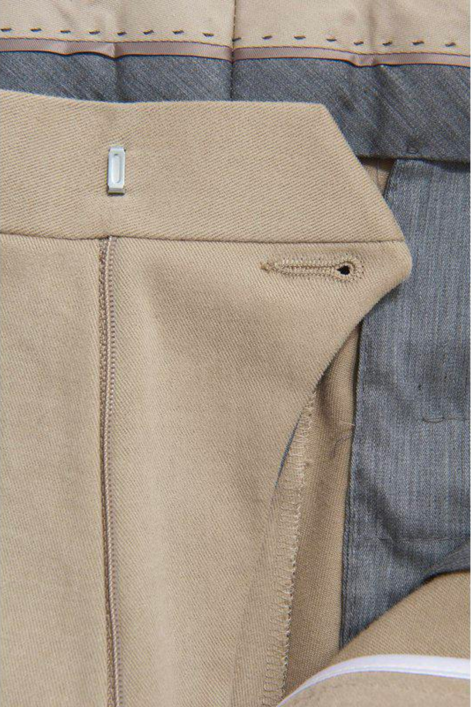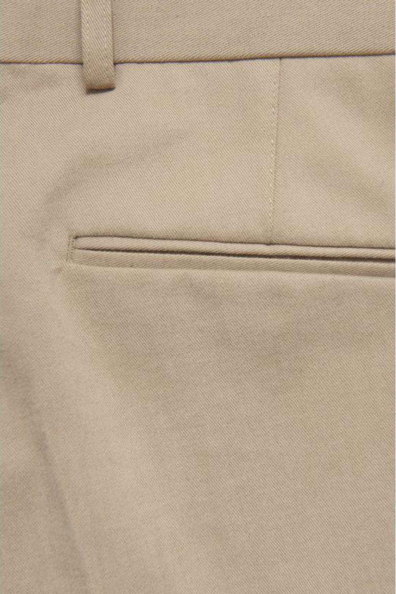 Denne formelle buksen har en tett passform som smalner nedover, bretter ved benavslutningene og en normal høy midje, som gir en klassisk og strukturert silhuett. Laget av bomullstwill, kombinerer stoffet en skarp utseende med en avslappet følelse, noe som gjør passformen både stilfull og behagelig.