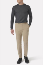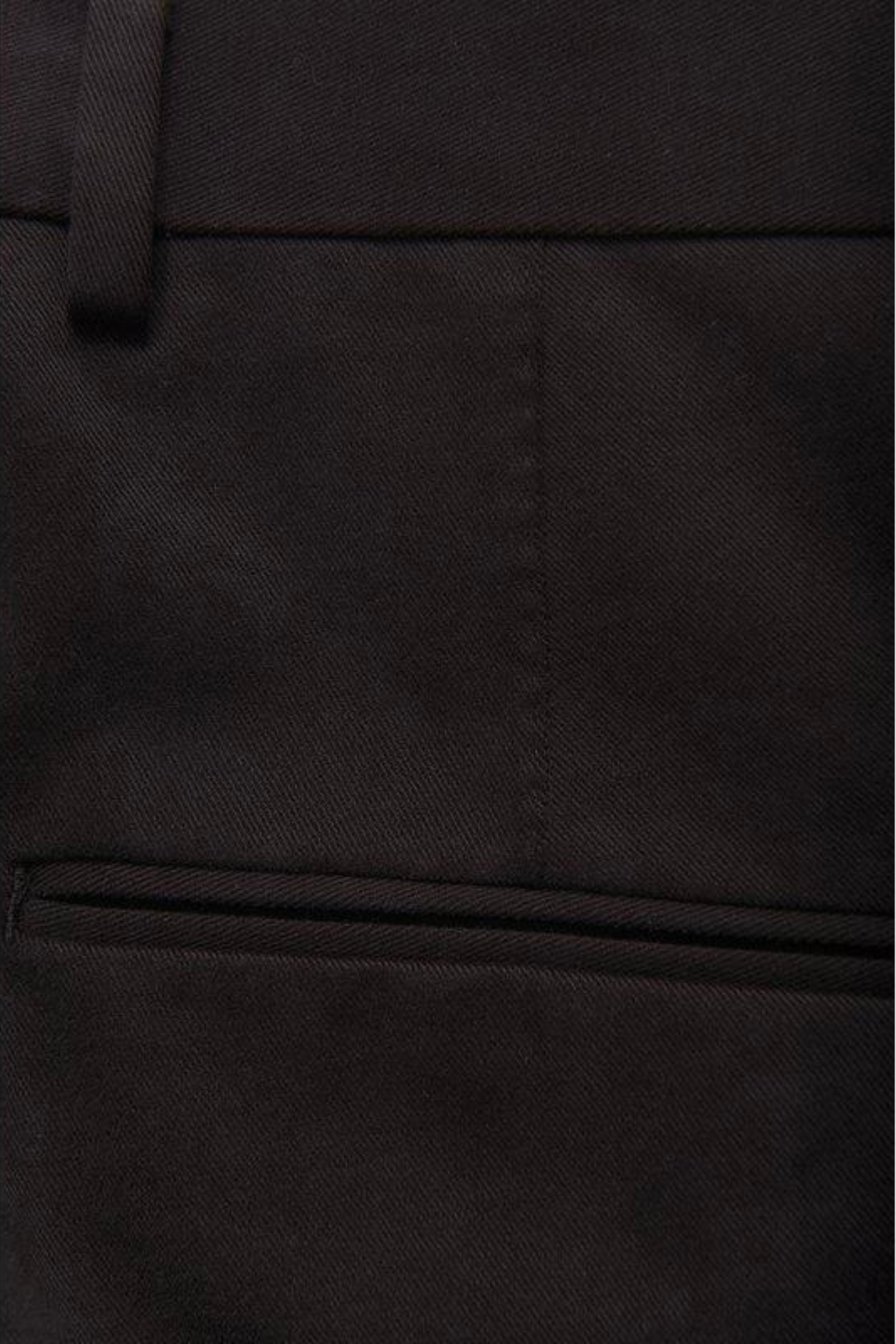 Denne formelle buksen har en tett passform som smalner nedover, bretter ved benavslutningene og en normal høy midje, som gir en klassisk og strukturert silhuett. Laget av bomullstwill, kombinerer stoffet en skarp utseende med en avslappet følelse, noe som gjør passformen både stilfull og behagelig.