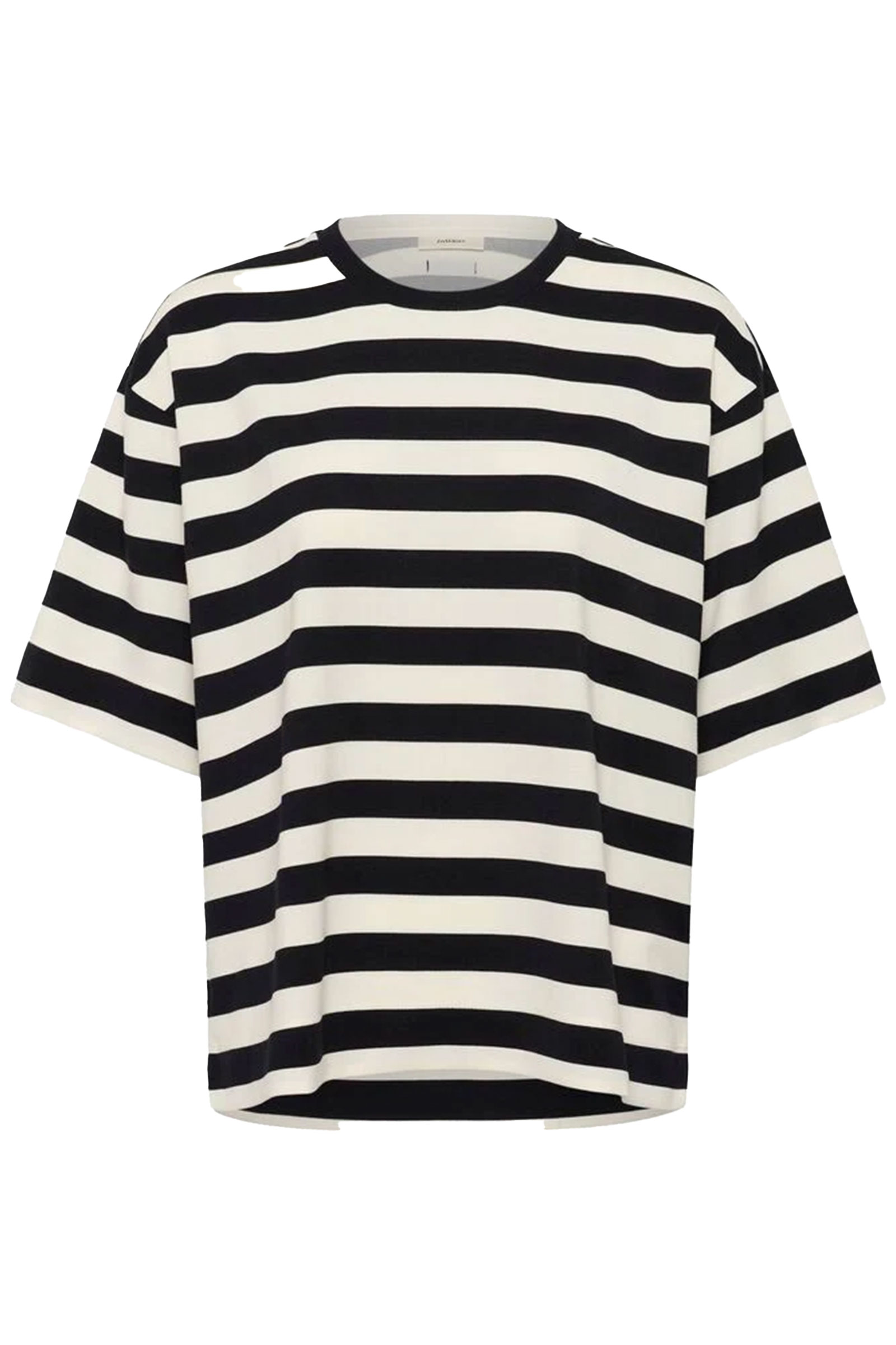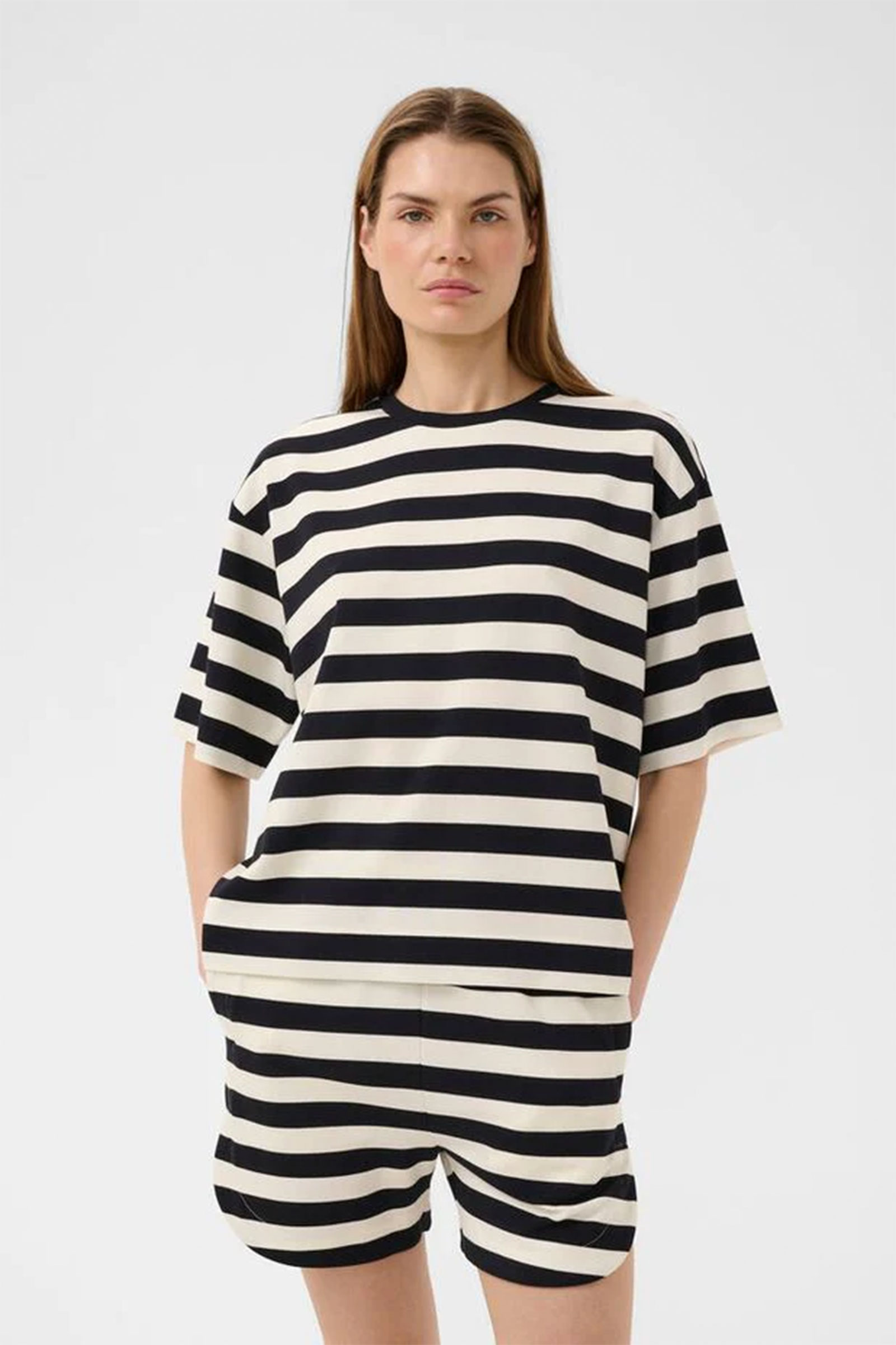 T-skjorte fra InWear i en myk og deilig kvalitet med oversized passform. Elora har rund hals og elastisk stoff – perfekt til en dag på kontoret eller på lunsj i byen! Klassiske striper gir et tidløst uttrykk som fungerer gjennom hele året og er perfekt å kombinere sammen med et par jeans.
