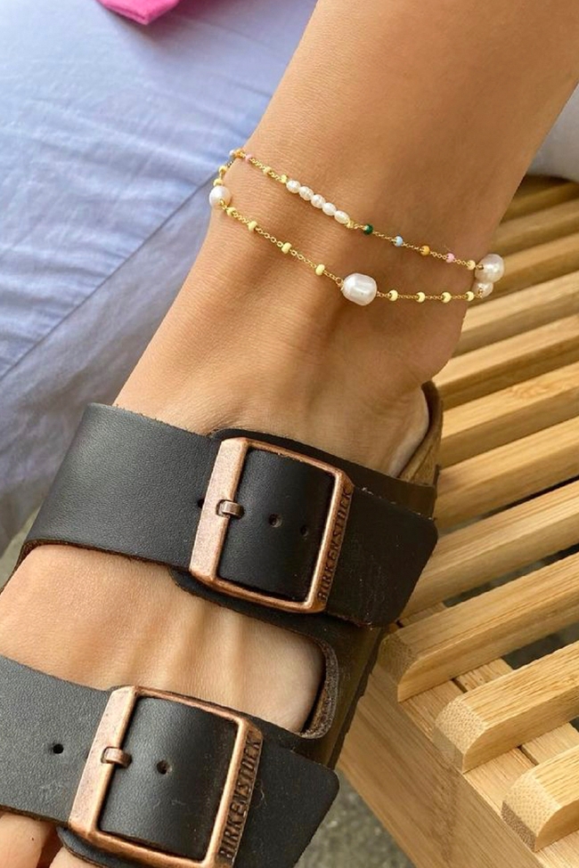 Et vakkert stykke smykke fra Enamel i 18k gullbelagt stearlingsølv – dekorert med merkets ikoniske emaljeperle. Bruk den for å forlenge dine armbånd fra Enamel slik at du oppnår et lekkert og anvendelig ankelkjede eller forleng kjedet ditt med noen ekstra cm! Et nydelig tilskudd til festantrekket.