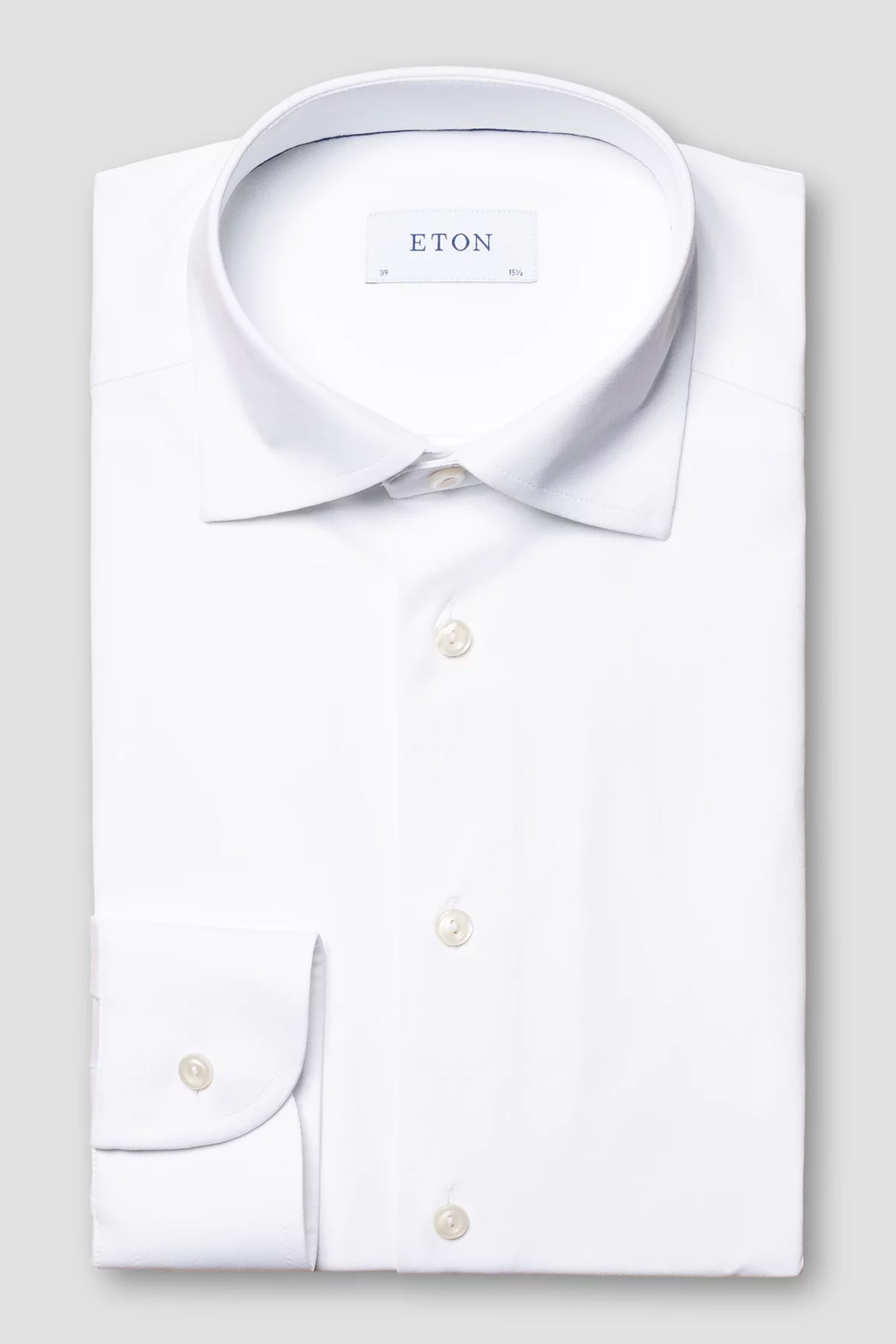 En klassisk skjorte fra Eton med ultimat komfort og fleksibilitet. Skjorten er laget i et mykt materiale av resirkulert polyamid med elastan. Laget i et rynkefritt materiale, fireveis stretch og absorberende stoff blir dette raskt en garderobefavoritt. En klassisk skjorte som gjør seg godt både til selskap og til jobb. Artnr: 100004274