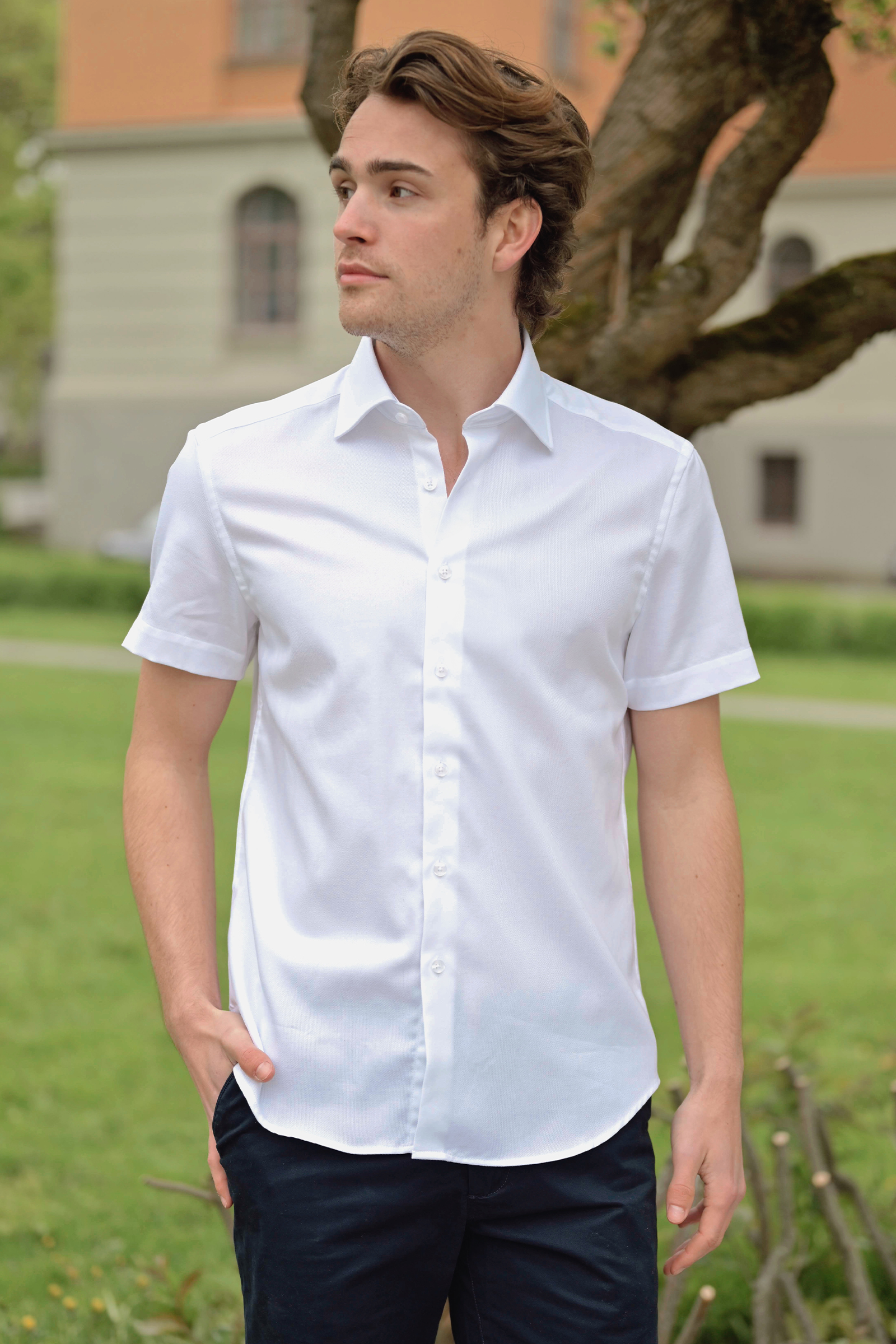 Klassisk pique fra Lacrosse! Fairborn er en kortermet skjorte med krage, rett passform og en knappestolpe ned til falden. Skjorten er laget i ren bomull som føles lett på og er god mot huden. Like fin til shorts som til chinos og er enkel å style både opp og ned.
