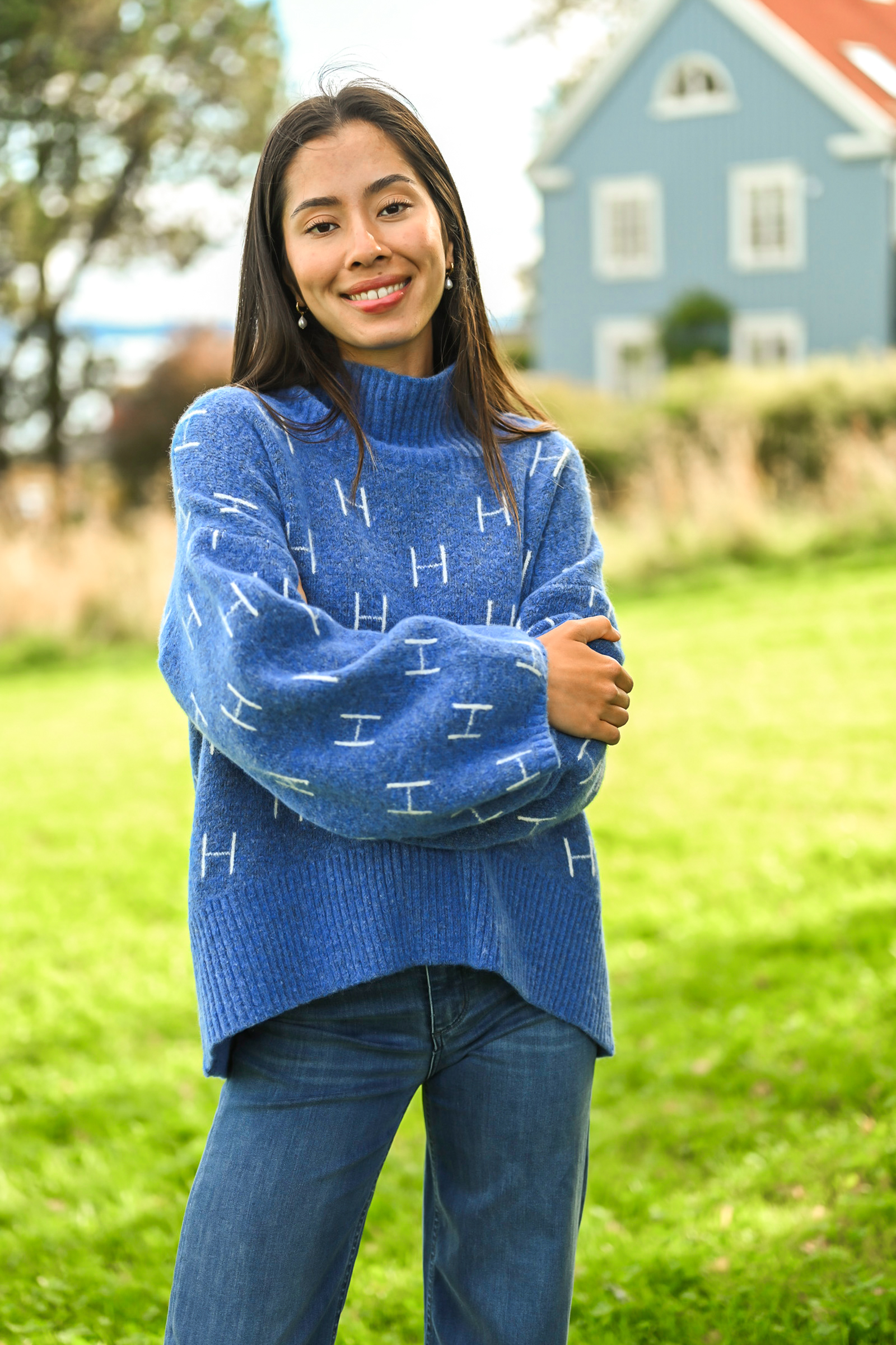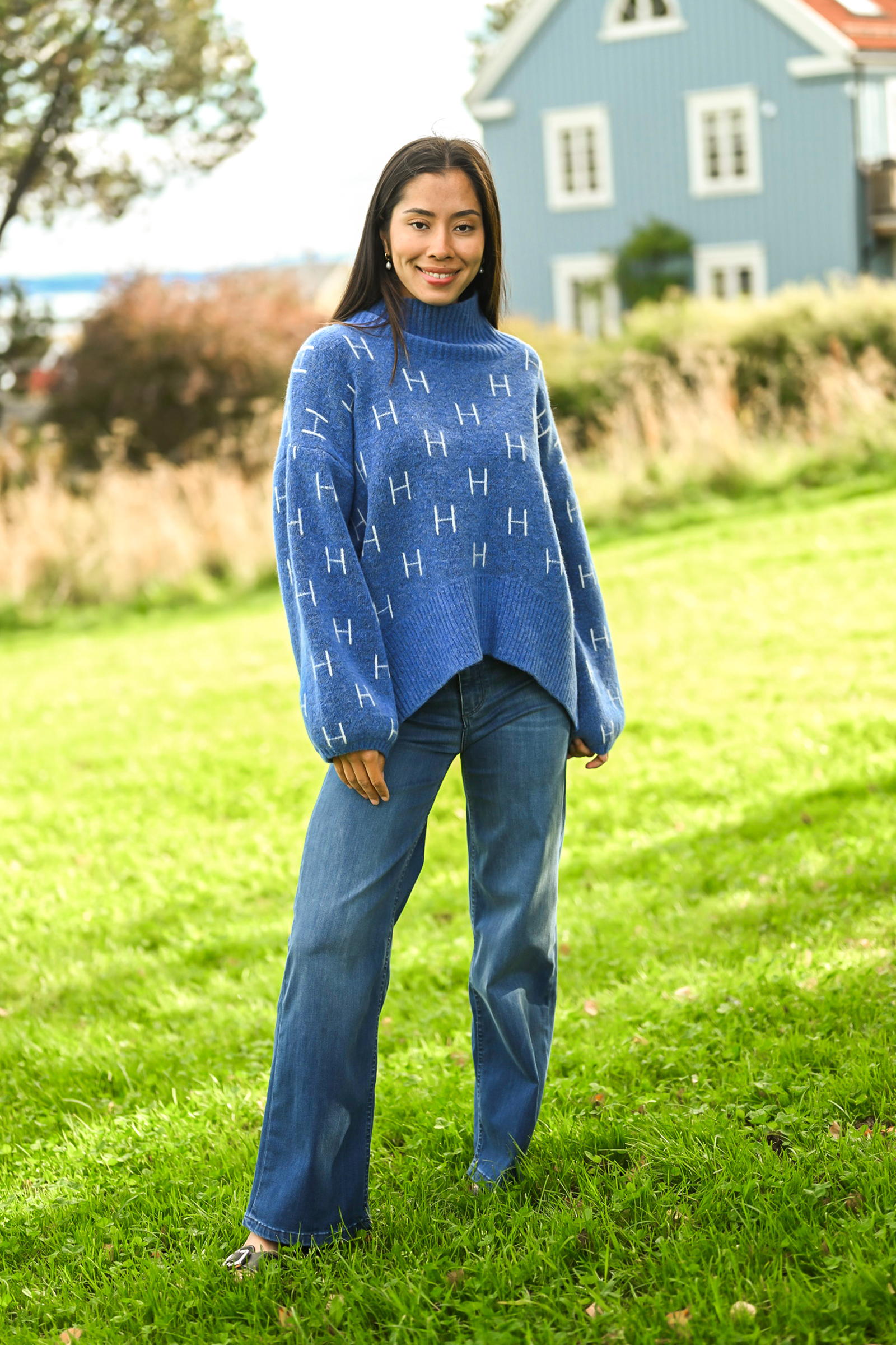 Fam Sweater Short fra Hést i Blå! Oppgrader strikkegarderoben med denne moderne og luksuriøse Fam Sweater Short i blå – som kombinerer tidløs design med en myk, varm følelse. Den avslappede, oversized passformen gir en uanstrengt og elegant silhuett, mens den høyere halsen og vide ermene gir komfort og stil i ett. Den blå tonen tilfører et friskt og allsidig uttrykk som enkelt kan styles til alt fra denim og chinos til elegante skjørt. Den kortere lengden gjør den perfekt for både hverdagsbruk og mer oppkledde looks, og kvaliteten i mohair‑ og merinoullblandingen gir en luksuriøs mykhet som gjør dette til en genser du vil bruke sesong etter sesong.