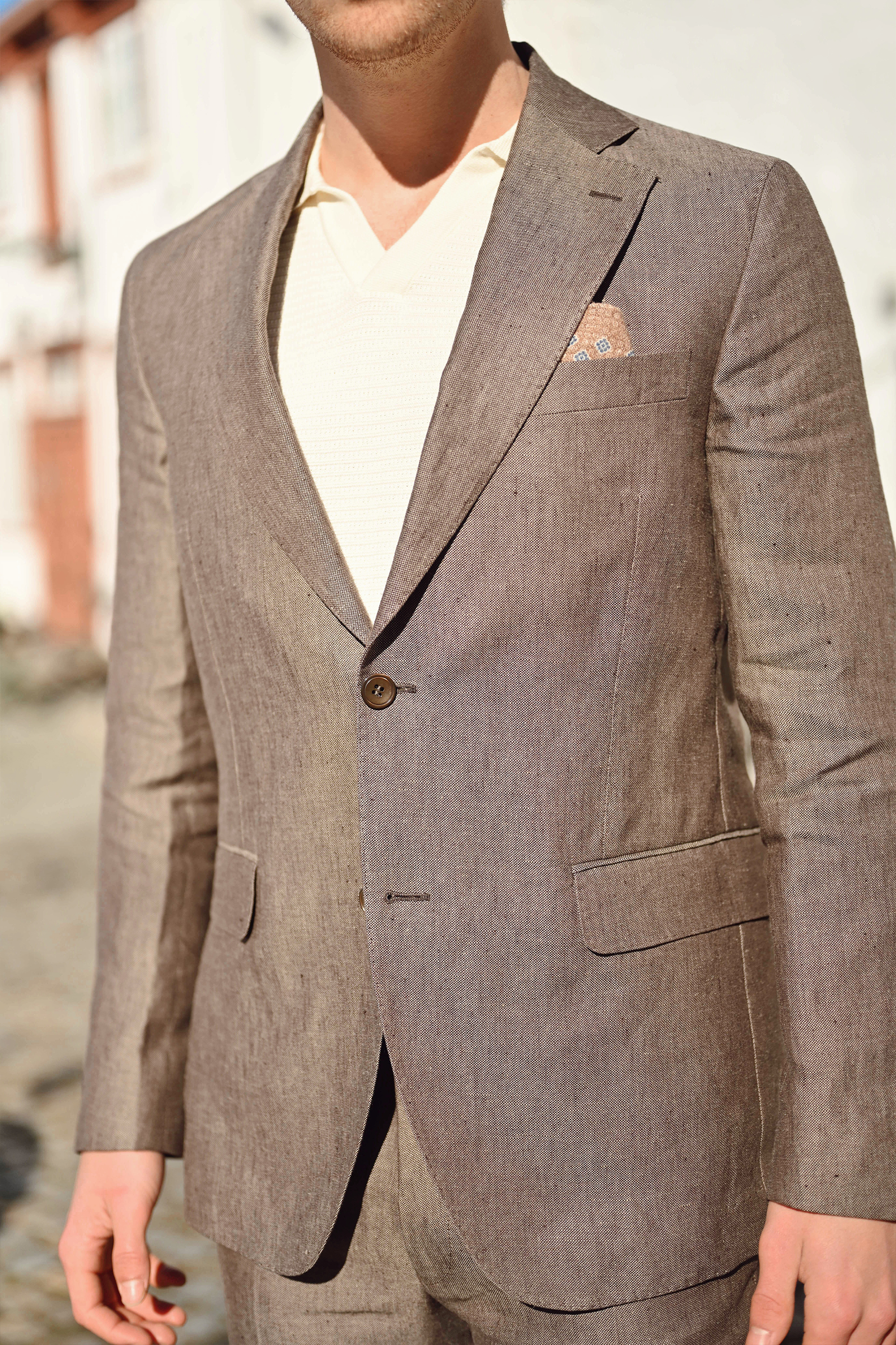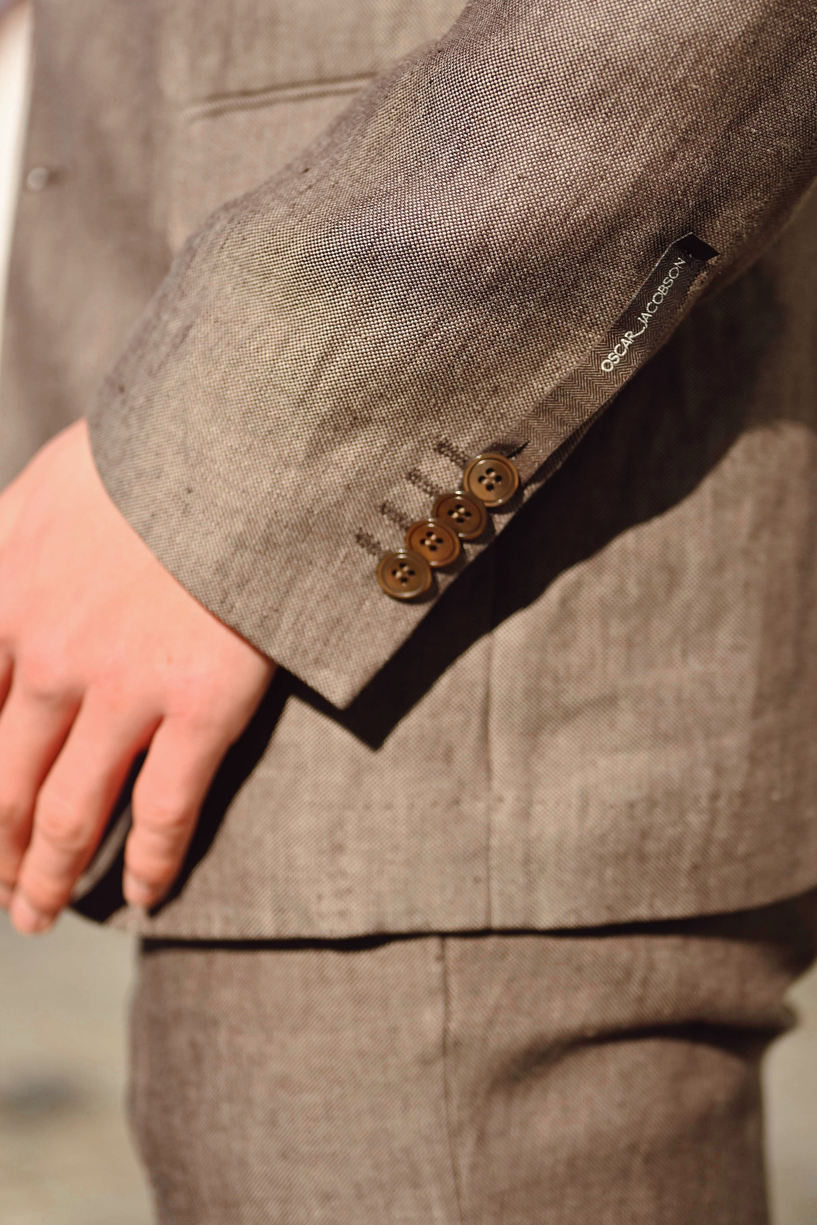 En delikat linblazer fra Oscar Jacobson i brun. Ferry har en slim og klassisk passform, knapper i front og brystlommer. Denne blazeren kommer i en svalende og luksuriøs linkvalitet – som gjør den perfekt for sommersesongen. Kombiner blazeren med en poloskjorte og tilhørende dressbukse for en fullført sommerlook.