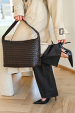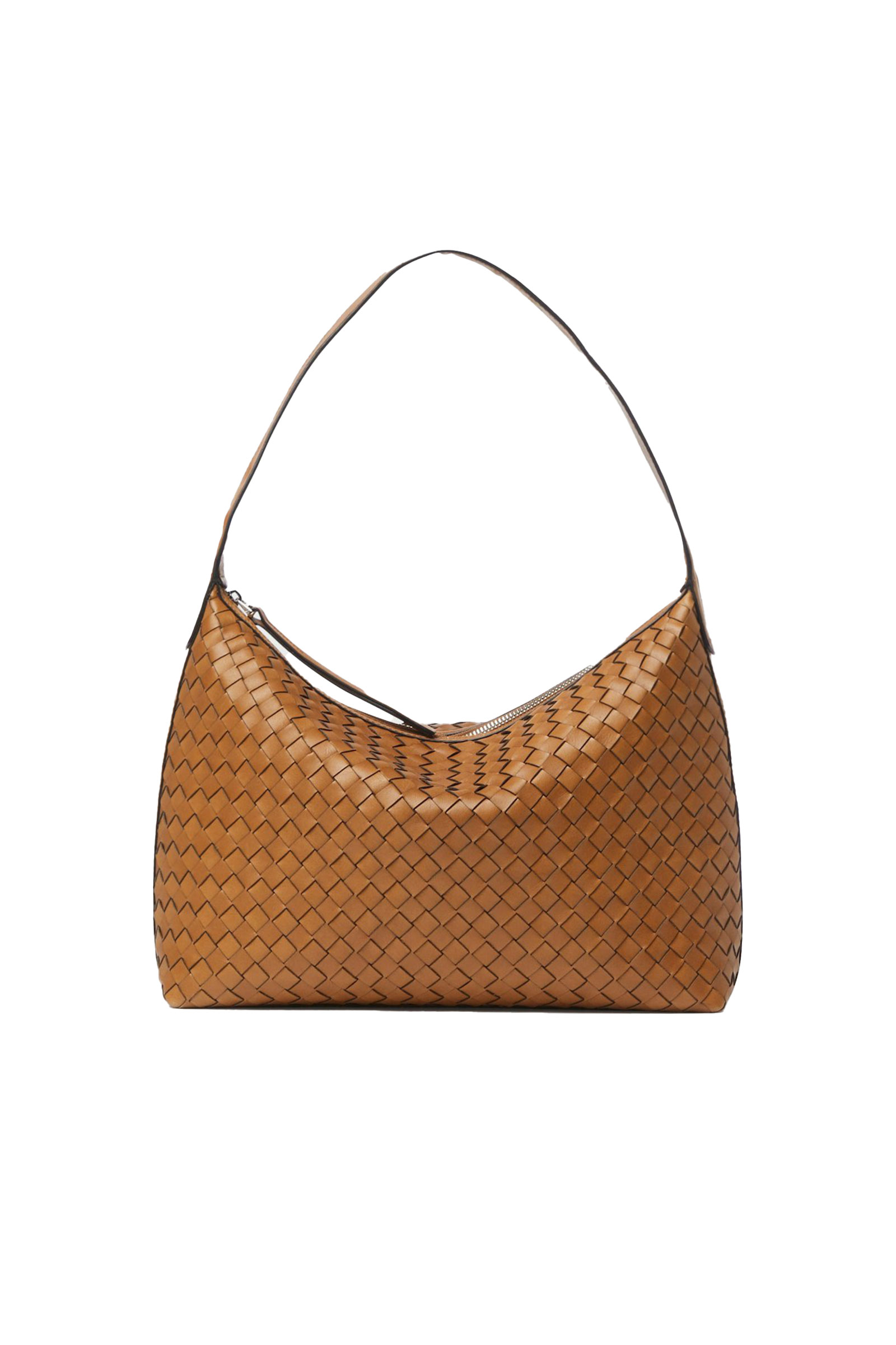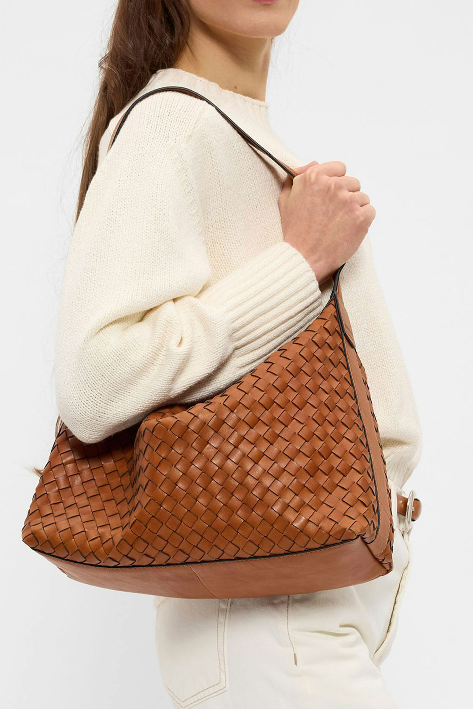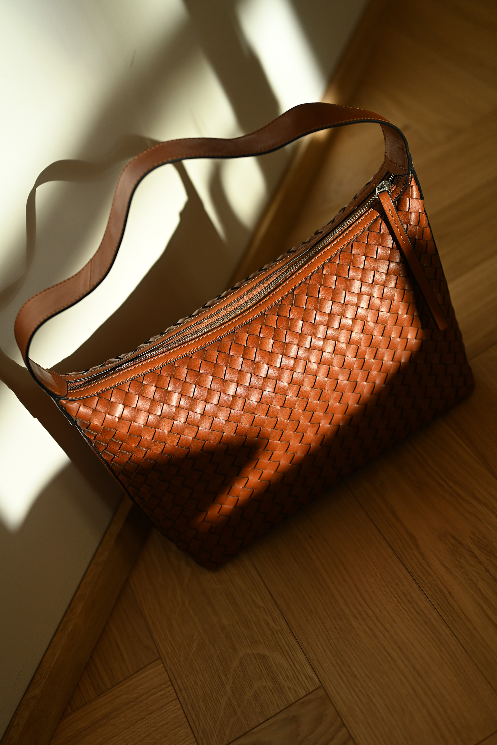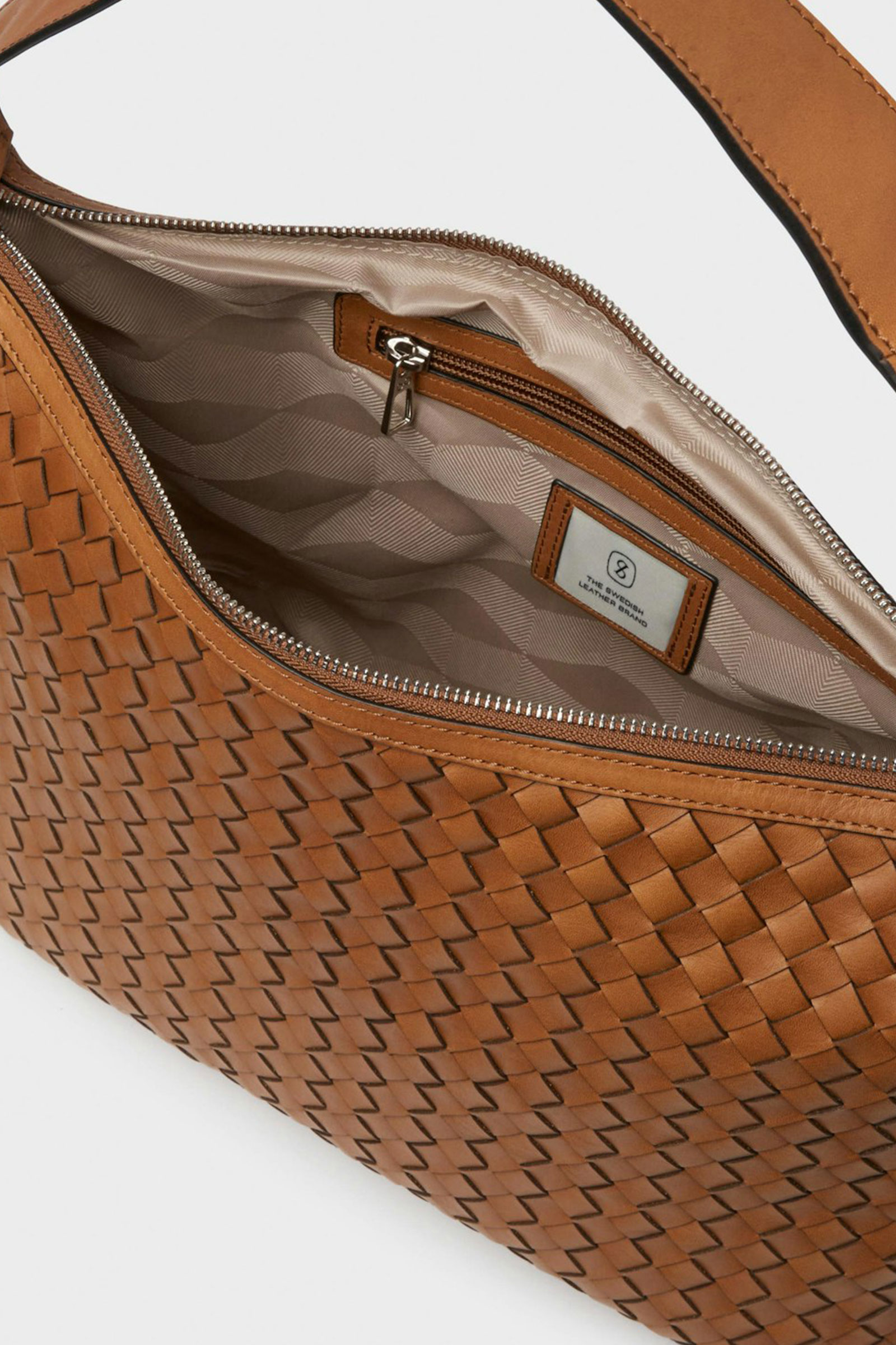 Nyhet fra Saddler! Glan skulderremveske er en romslig håndveske som nå kommer i en delikat lys brun farge. Vesken er laget i vakkert flettet lær med en lett, elegant glans som gir et eksklusivt uttrykk. Den har et stort hovedrom med glidelås, samt en praktisk slip-in-lomme og en egen glidelåslomme på innsiden. Her får du enkelt plass til dine viktigste eiendeler – og litt til! Perfekt til hverdagsantrekket, men passer like fint til mer pyntede anledninger.