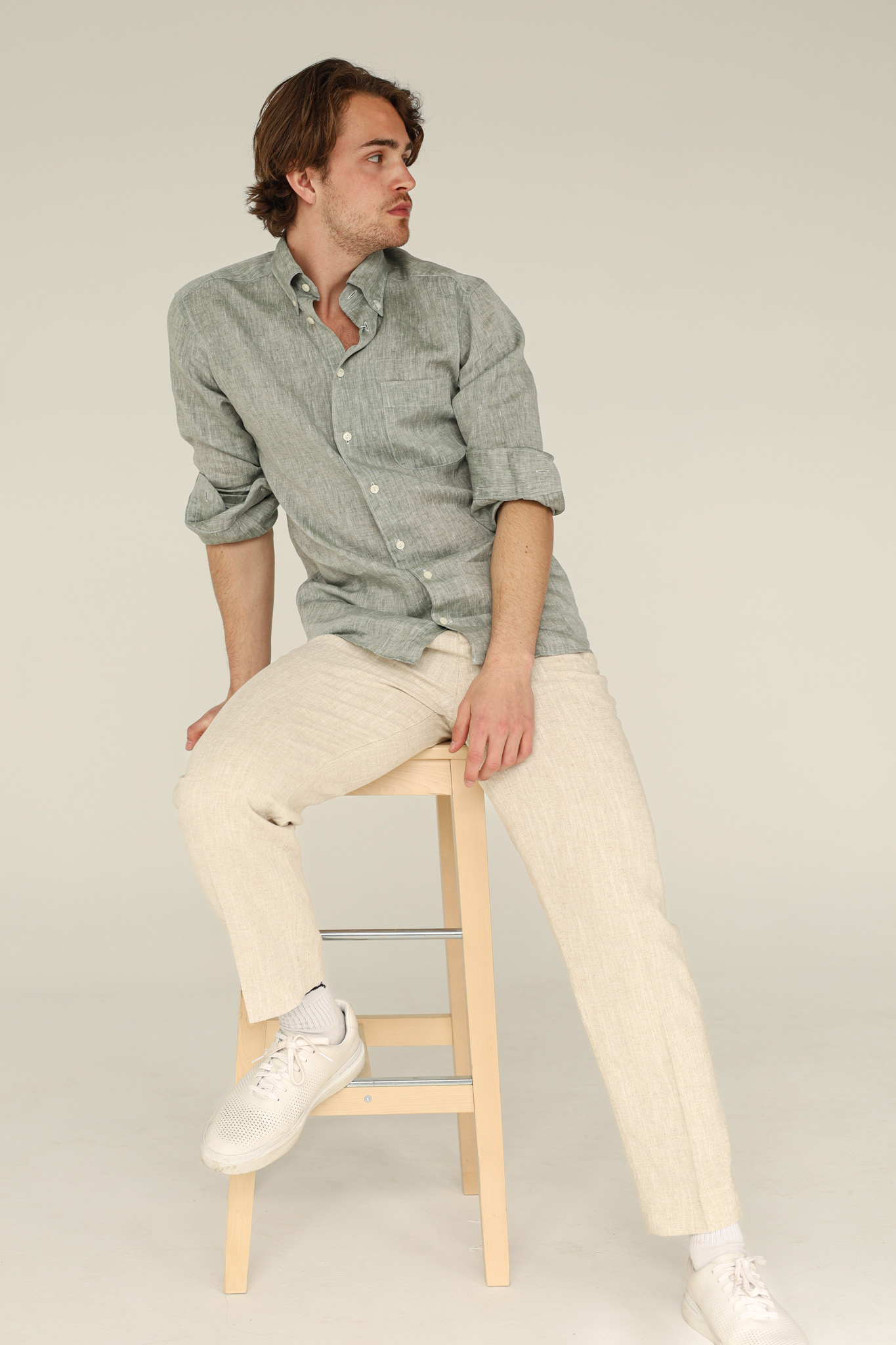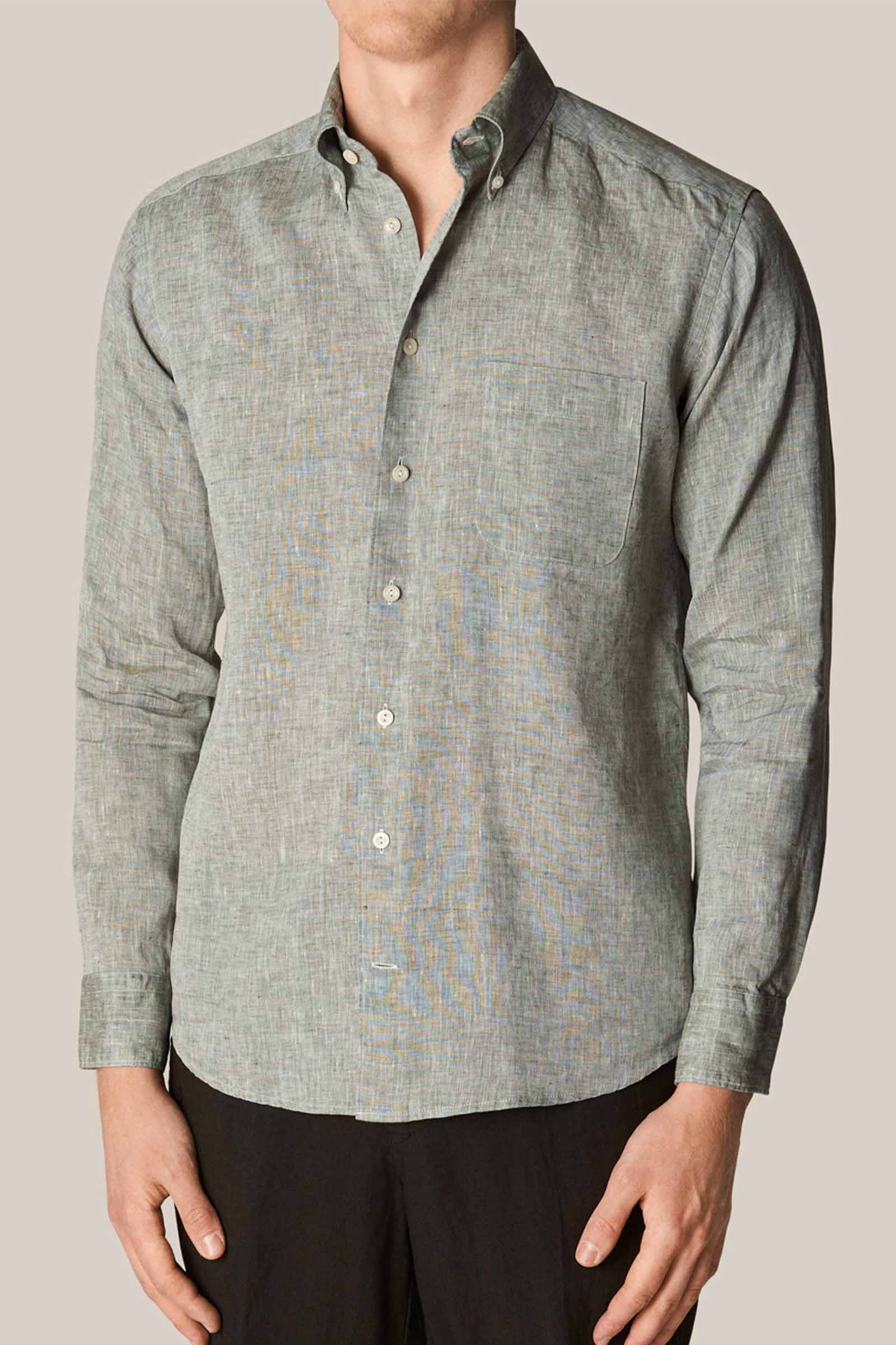 En nydelig skjorte i ren lin fra Eton. Denne skjorten kommer i en slim passform, knappestolpe med lyse knapper og en fantastisk linkvalitet. Linen Shirt er den perfekte sommerskjorten – svært luftig! Den lyse grønnfargen setter og sitt sommerlige preg over denne skjorten. Kombiner deg gjerne med et par lyse chinos for en helhetlig look – men fungerer også like godt til et par dressbukser, eller et par jeans for en mer avslappet look. Style: 100004200