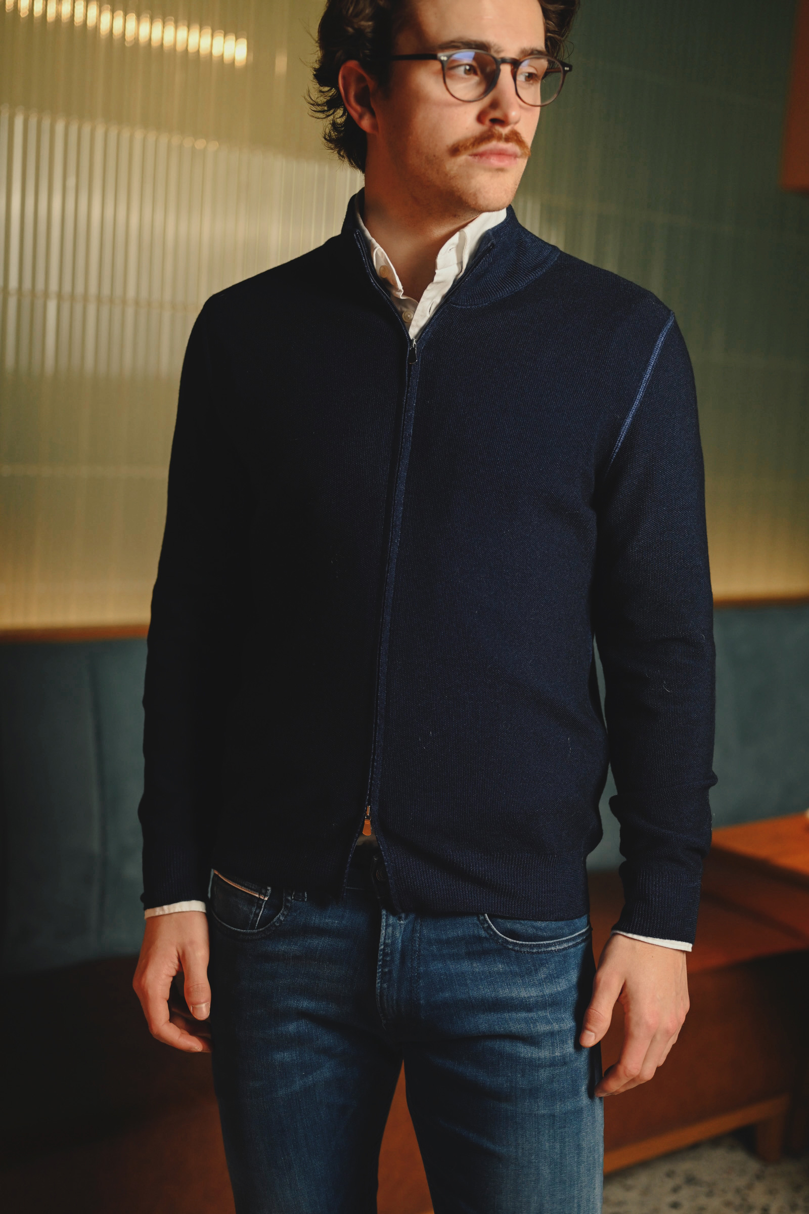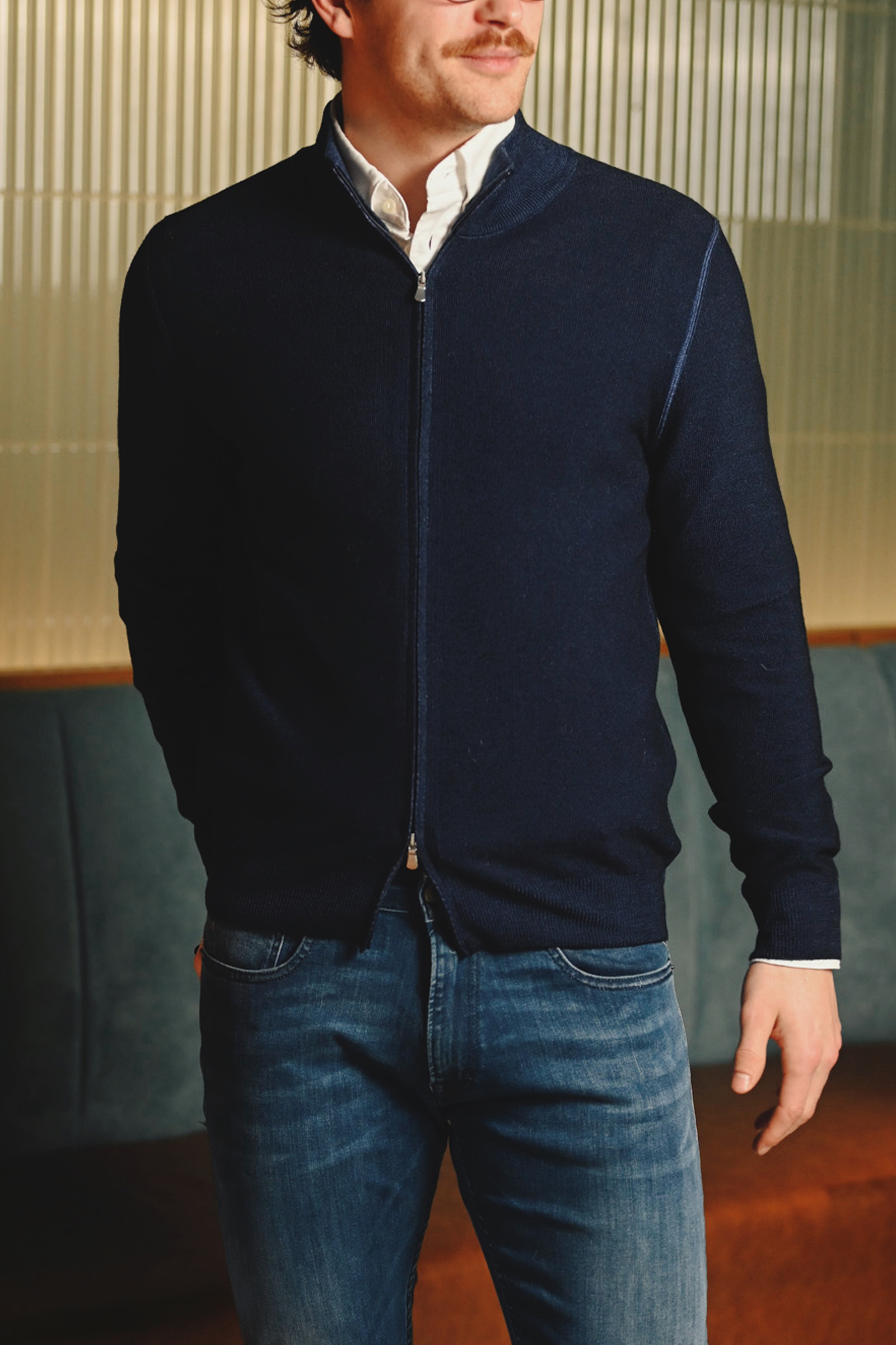 Hel Zip Cardigan, Mørk Blå