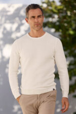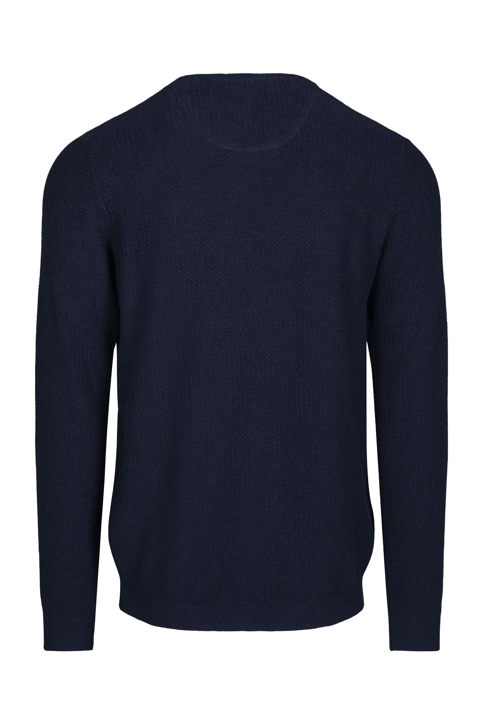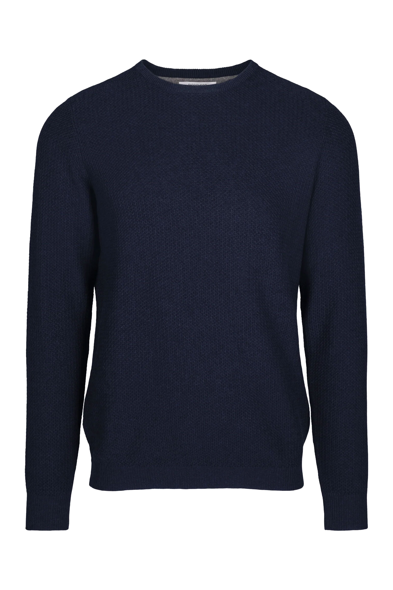 Klassisk og elegant strikk fra Riccovero! Henry kommer i en tidløs mørk blå farge med et delikat og strukturert stoff. Den perfekte strikken til hverdags med sitt klassiske og elegante uttrykk og sin rette passform – enkel å style og et supert valg for enhver anledning. Kombiner gjerne med din favoritt-jeans eller en chinos for et komplett antrekk til en dag på kontoret eller i byen!