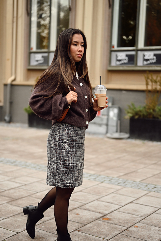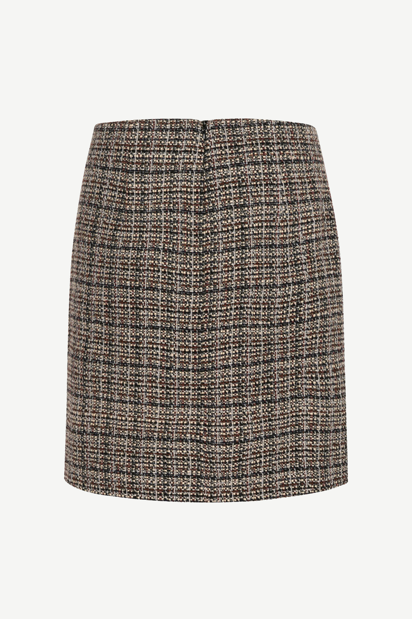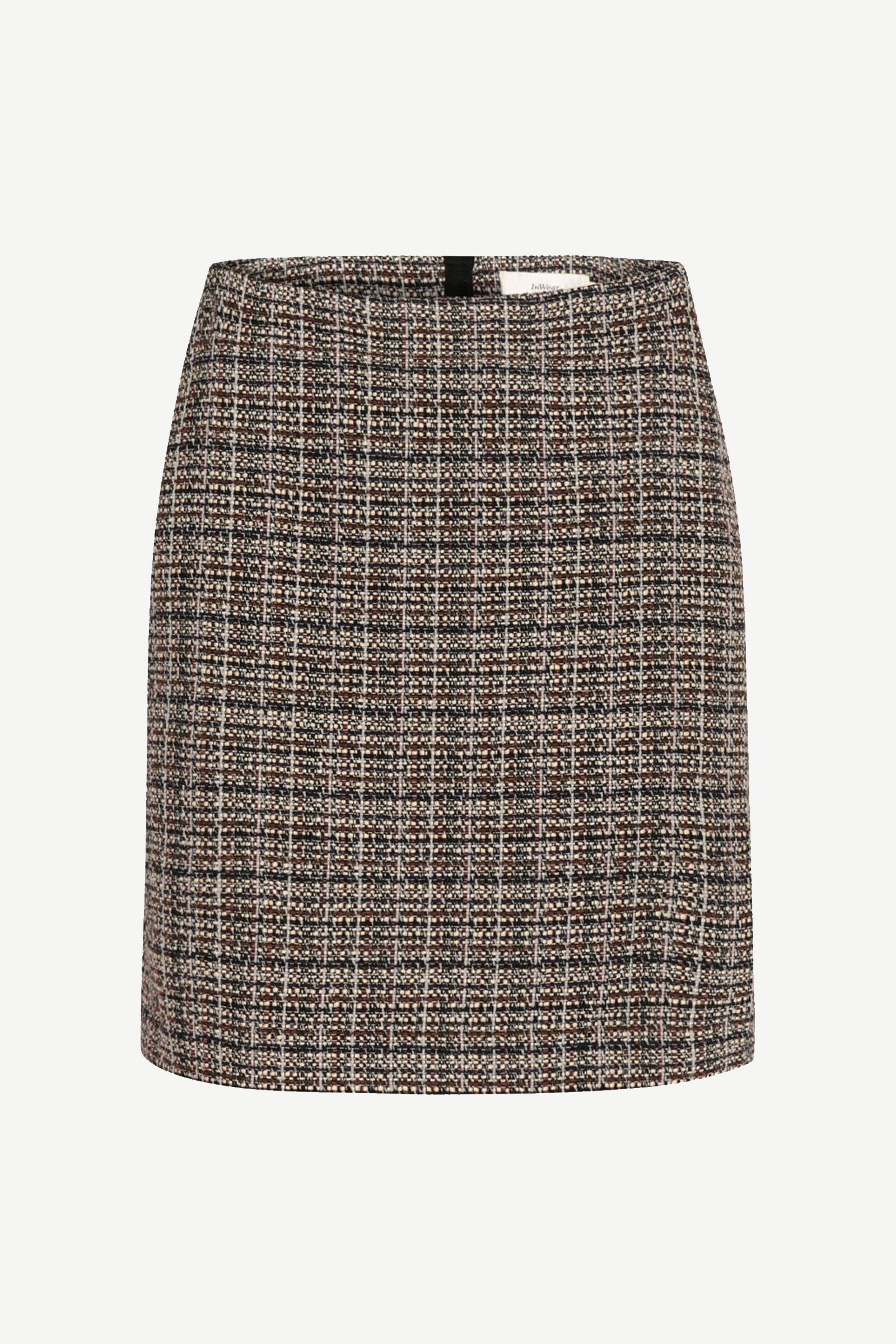 Yara skirt fra Inwear! Dette elegante skjørtet har en klassisk, strukturert vev i et sofistikert rutemønster med innslag av jordfarger. Skjørtet har en rett og tidløs silhuett som gir et moderne, men samtidig profesjonelt uttrykk. Stoffet er detaljert og teksturert, noe som gir plagget dybde og karakter. Perfekt for en stilig dag på kontoret eller en mer formell anledning, kan skjørtet kombineres med enkle topper eller bluser for å skape et raffinert og polert antrekk, eller fullfør looken med Yara jacket, for et komplett sett.