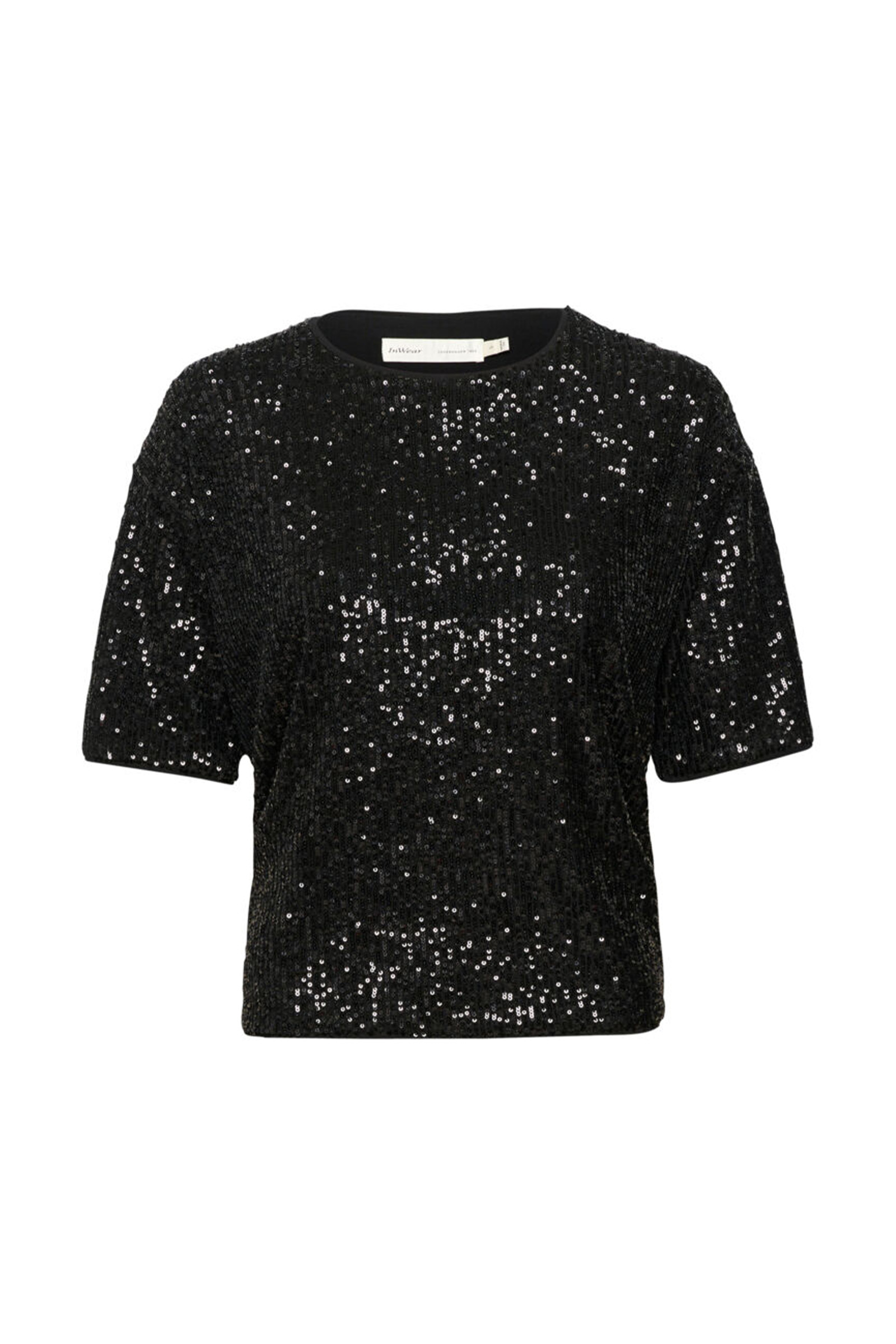 Sesongens råeste sett fra InWear, dekket i små paljetter. Jarjar T-Shirt har en klassisk og vid fasong med rund hals. Bruk den med buksen i samme serie for å få et komplett sett som skiller seg ut på fest.