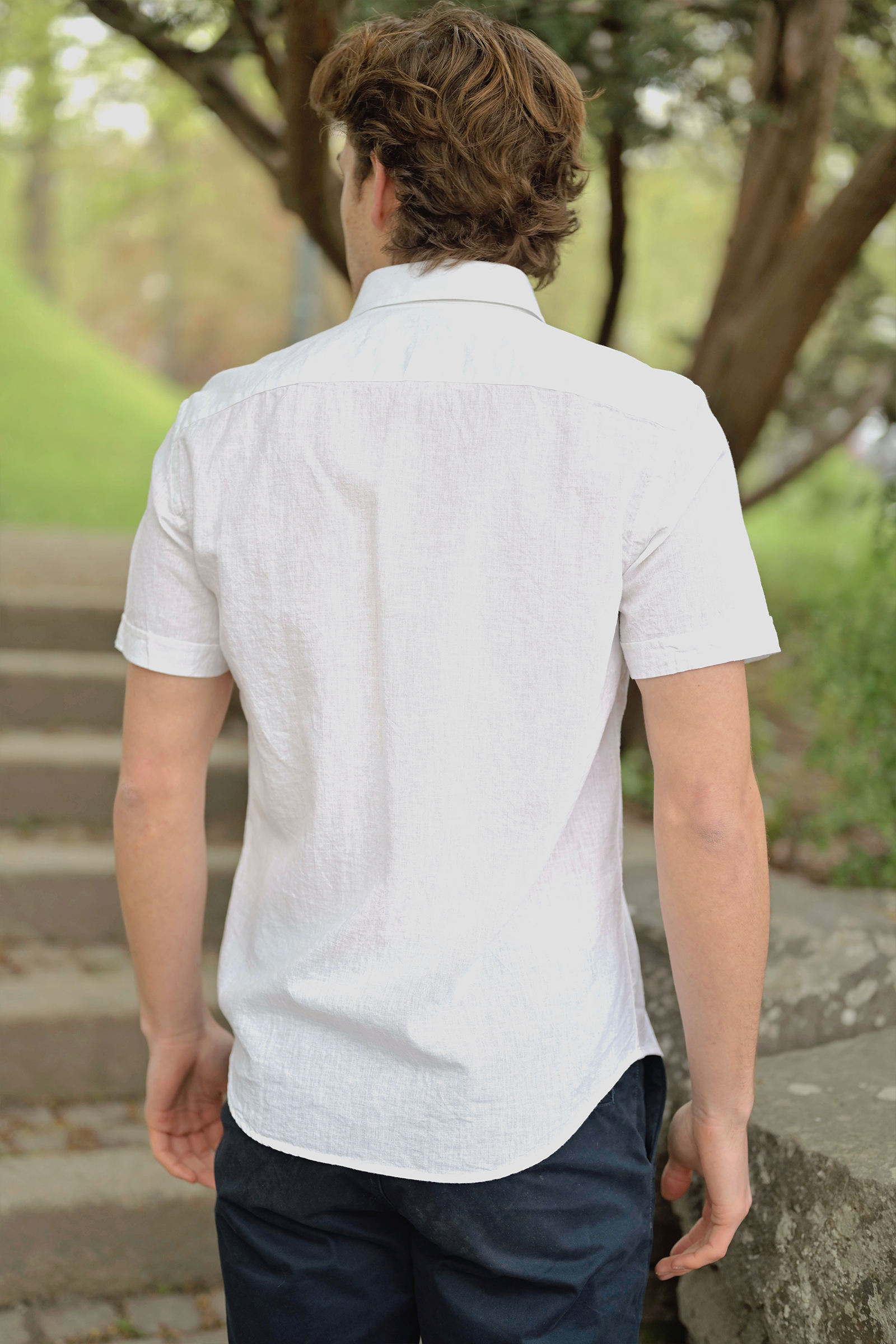 Tidløs og sommerlig linskjorte i hvit fra Lacrosse! Jitloff Linen Shirt har en rett passform, korte ermer, knappestolpe hele veien i front og klassisk skjortekrage. Dette er den perfekte skjorten til sommeren, og er like fin lukket som åpen med en t-skjorte under. Kombiner med shorts, jeans eller et par dressbukser.