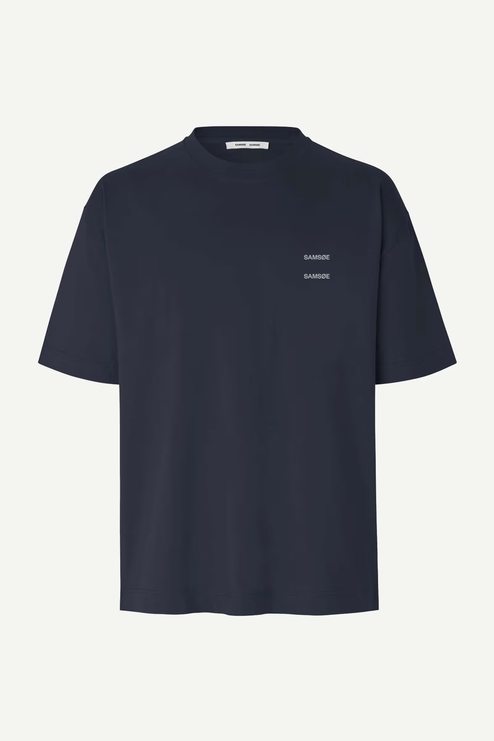 Oversized t-shirt fra Samsøe Samsøe i klassisk mørk blå! Joel T-Shirt kommer med rund hals, logo i front og i en avslappet passform. T-skjorten er perfekt til dine hverdagslige antrekk, og kan kombineres med de fleste underdeler. En stilig t-skjorte er et must-have i enhver garderobe. Kombiner denne med dine jeans eller chinos for en fullført look.