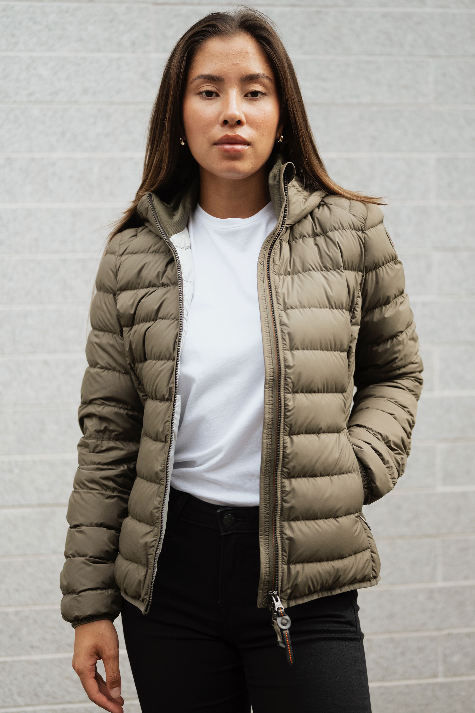 Favorittjakken Juliet fra Parajumpers i grønn! Denne lette dunjakken er i en slim fit passform og er laget i et meshmateriale som holder dunen på plass og gjør den deilig og komfortabel på. Jakken lukkes med toveis glidelås, har to funksjonelle lommer i front og en praktisk hette med snøring. Dobbelkragen i halsen gjør at jakken holder godt på varmen samtidig som ventialasjonshullene under ermene unngår klamhet og sørger for maksimal komfort. Jakken har et sporty preg og er like fin å bruke på spasertur i byen som i marka – en deilig overgangsjakke som er klassisk og stilren!