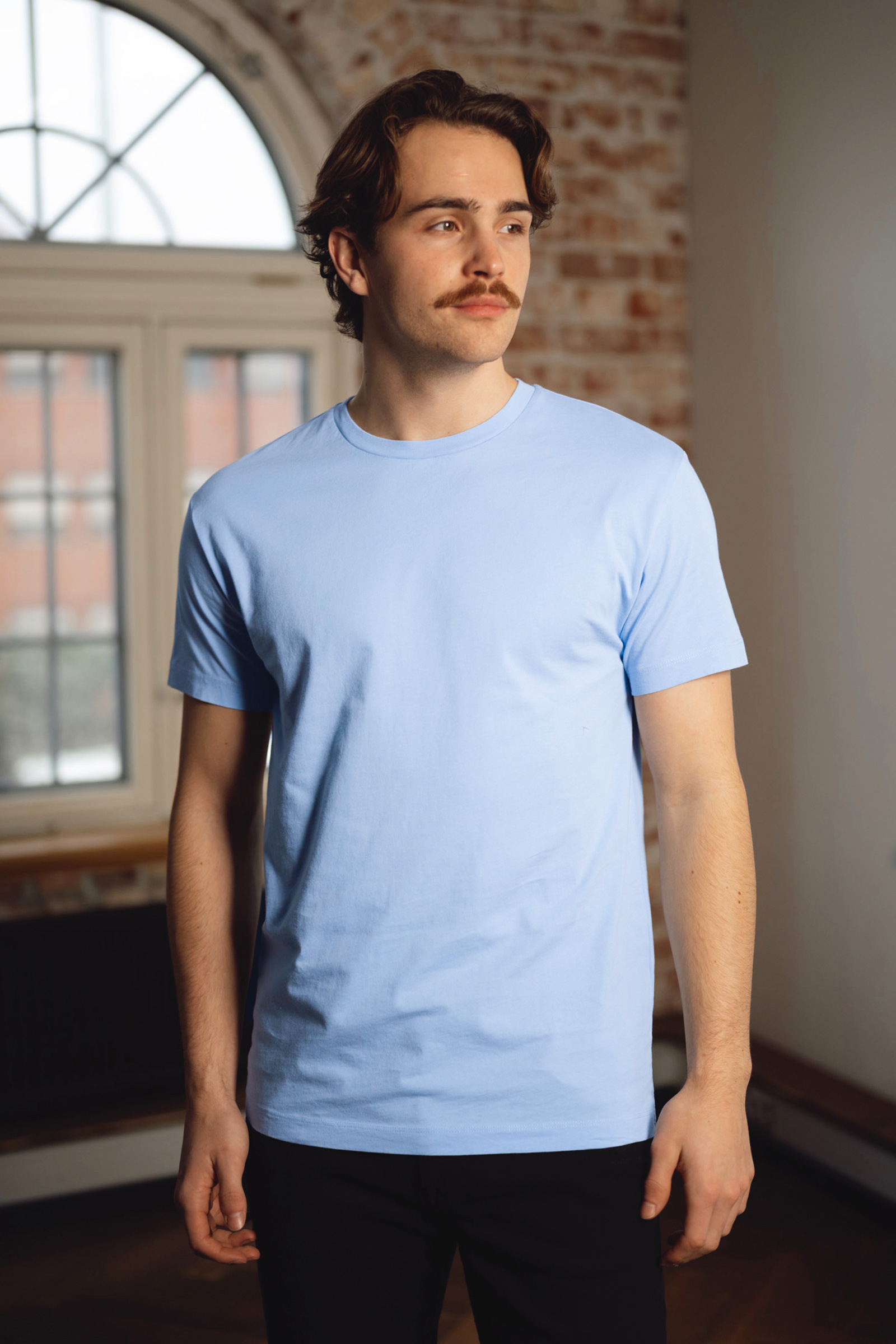 Tidløs t-skjorte fra Samsøe Samsøe i lys blå. Kronos har en klassisk rund hals, korte ermer og en rett passform for en stilren utforming. En super base å ha i klesskapet i ren og myk bomull.