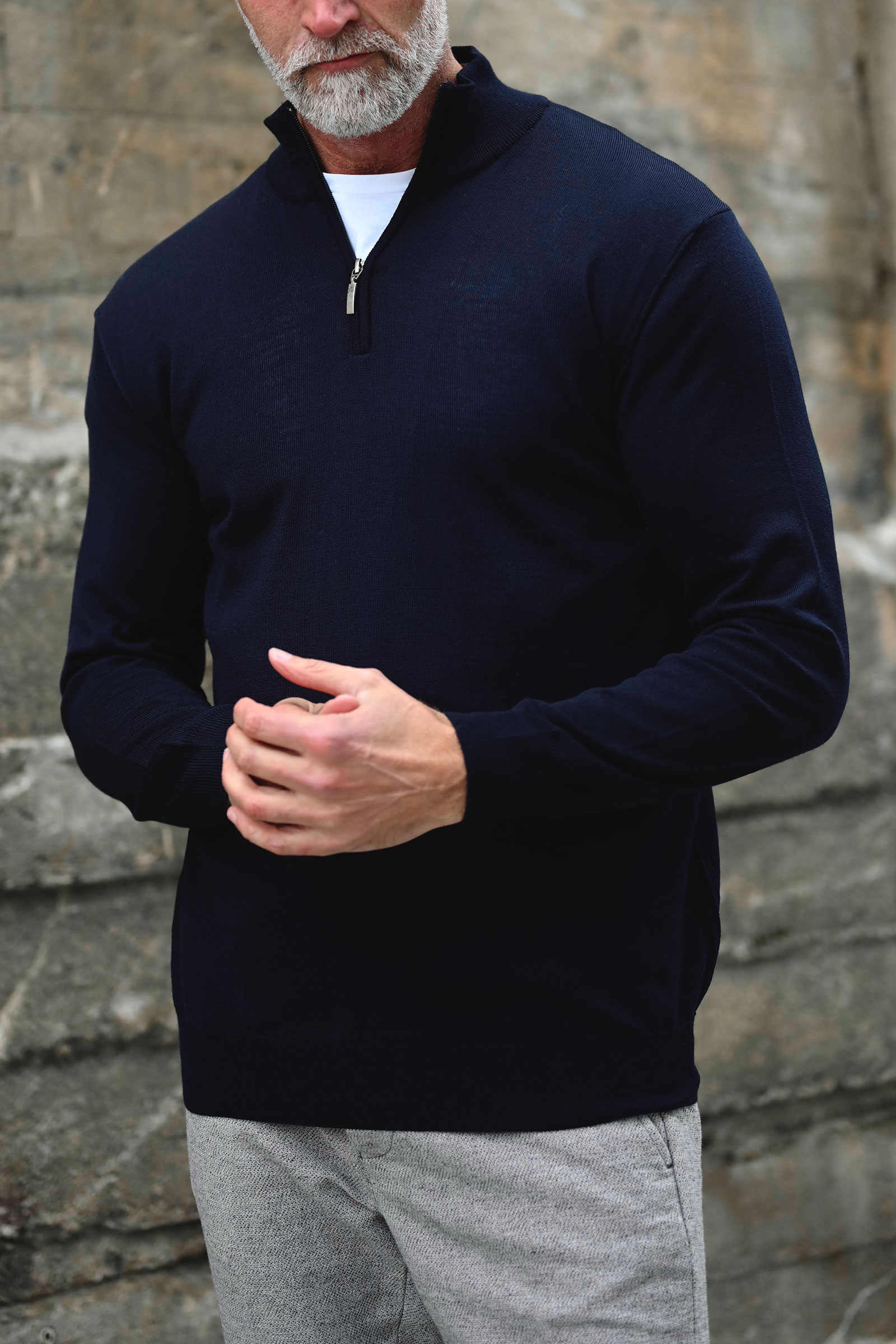 Bernie Merino 1/2 Zip, Mørk blå