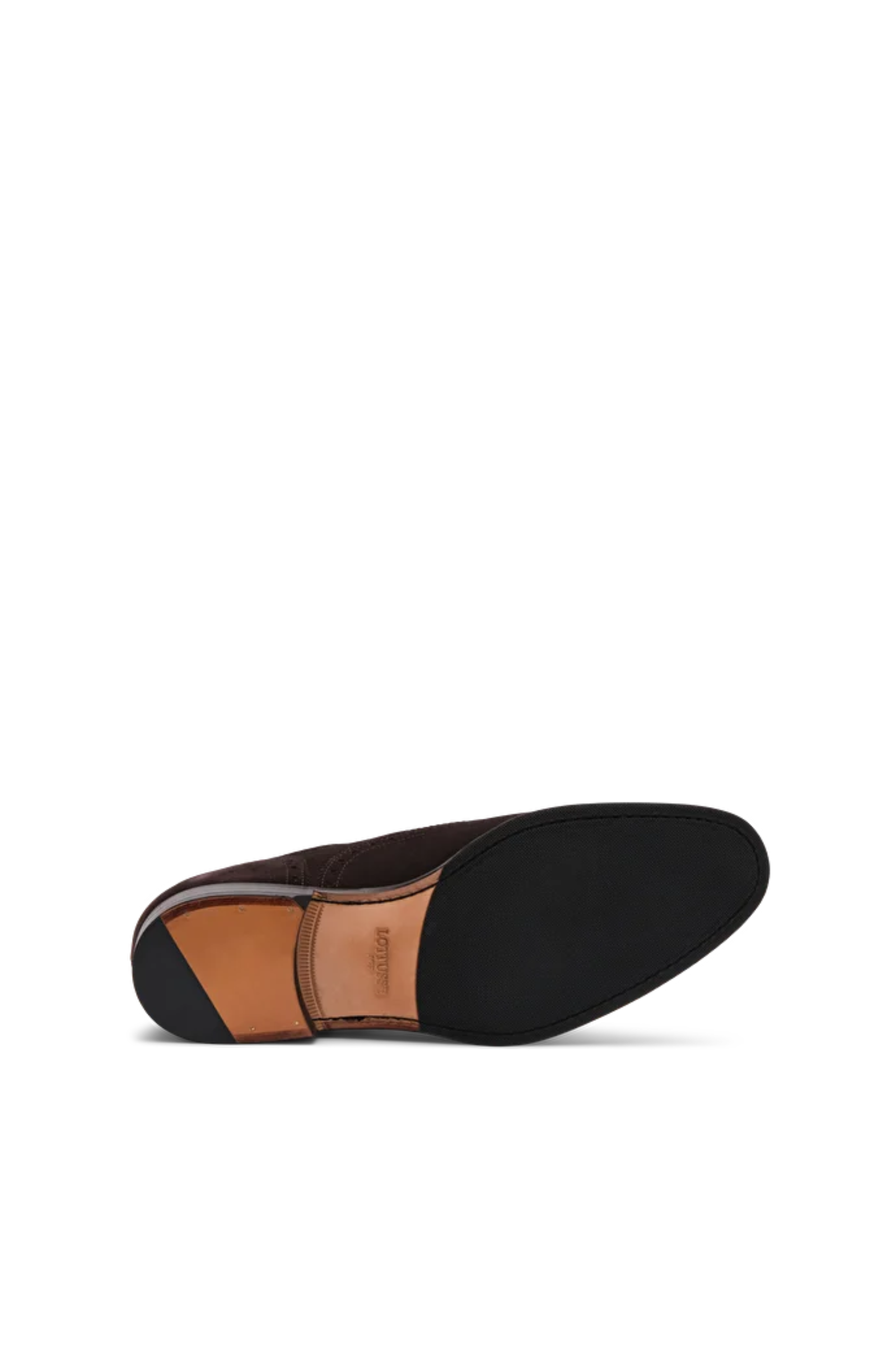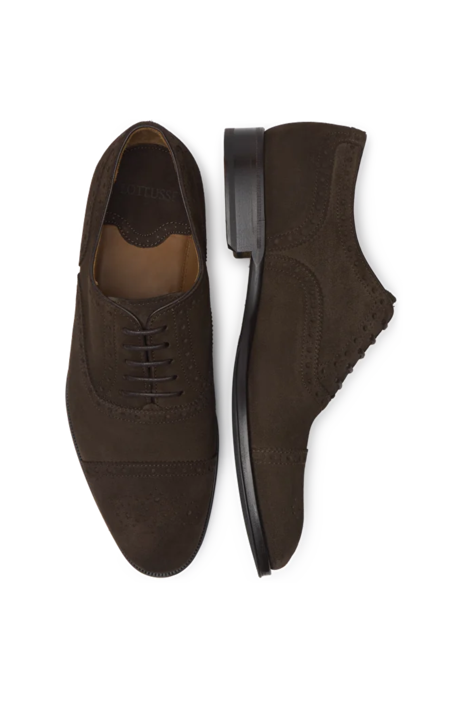 Disse brogue-skoene fra Lottusse kombinerer eleganse og håndverk i toppklasse. Laget av semsket skinn i en mørk brun nyanse, er de perfekte for både formelle og uformelle anledninger. Skoene har klassisk brogue-detaljering og lukket snøring som gir et raffinert preg. Den kombinerte lær- og gummisålen gir et godt grep og langvarig komfort.