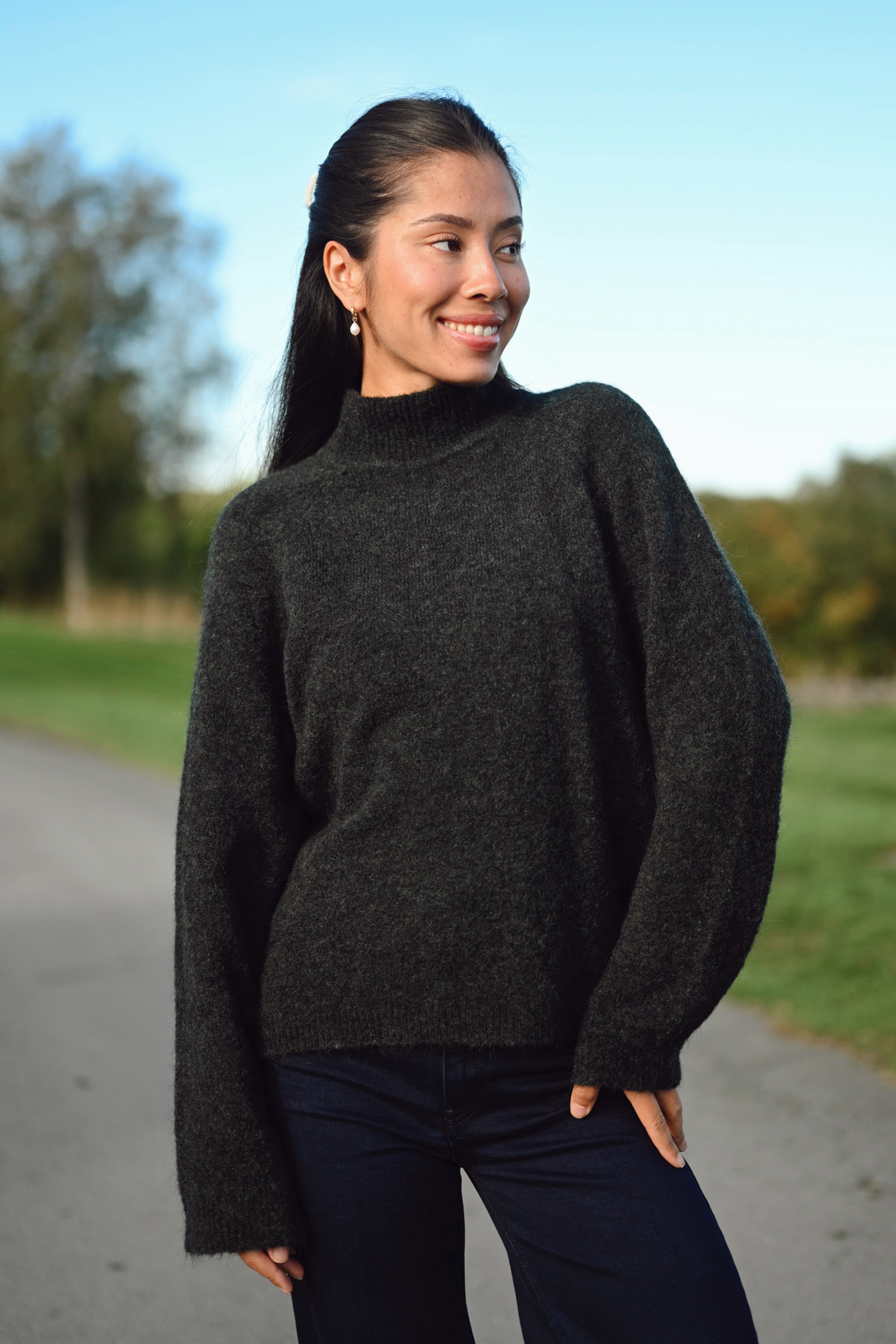 Deilig strikk fra Johnnylove i mørk grønn. Liza er en myk strikkegenser med en høyre hals, lange ermer og avslappet passform. Genseren er laget av et mykt og behagelig stoff i en dyp grønnfarge som gir den et tidløst og stilig utseende. Med sin høye hals får du ekstra varme, og de lange ermene har en avslappet passform som gir en komfortabel følelse. Liza er perfekt til kjølige dager og kan enkelt styles med jeans eller skjørt for en avslappet og moderne look.