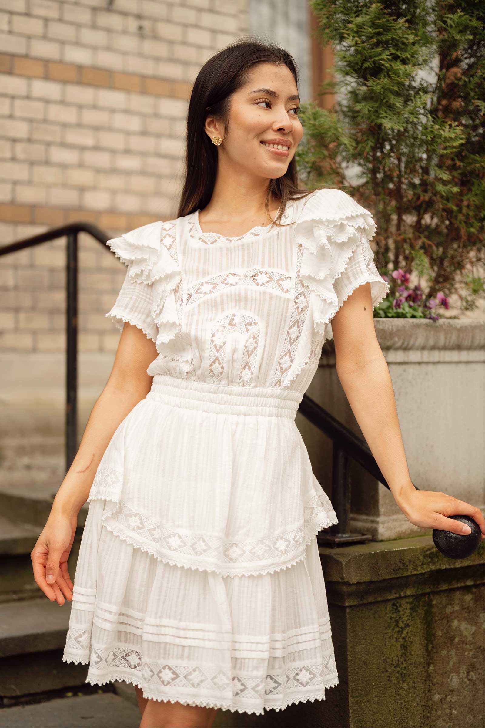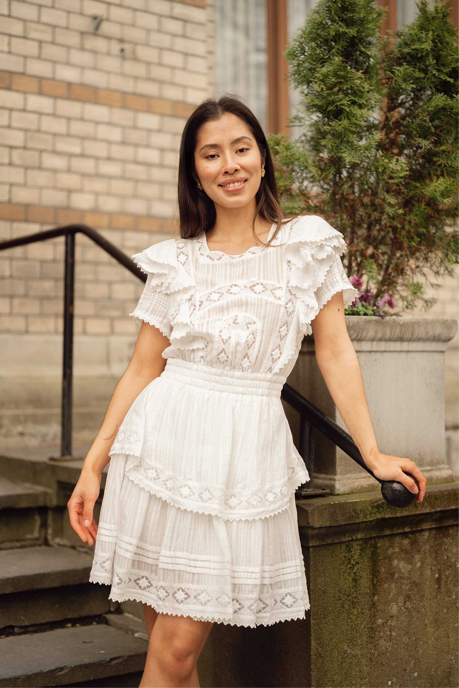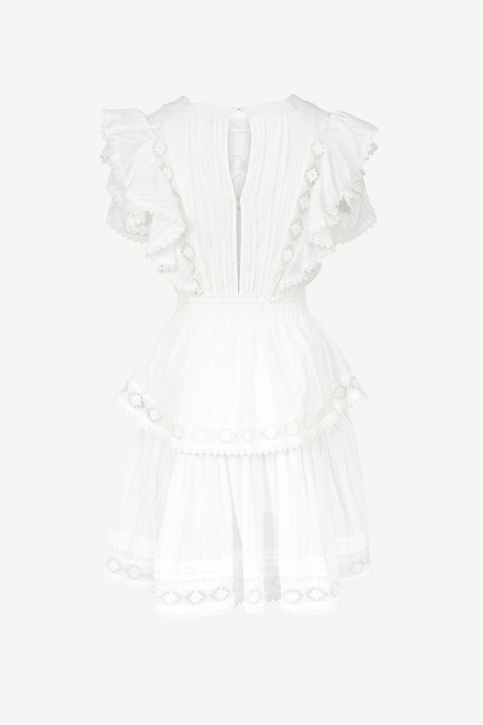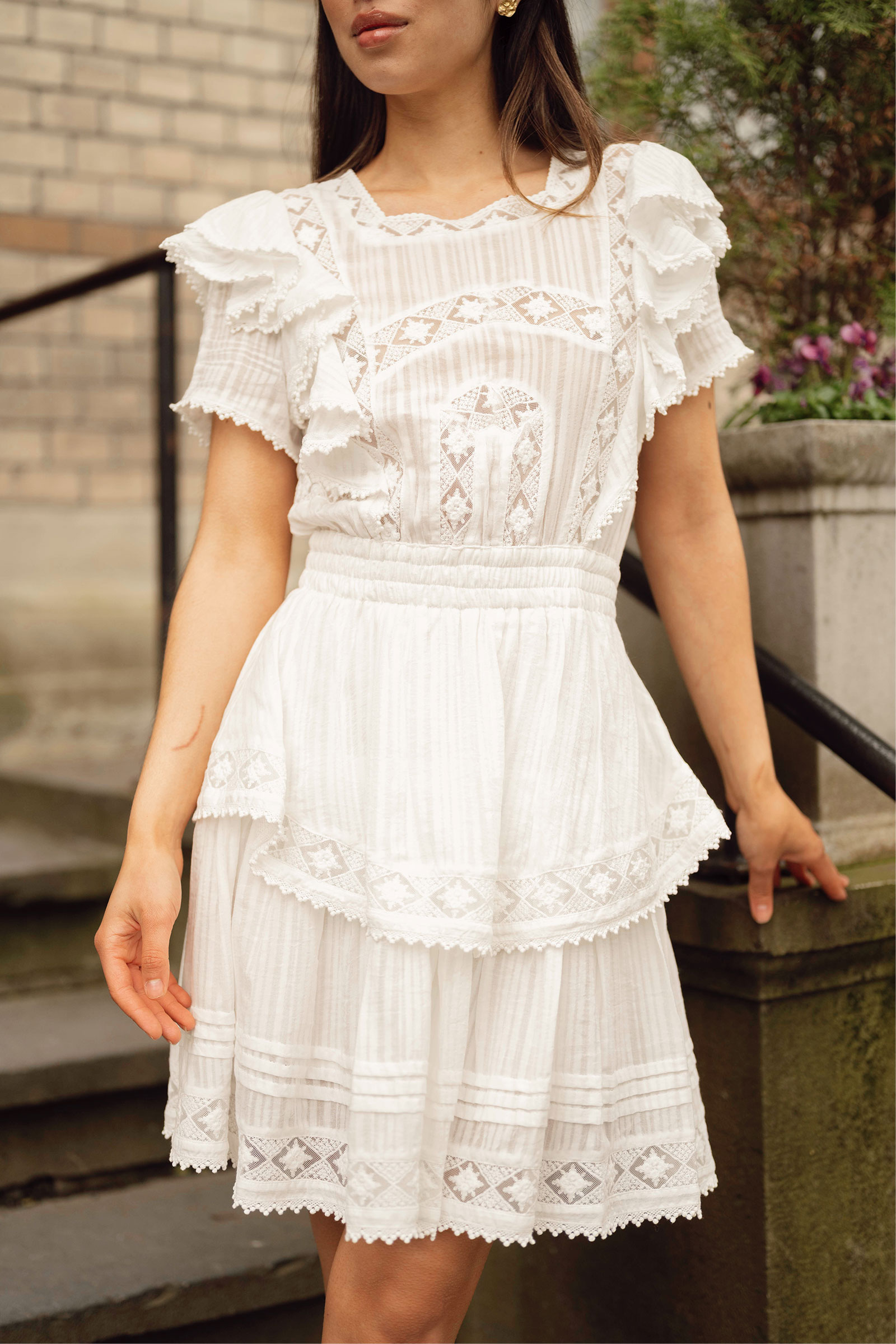 Romantisk sommerkjole fra Love Lolina! Alexa Dress har dekorative detaljer som volanger på skjørtet og ermene, feminine blondedetaljer, og elastisk midje. En kort sommerkjole som passer perfekt til varme dager – kombiner med sandaler til hverdag eller hæler til fest!