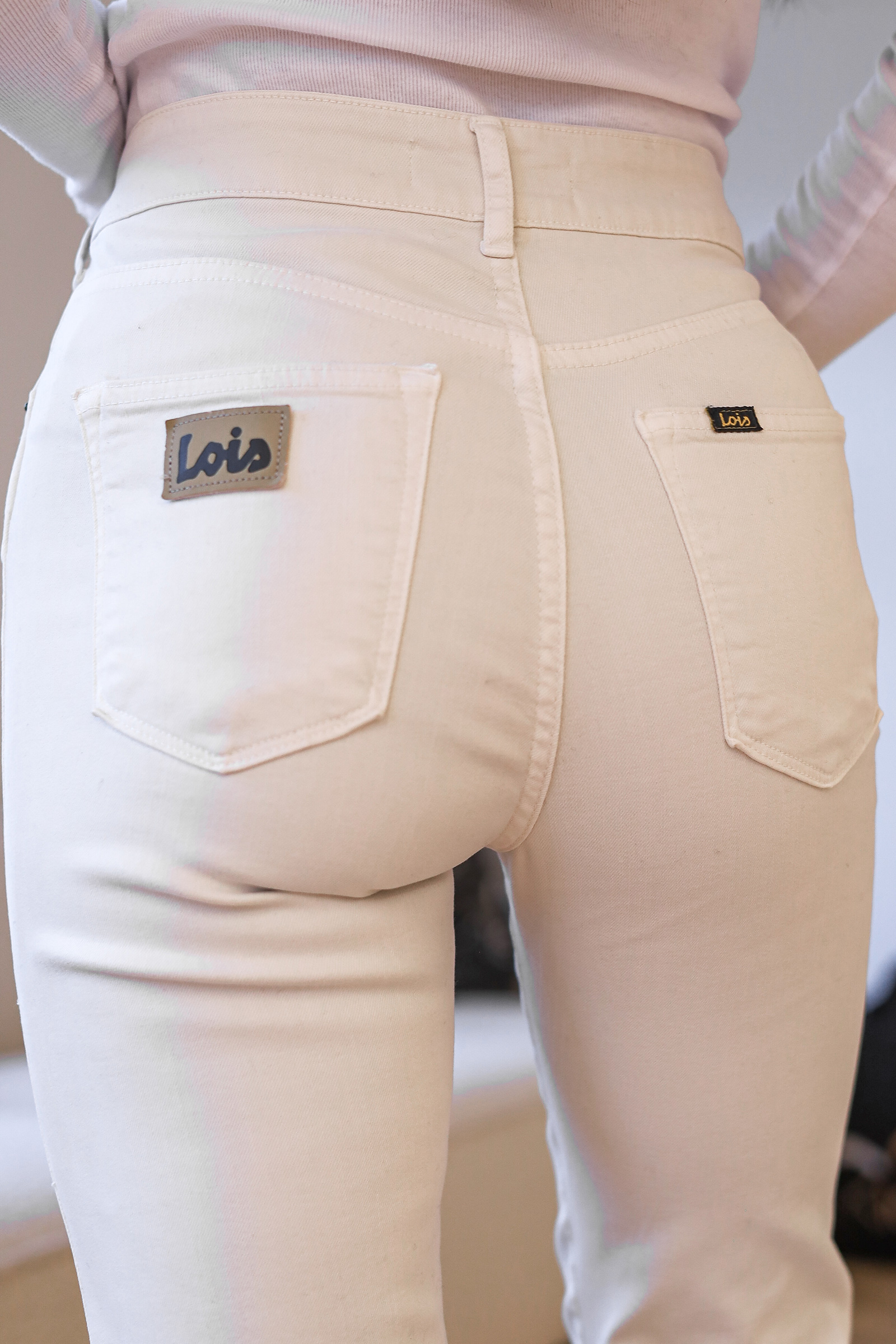 Favoritt jeansen Malena fra Lois i en vårlig kremfarge. Malena modellen har en kortere lengde i beina og en rett passform som gir en fin effekt og en flatterende silhuett. Den myke kvaliteten gir en svært behagelig fit som sitter godt. Jeansen kommer i en behagelig stretch-kvalitet. Kombiner med sneakers og en deilig strikk for en oppdatert look.