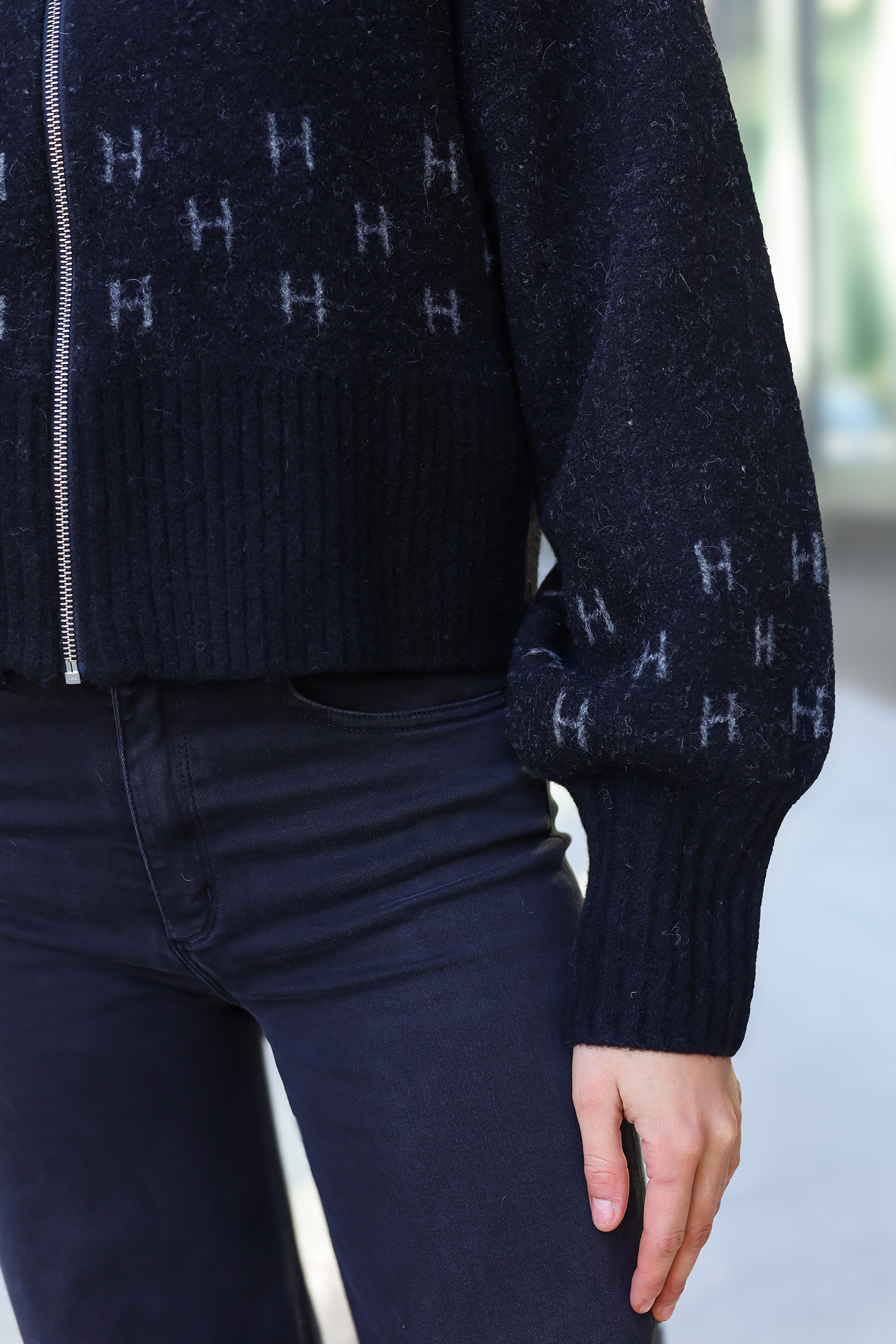 Ny, tykkere versjon av den ikonsike jakken! En flott kort strikkejakke med glidelås fra Hést som forener komfort og mote. Märtha jakken er designet med høye ribbestrikkede kanter på ermene og nederst, og har delikate «H»-logoer som gir et raffinert preg. Laget av en myk ullblanding, gir denne jakken både varme og fleksibilitet, noe som gjør den ideell for kjølige dager. Perfekt for deg som søker et stilig plagg som også gir en behagelig hverdagskomfort.