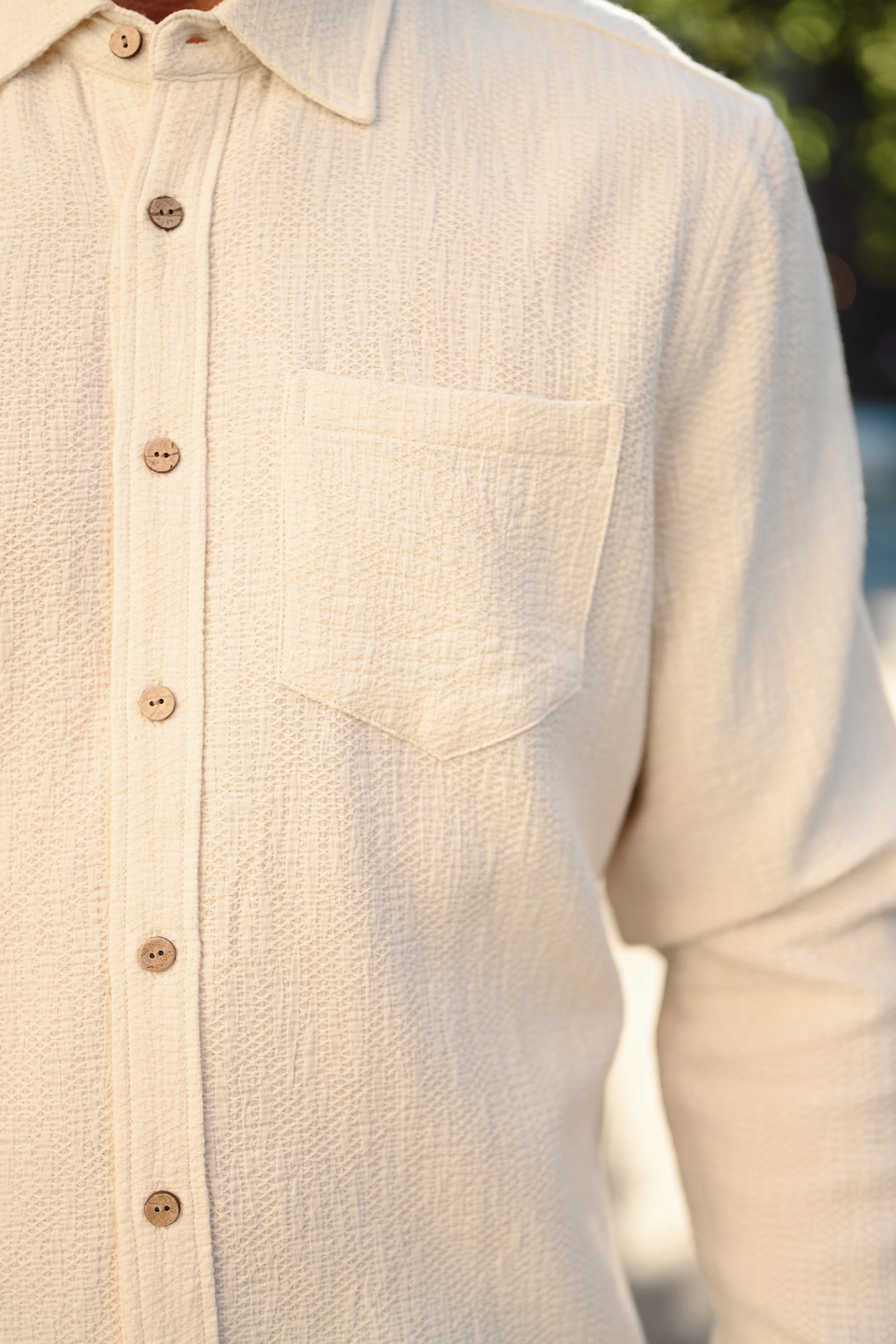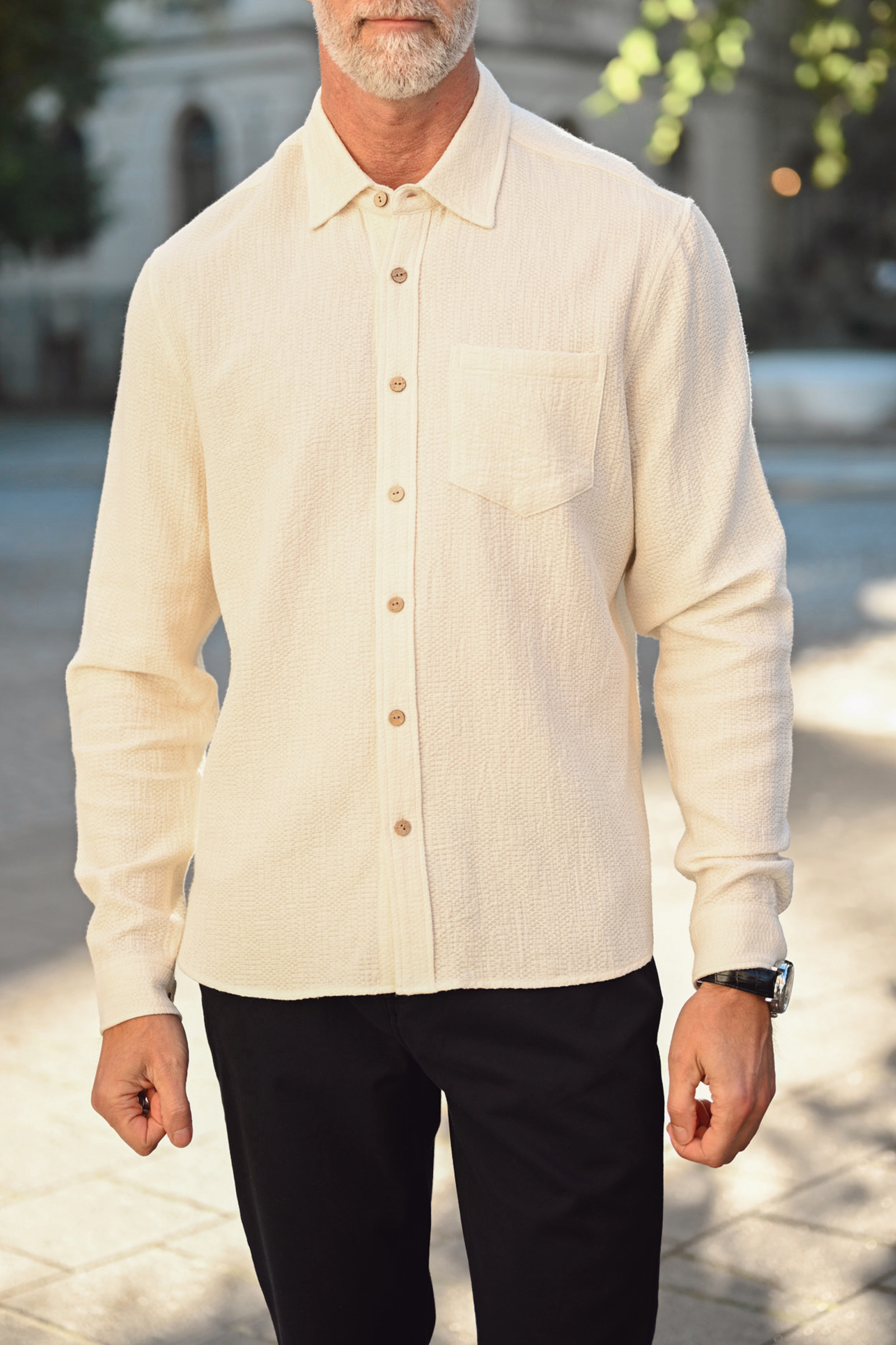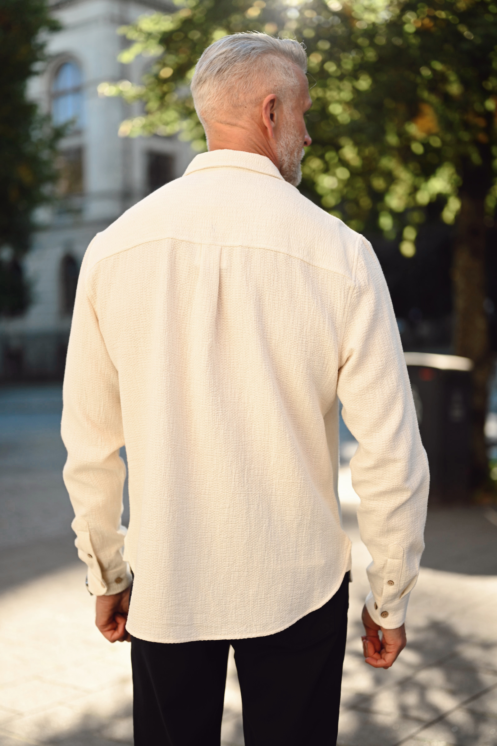 Martino LS er en klassisk og komfortabel skjorte fra Urban Pioneers i delikat kremfarge. Martino har knappelukking, lomme på brystet og en delikat struktur som gjør den unik. Den avslappede passformen gjør dette et perfekt plagg å slenge over et par jeans og joggesko for et avslappet antrekk, eller sammen med et par sorte chinos og loafers for en mer formell anledning.