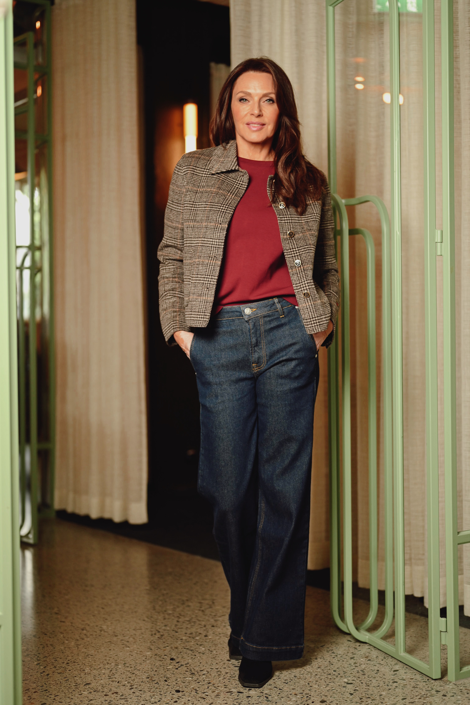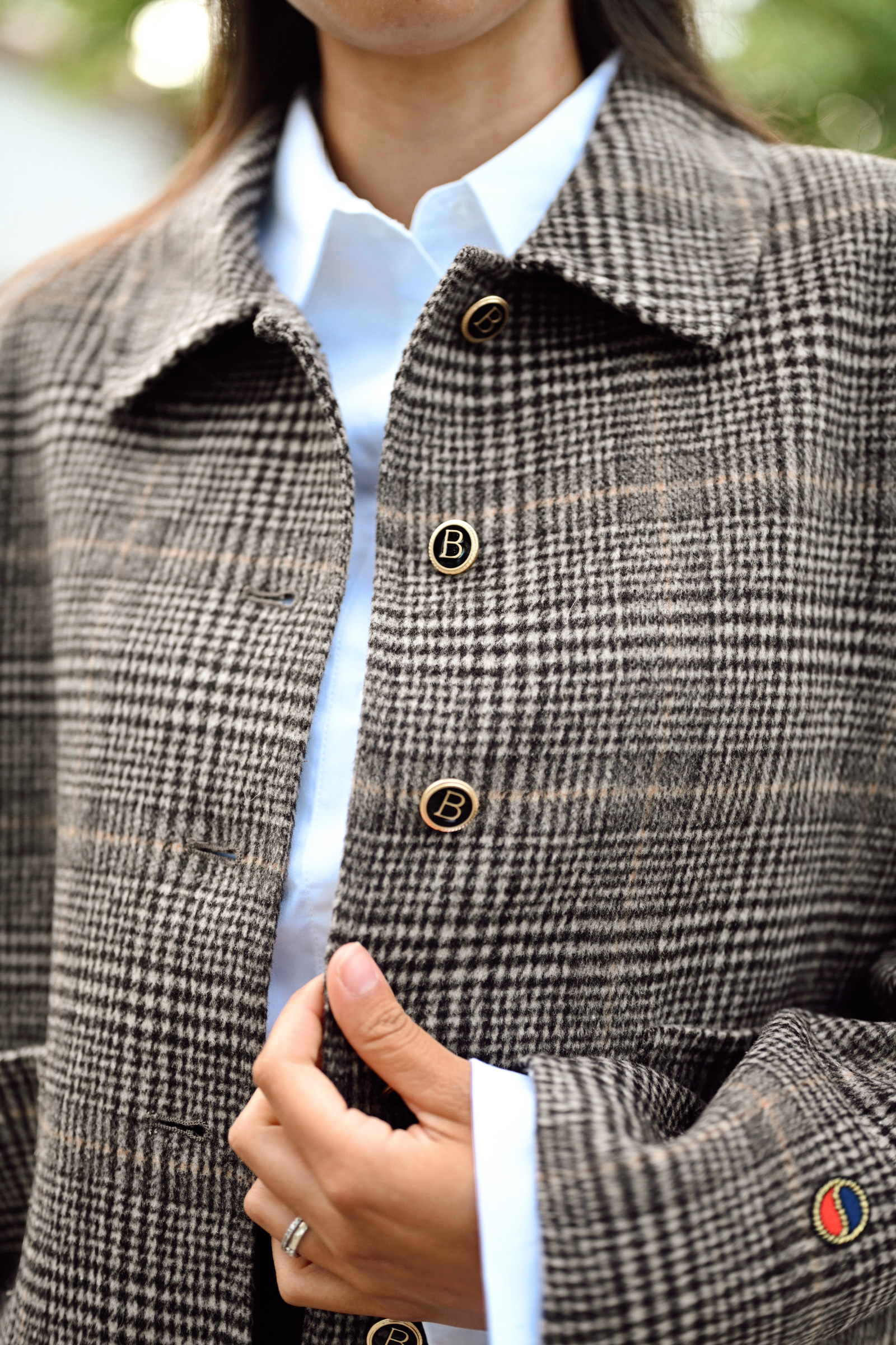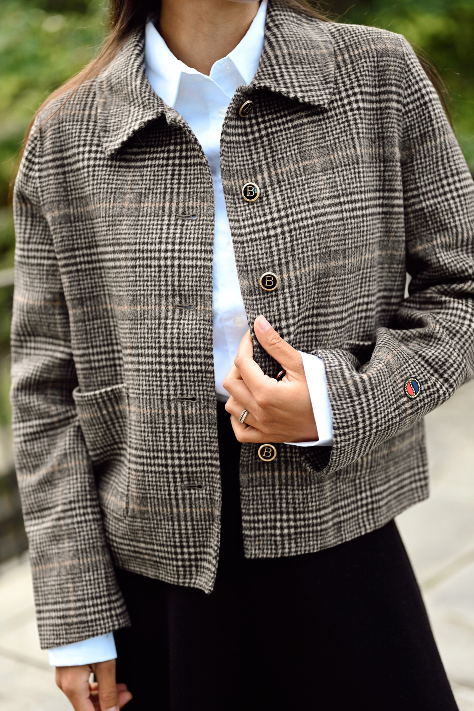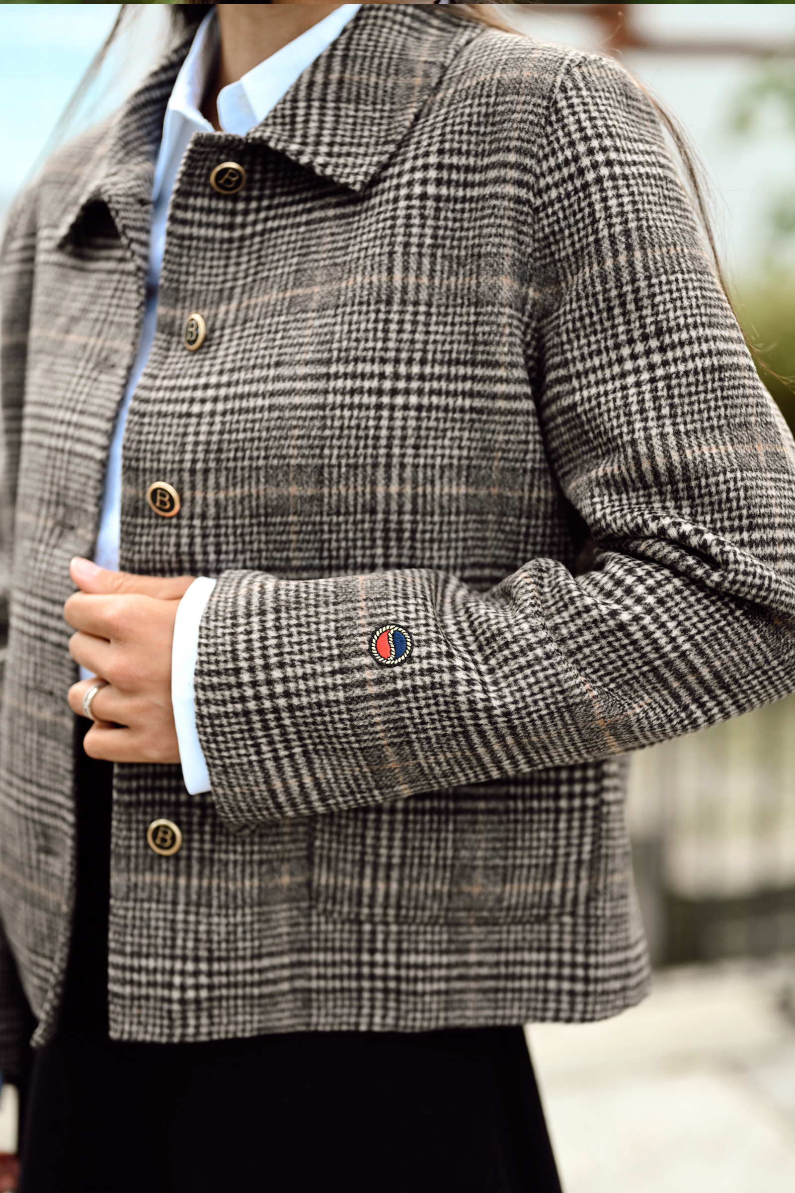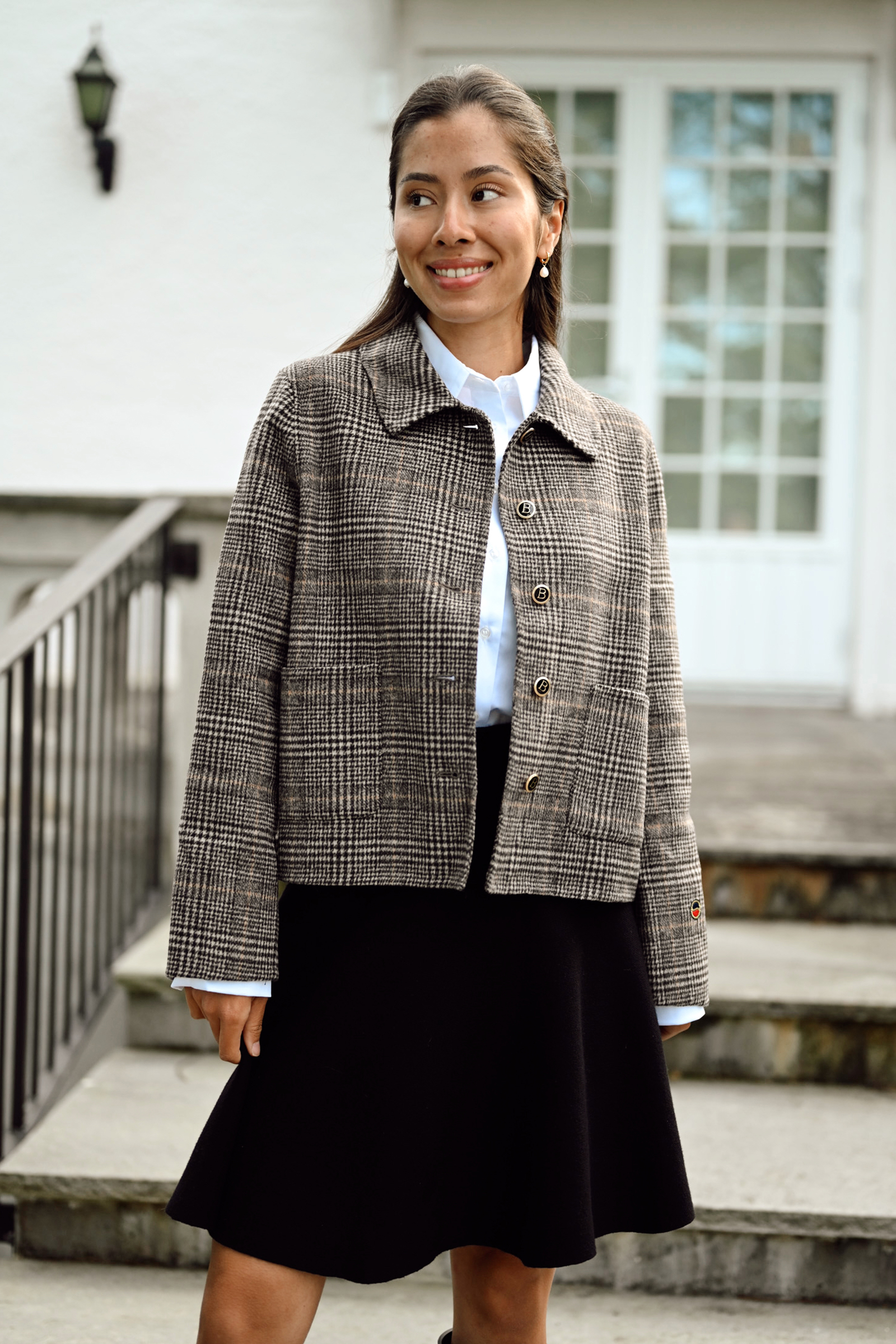 Becky Jacket er en fantastisk jakke fra Busnel i rutete jacquard-vevd stoff! Jakken har de ikoniske gyldne ankerknappene, to lommer i front, klassisk krage og har en noe oversized passform. Denne er superfin å kombinere til basics og jeans – men også fin til penere anledninger!