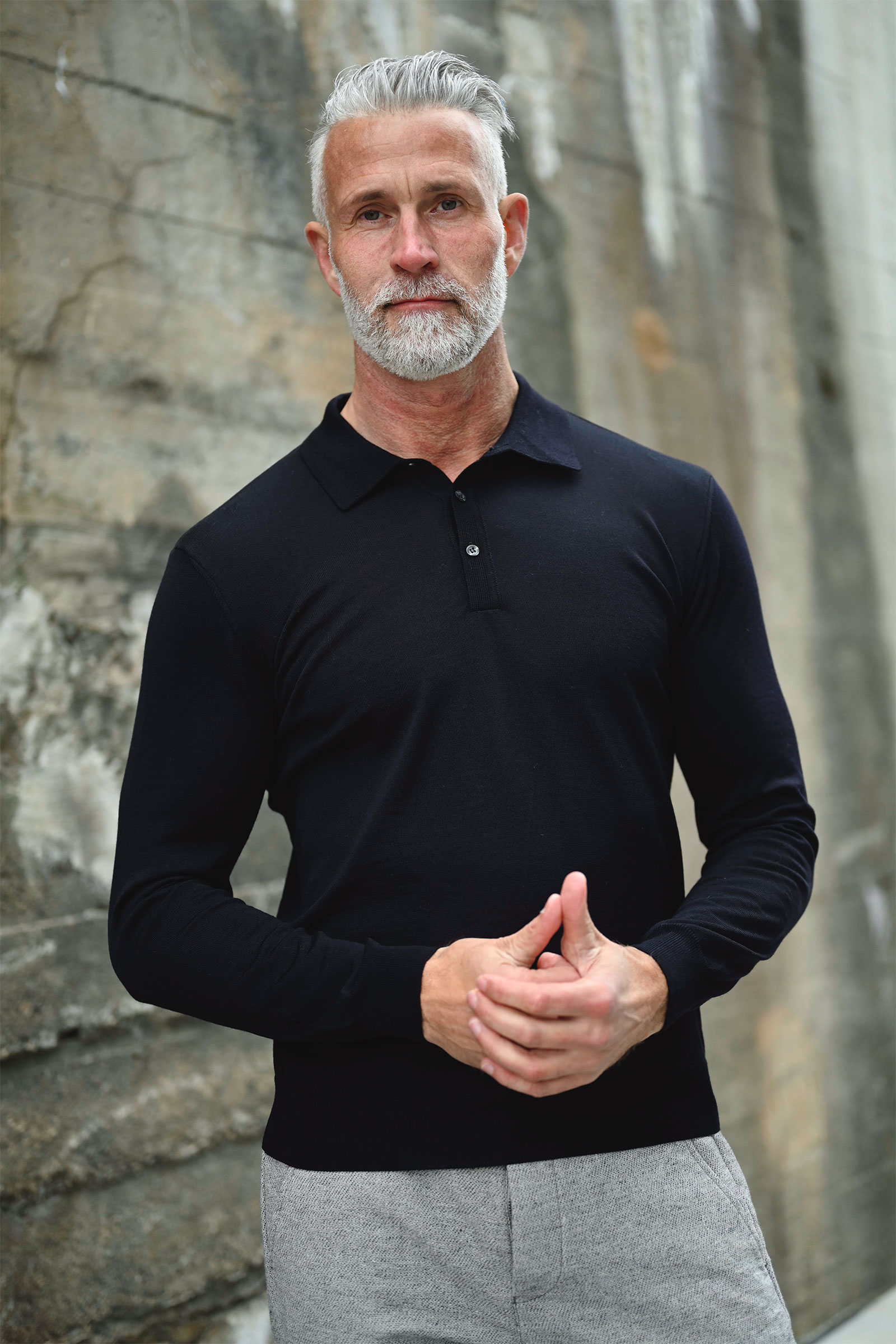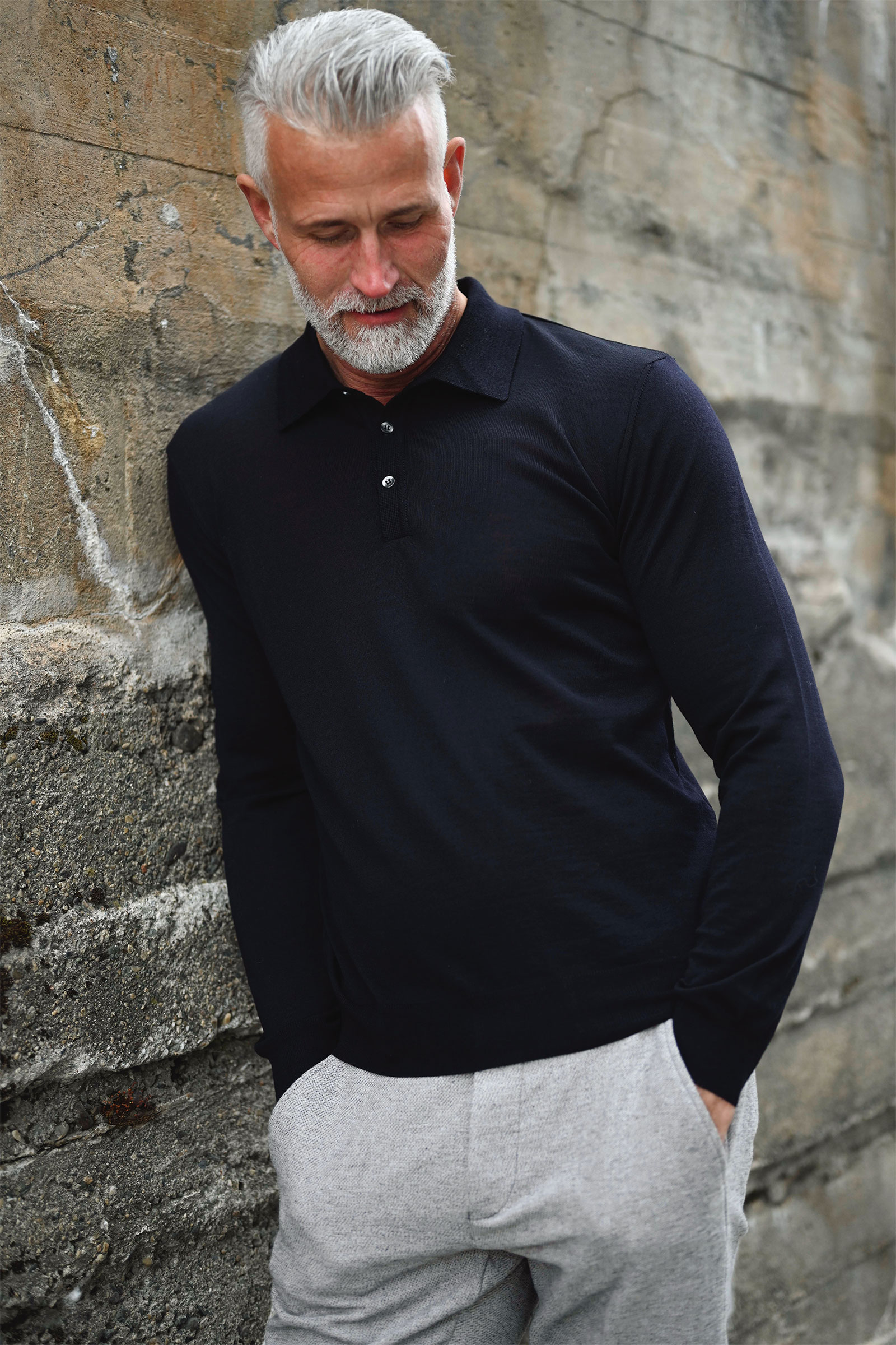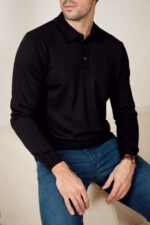Nyhet fra Oscar Jacobson! En tidløs og elegant poloskjorte i 100% merinoull, i en dyp mørkeblå nyanse. Melvin kommer med lange ermer, knappelukking og en klassisk krage. Med sin normale passform er den perfekt både alene eller som et lag under blazer eller en tykkere genser. Et sofistikert valg til kjølige høstdager, hvor stil og komfort møtes i ett plagg. Fullfør antrekket med et par jeans eller chinos for en helhetlig og moderne look.