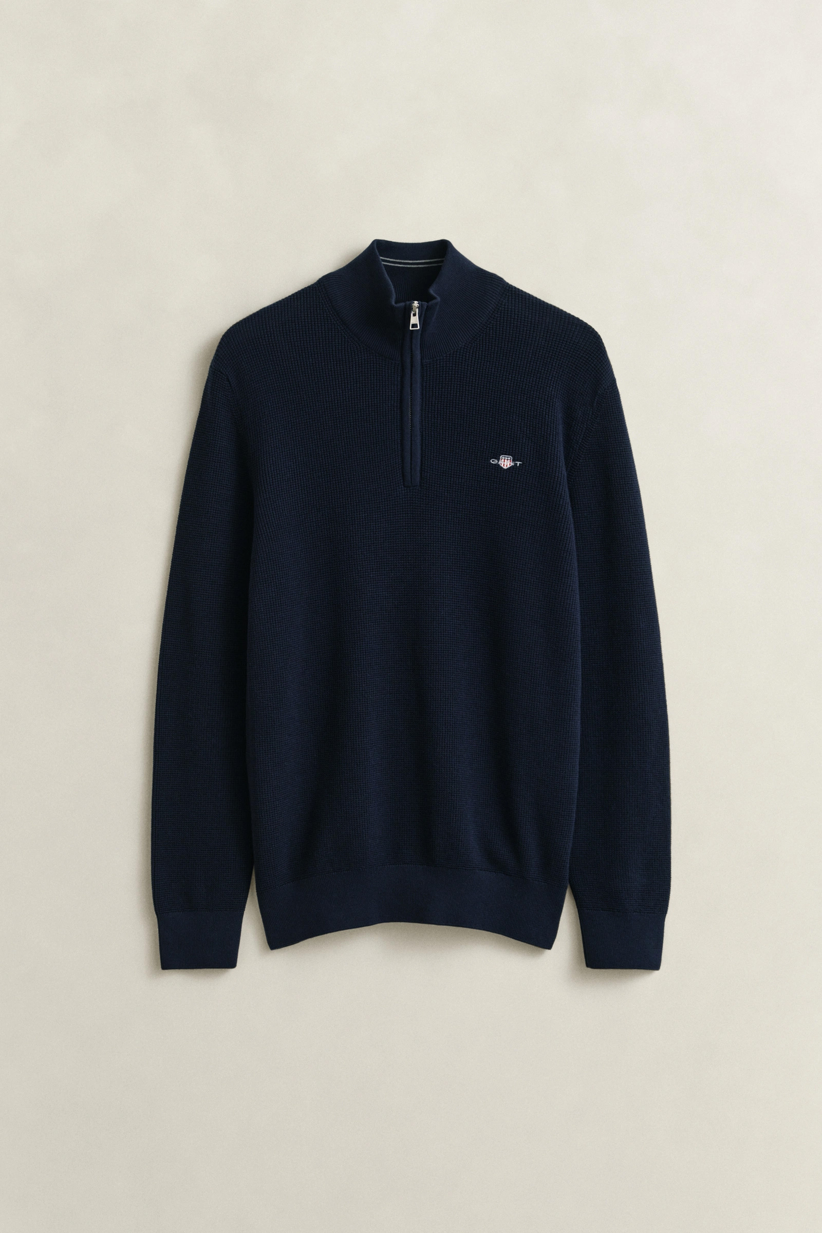 Klassisk zip-genser fra Gant i mørk blå. Denne genseren kommer i ren bomull, høy krage med glidelås til brystet samt en avslappet passform. En tøff tekstur som gir liv til genseren og gjør den perfekt inn til basegarderoben. Like fin å kombinere til skjorter som til t-skjorter.