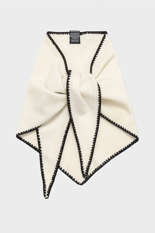 Mina Stitched Merino Scarf, Eggshell