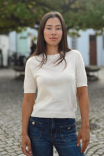 Delikat ullgenser fra I´m Branded med korte ermer – en god base til de kaldere sesongene! Denne genseren har en rett passform, ribbestrikkede kanter og kommer i en tynnere merinolkvalitet. Superfin å bruke både alene og under blazere og jakker. Med sin delikate sandfarge er Miriam Top like fin året rundt.