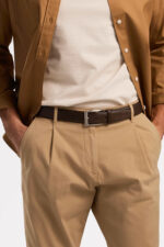 Nyhet fra Saddler! Dette Odense-beltet i varm brun skinn er et klassisk og allsidig tilbehør som løfter antrekket ditt — enten du går for jeans, chinos eller dressbukser. Beltet har gjennomarbeidede detaljer og en vakker søm som gir karakter og dybde til designet. Lær av fullnarvet skinn er vegetabilsk garvet og behandlet i et garveri sertifisert av Leather Working Group for høy kvalitet og ansvarlig produksjon. Spennen i børstet sølvfarget metall gir et stilrent og tidløst uttrykk. Med praktisk skruekonstruksjon kan lengden enkelt justeres for perfekt passform.