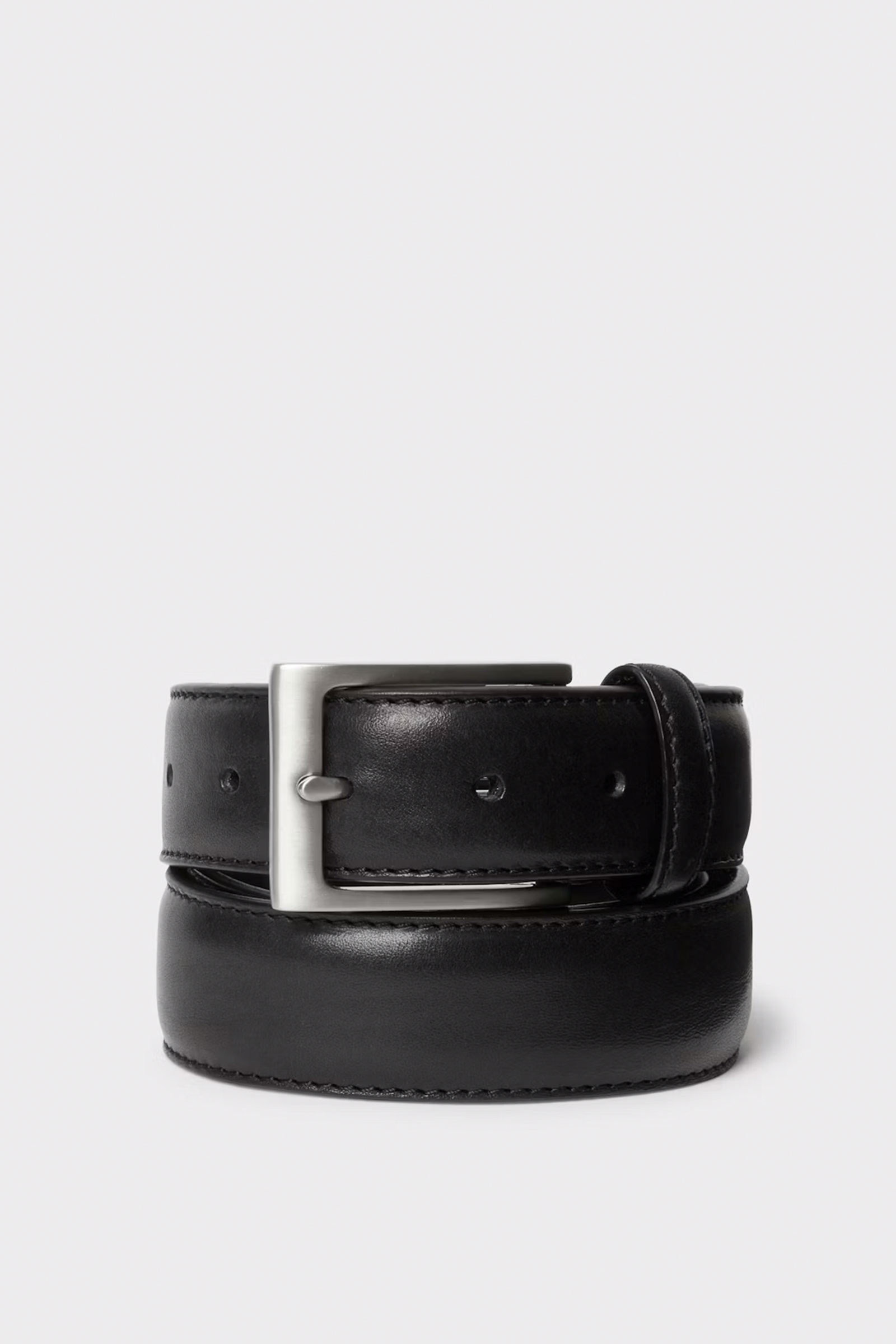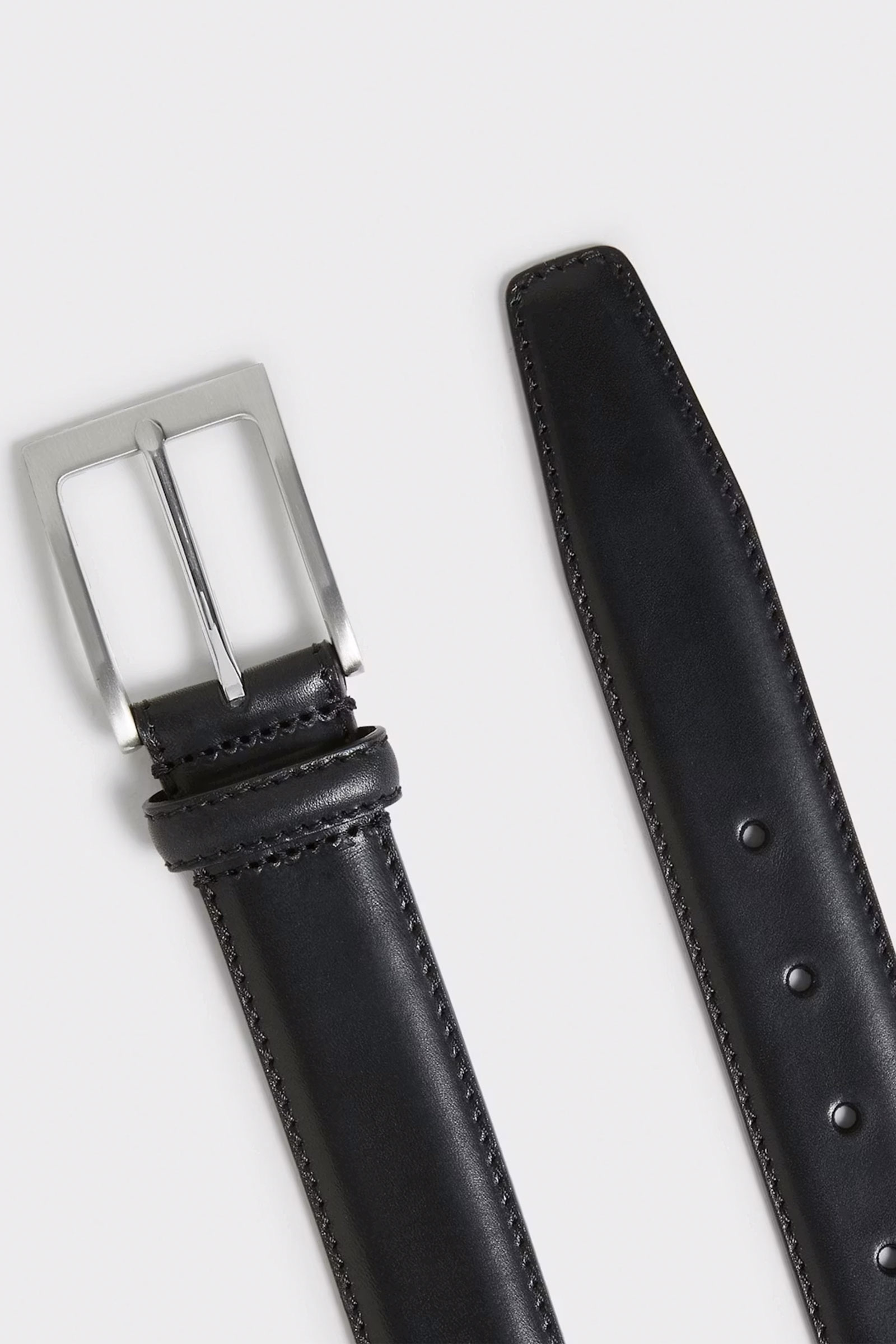Nyhet fra Saddler! Dette Odense-beltet i klassisk sort skinn er et tidløst og stilrent tilbehør som fungerer til alt fra jeans og chinos til mer formelle bukser. Beltet er laget i vegetabilsk garvet fullnarvet skinn med gjennomarbeidede detaljer og vakker søm som gir karakter. Den børstede sølvfargede spennen tilfører et elegant uttrykk, og beltet kan enkelt tilpasses med en justerbar skruekonstruksjon.