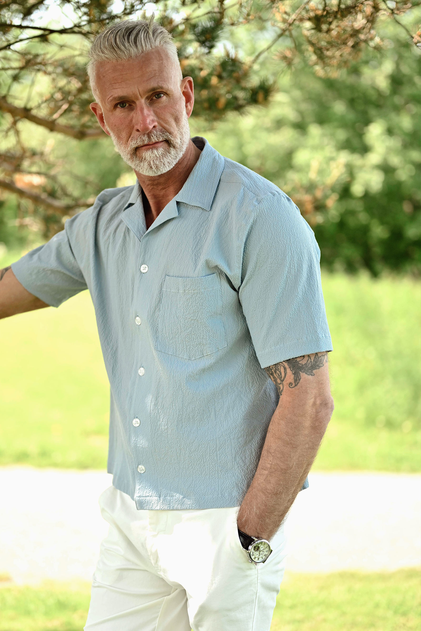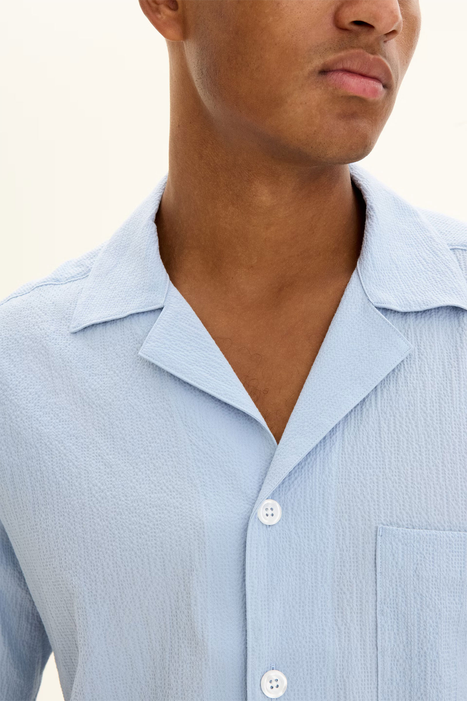 Regular Fit Seersuckerskjorte med Bowlingkrage fra Oscar Jacobson! Skjorte med regular fit, designet med en sofistikert cut away-krage og avsluttet med enkle mansjetter. Den har et tidløst stripemønster og er laget med vevd konstruksjon og en raffinert panamatekstur. Et allsidig plagg som passer perfekt til en smart-casual stil – året rundt.