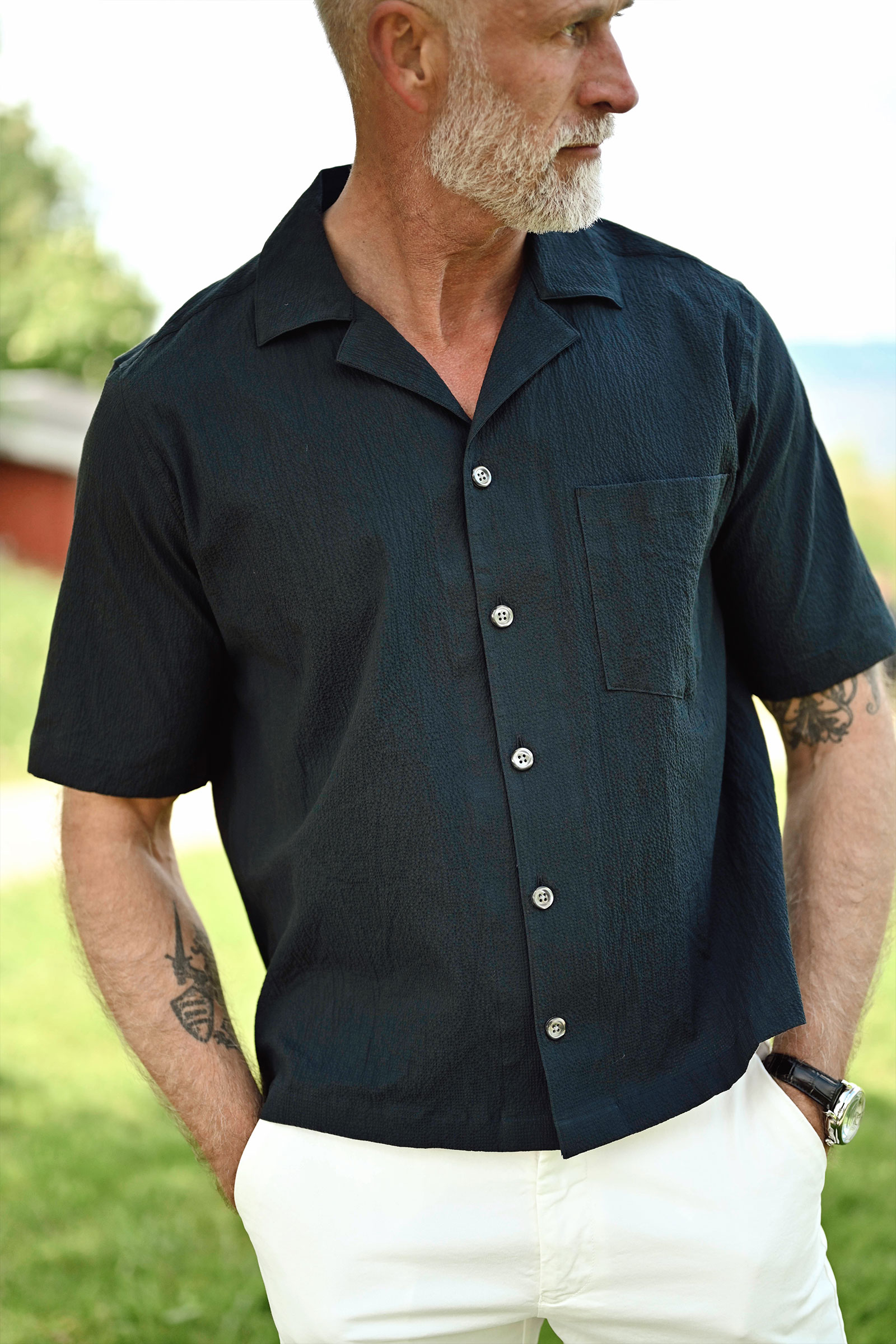 Regular fit seersuckerskjorte med Bowlingkrage fra Oscar Jacobson. Denne skjorten har en klassisk regular fit og er designet med en sofistikert cut away-krage og enkle mansjetter. Den tidløse stripen gir et stilrent uttrykk, mens den vevde konstruksjonen og panamateksturen tilfører dybde og karakter. Laget av 100 % bomull – et allsidig valg som passer perfekt til en smart-casual stil gjennom hele året.